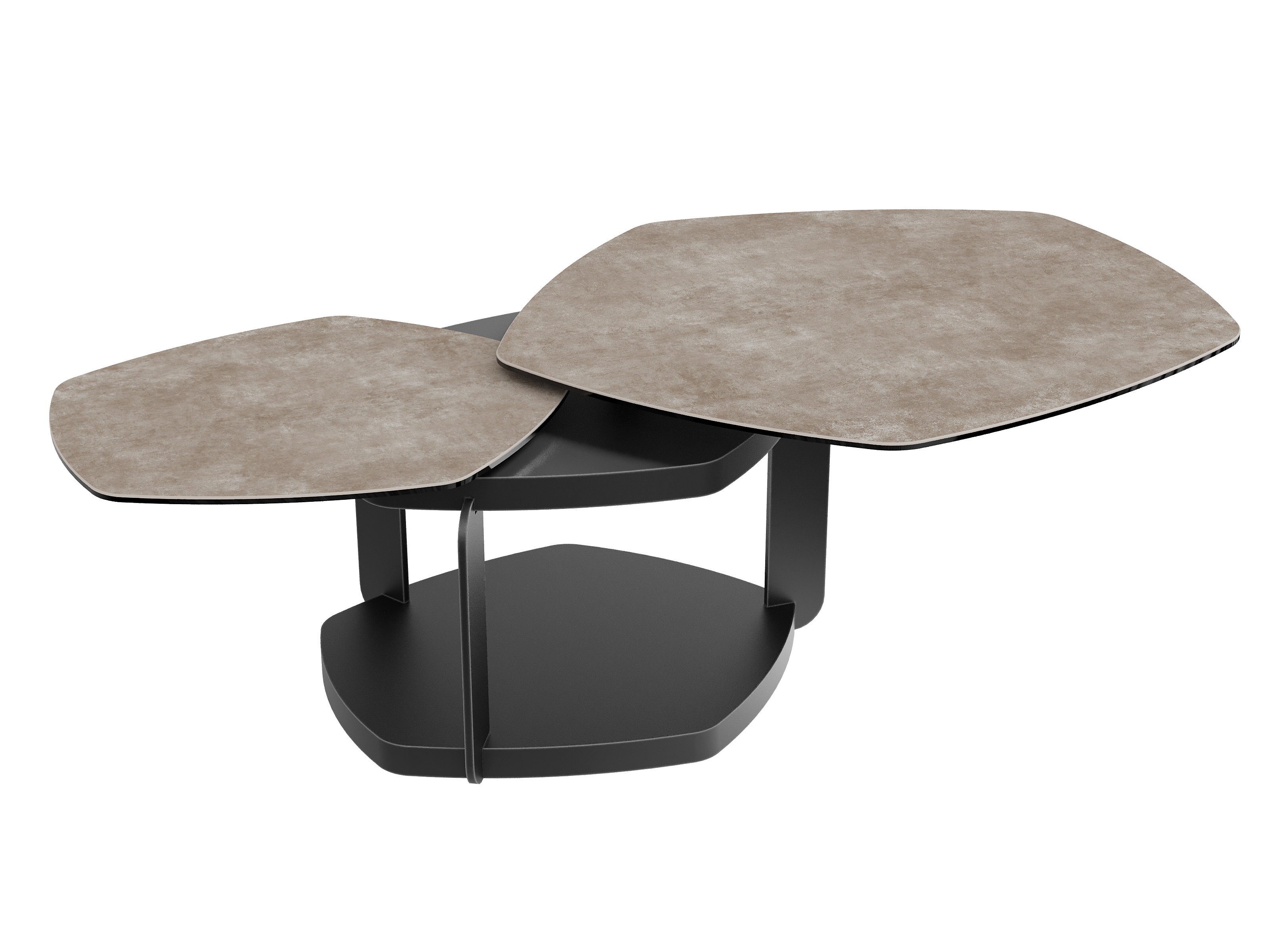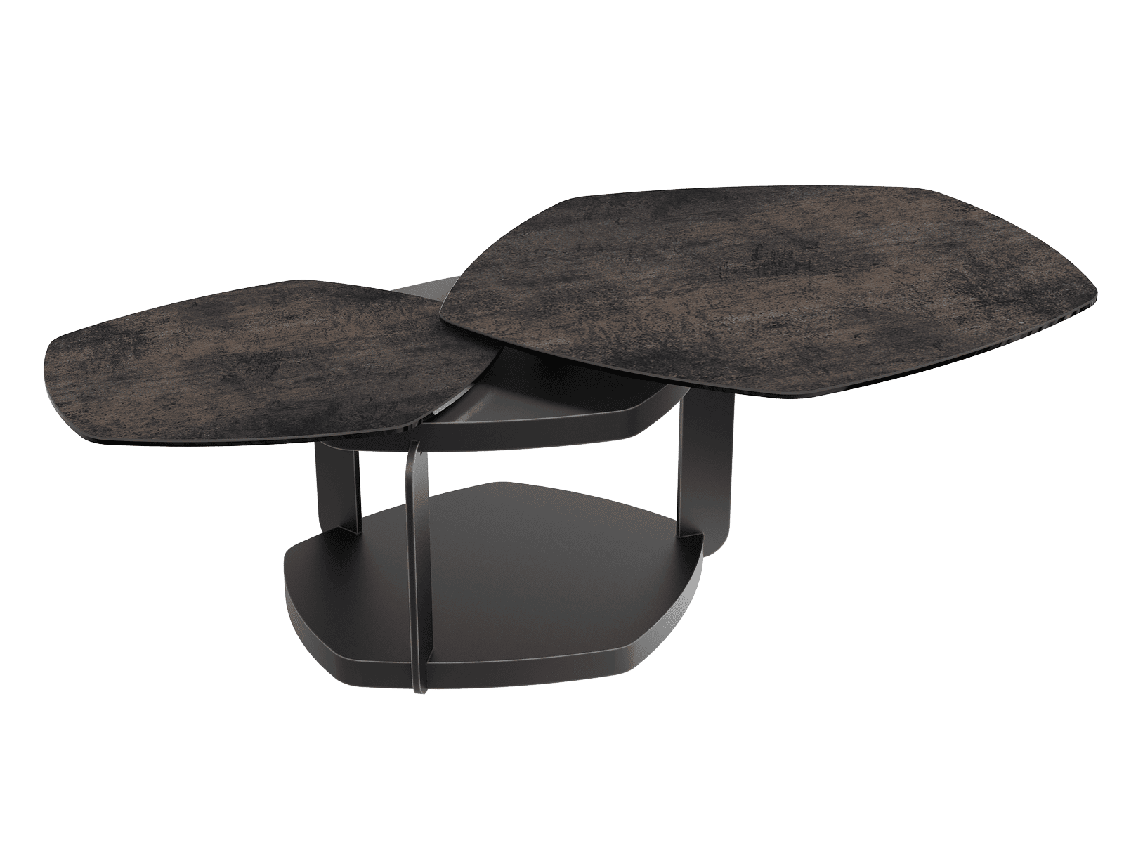 Maße & Details Nettogewicht : 46 Kg Farbe : Rostbraun Maße : 95/155 x 77 x 43 cm Maße geschlossen : 95 x 77 x 43 cm Maße offen : 155 x 77 x 43 cm Höhe : 43 cm Breite : 77 cm Länge : 95/155 cm Abgestimmter Mechanismus Gestell : Mattschwarz lackierter Stahl Platte : 3 mm Keramik, geklebt auf 6 mm Glas Rollen mit Bremsen INPI : 20254415