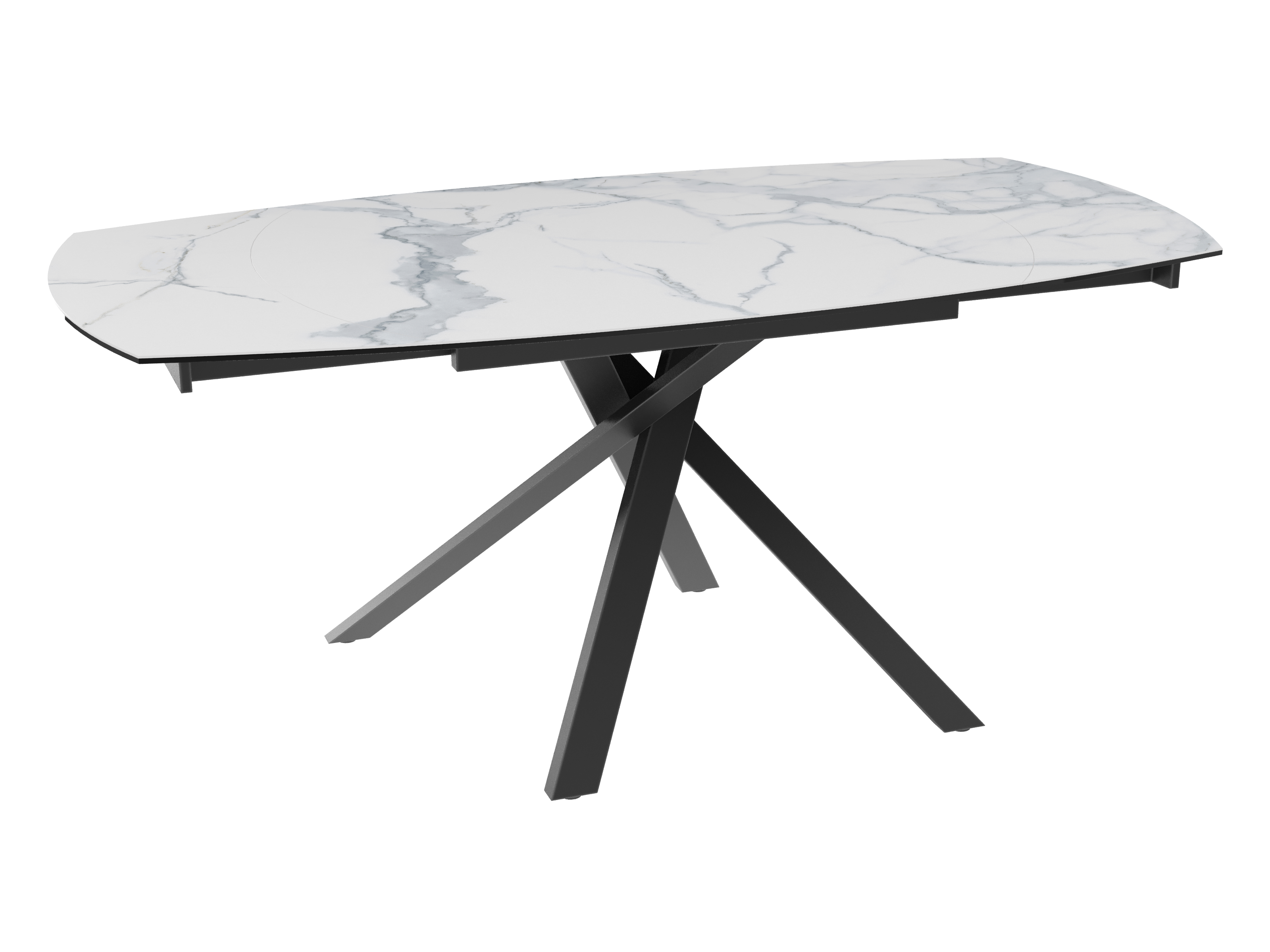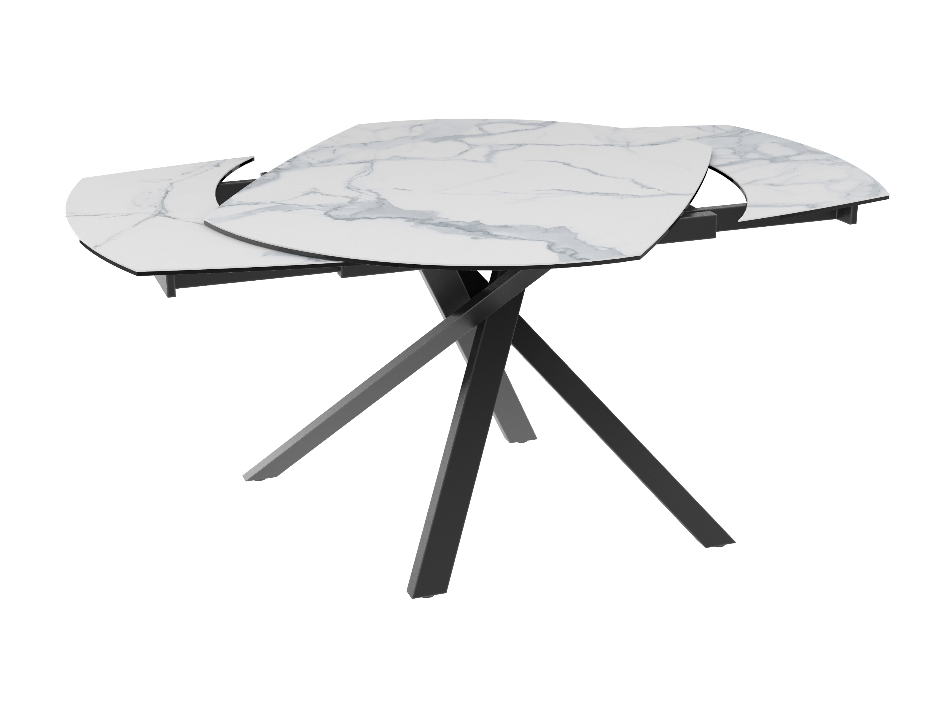 You will undoubtedly be surprised by the ingenuity of the Kheops dining table. This table features a remarkable synchronised mechanism: a simple rotation of the plate unfolds two discreetly concealed side extensions. Transform a 120 cm x 90 cm table into a 180 cm x 90 cm table instantly. This model is now available with a 3 mm thick Travertine ceramic, glued to an 8 mm glass pane. Its cross-shaped base made of matt black lacquered steel adds a touch of elegance and modernity to the whole