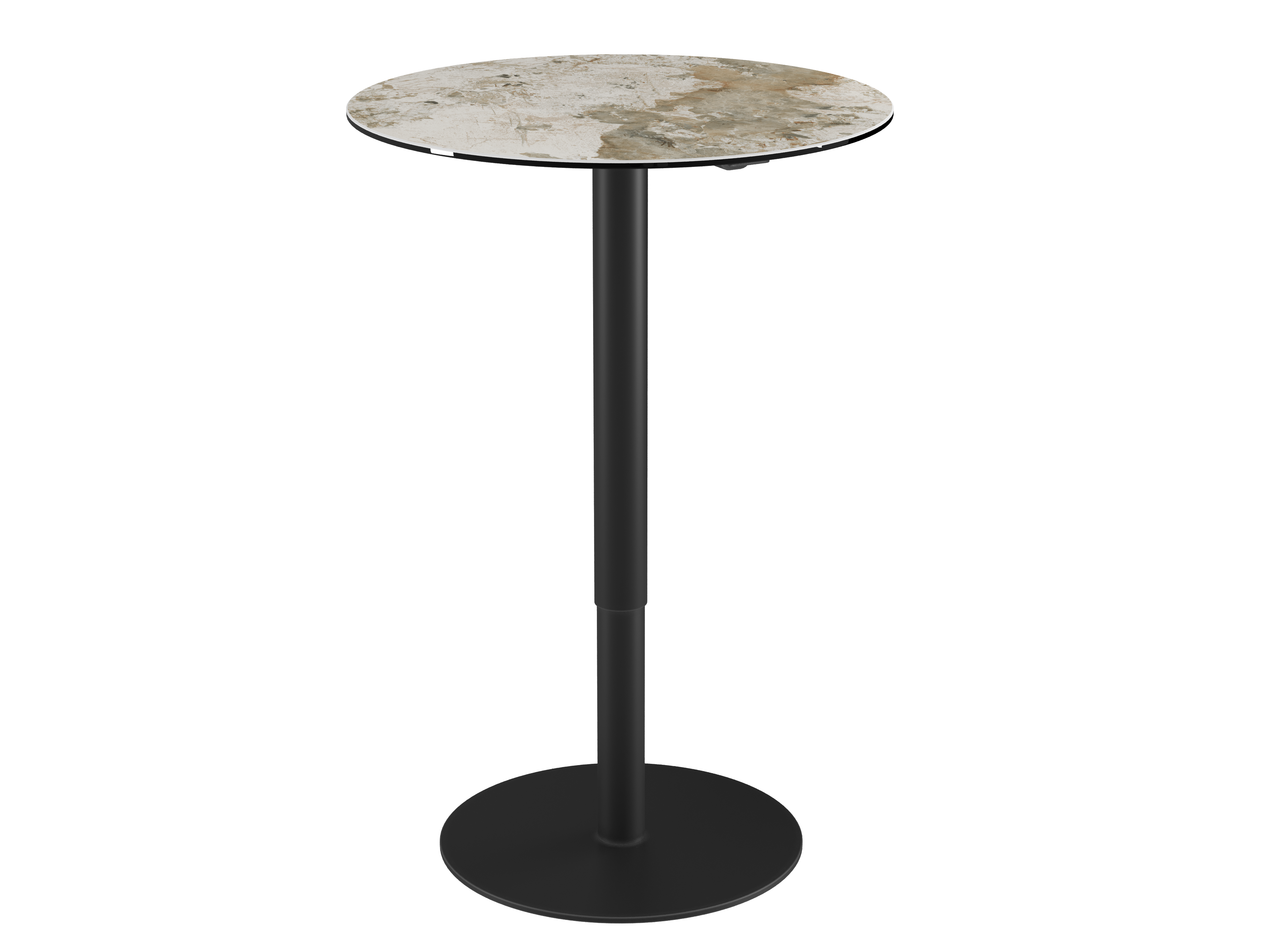 Maße & Details Nettogewicht : 31,2 Kg Farbe : Marmoroptik Durchmesser : 75 cm Maße : Ø 75 x 76-110 cm Höhe : 76 cm Maximale Höhe : 110 cm Gestell : Mattschwarz lackierter Stahl Platte : 3 mm Keramik, geklebt auf 8 mm Glas