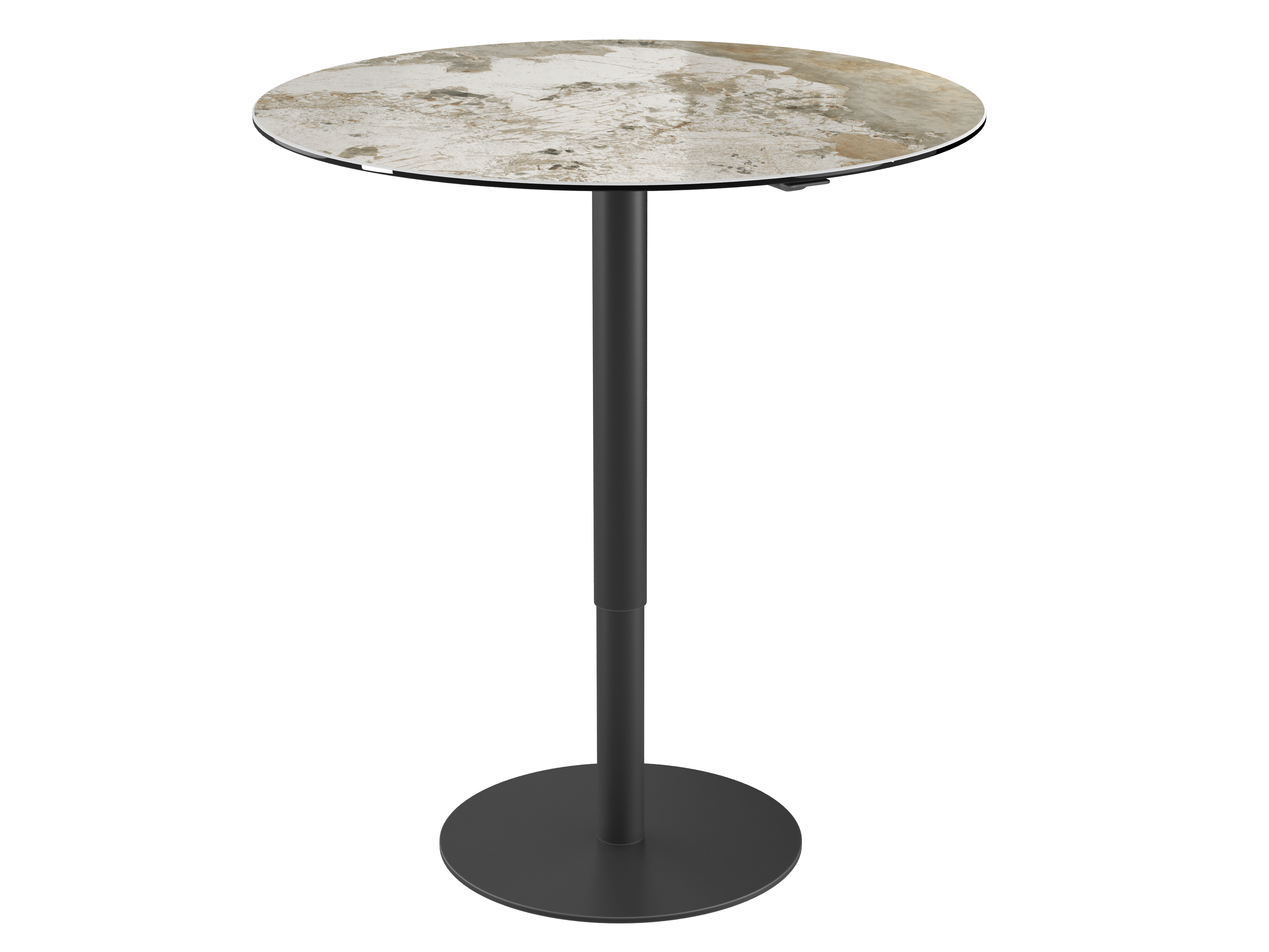 Let yourself be charmed by our Orlando Lift dining table that will become the main element of your living space. This dining table features a lever beneath the plate that lets you adjust its height to suit your needs. Its plate is made of 3 mm thick matt marble ceramic bonded to 8 mm thick glass. The base is made of matt black lacquered steel.