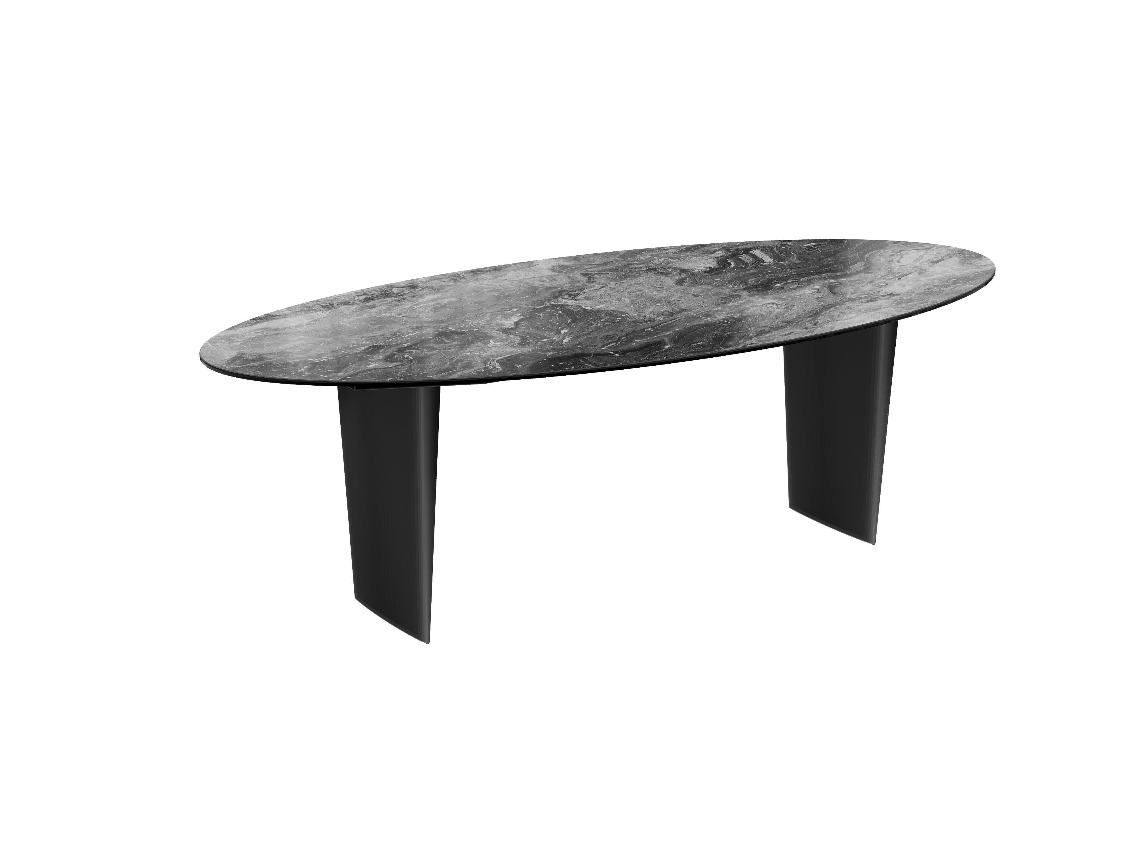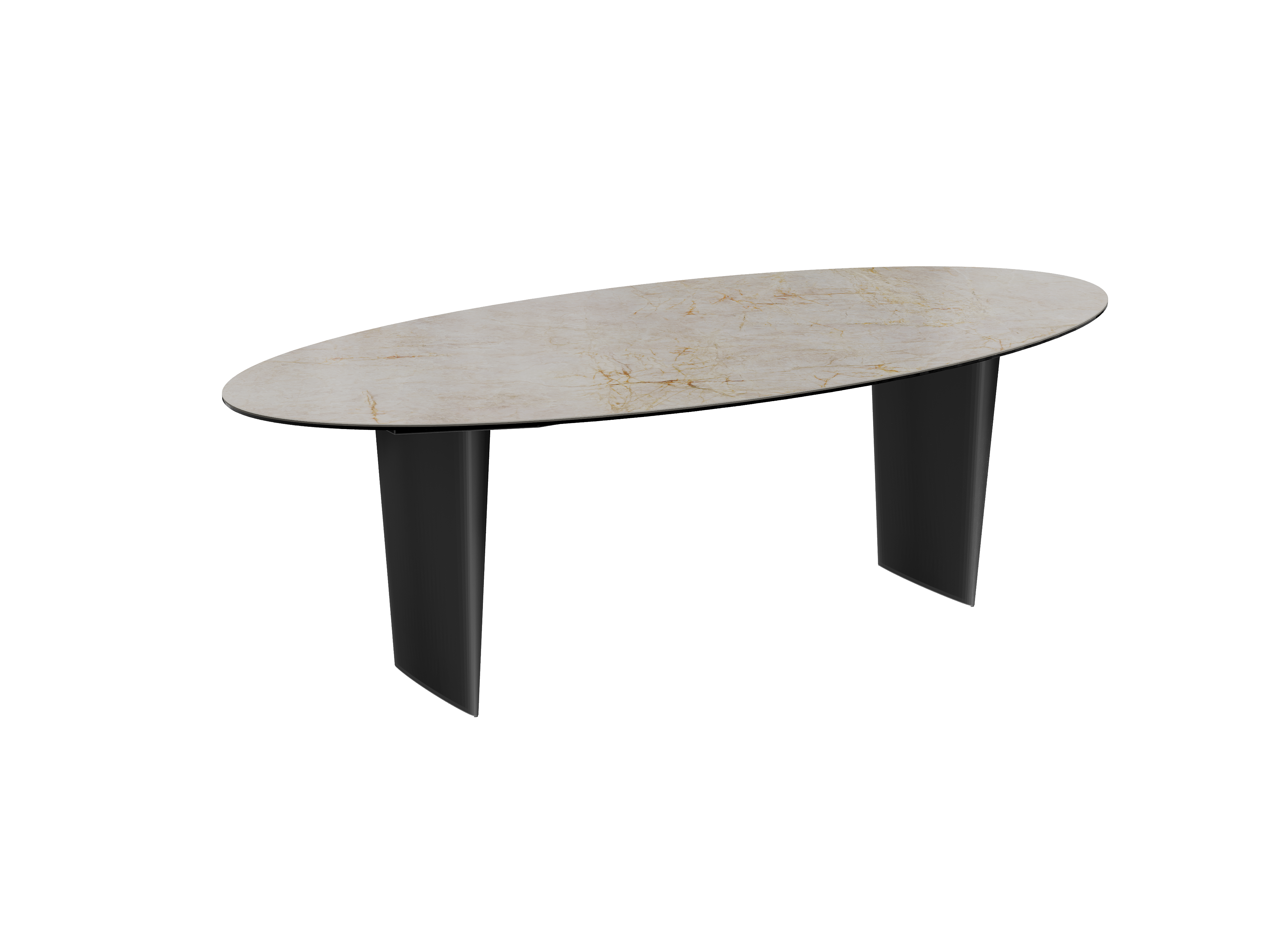 Gestallten Sie Ihr Esszimmer, indem sie den neuen Esstisch-Goliath zu Ihrem eigenen machen. Erhältlich in der Ausführung Doro-Marmor besteht ihre Tischplatte aus 6 mm dicken Keramik und ist auf einer 8 mm dicken Glasplatte geklebt. Durch sein einzigartiges Gestell aus mattschwarz lackiertem Stahl verleiht sie Ihrem Wohnzimmer einen Hauch von Modernität. Dieser Esstisch misst 240 cm in der Länge und 112 cm in der Breite und passt sich jeden Einrichtungsstil des Innenraums an. Dank seiner Größe bietet der Esstisch Platz für gesellige Mahlzeiten mit bis zu 8 Personen.
