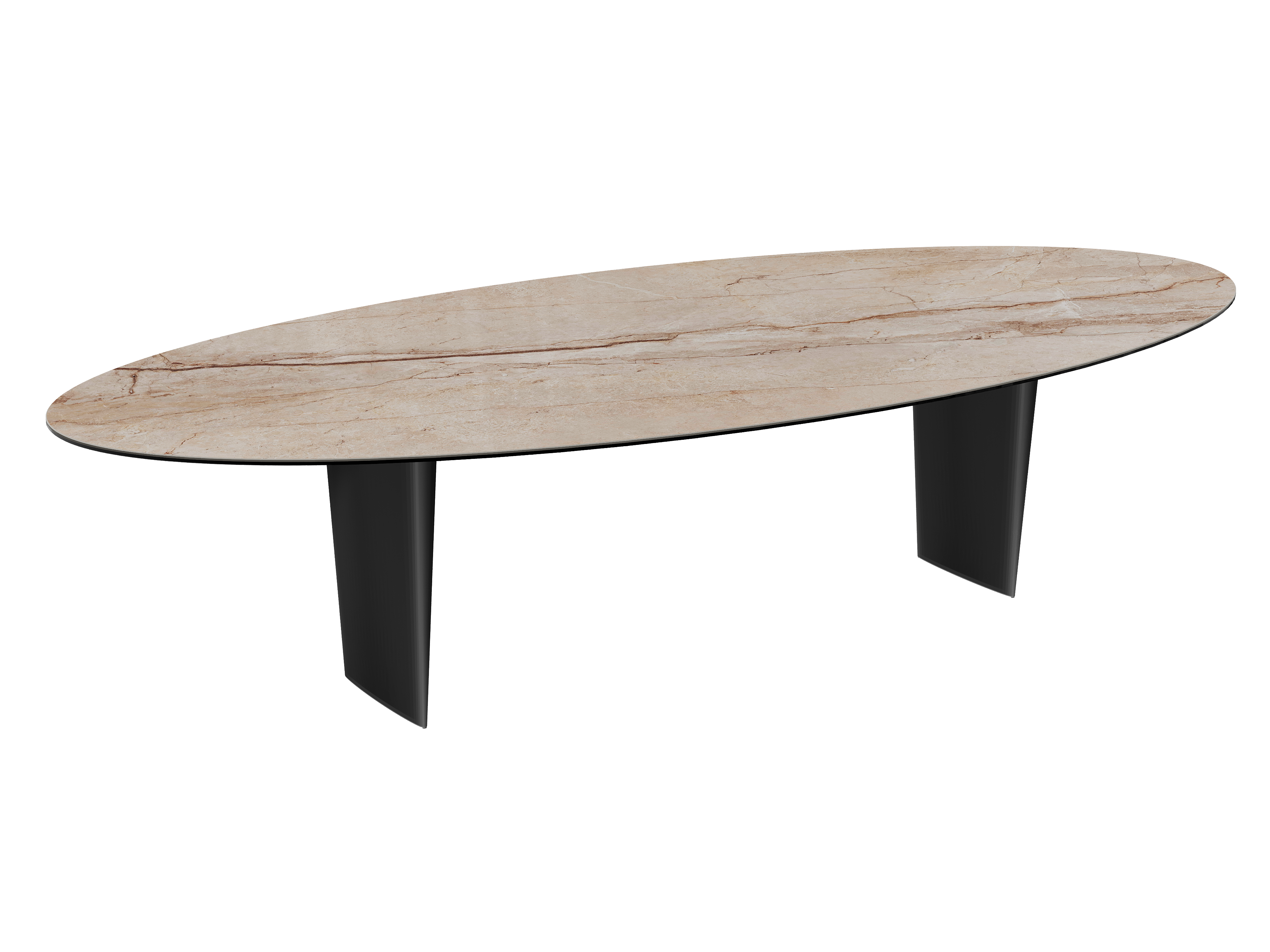 Für Liebhaber großer Geselligkeitsmomente, ist der Esstisch Goliath speziell für Sie entworfen. Ideal für Großfamilien, können Sie bis zu 14 Personen einladen. Seine besonderen Eigenschaften sind seine ovale Form, die zur Geselligkeit einlädt. Die Originalität seiner Tischplatte zeichnet sich durch seine 6 mm dicke Doro-Marmor-Keramik aus, die auf 8 mm Glas geklebt ist. Sein elegantes Gestell aus mattschwarz lackiertem Stahl misst 76 cm in der Höhe. Verwandeln Sie Ihre Mahlzeiten in schöne Momente.