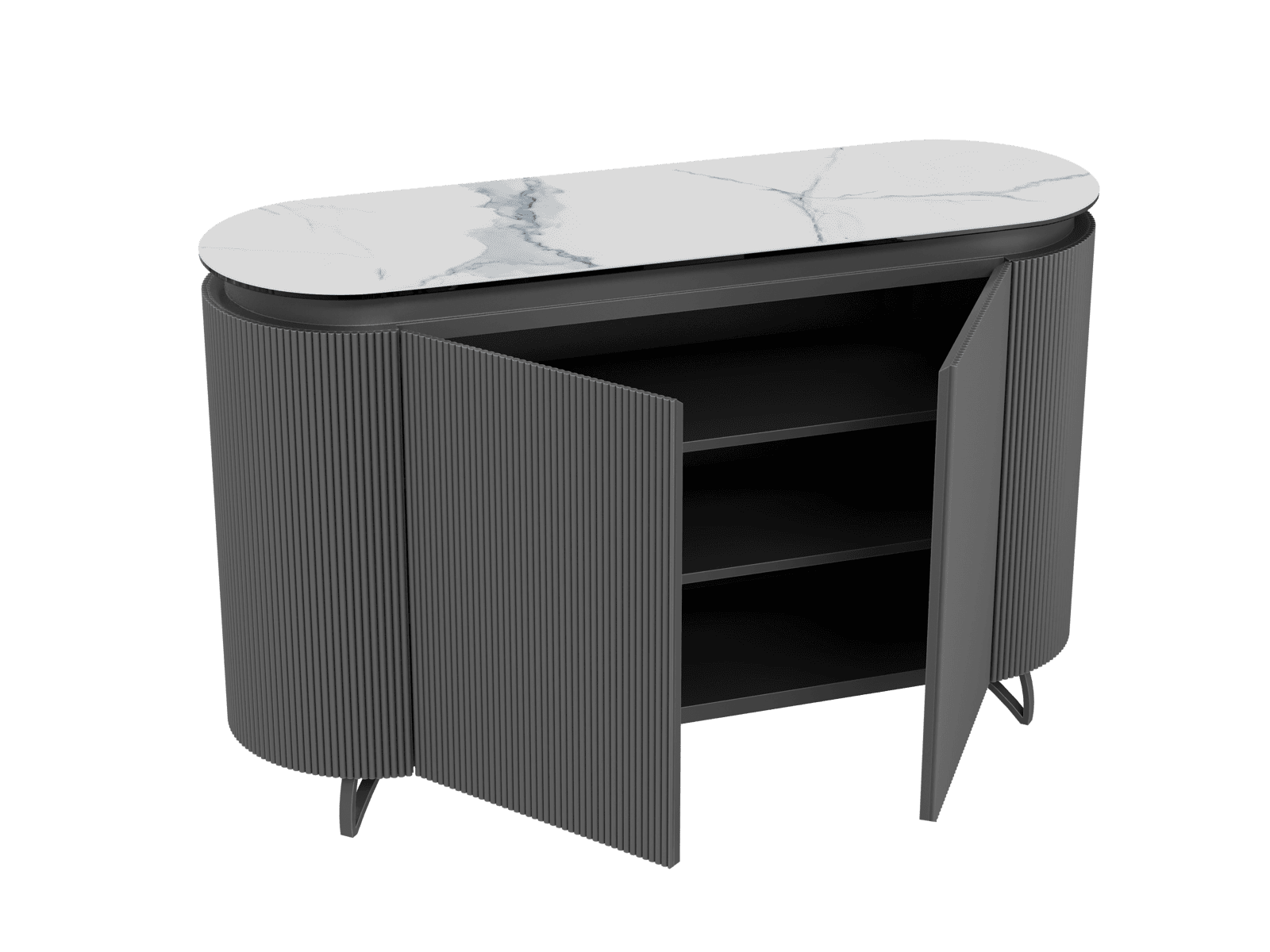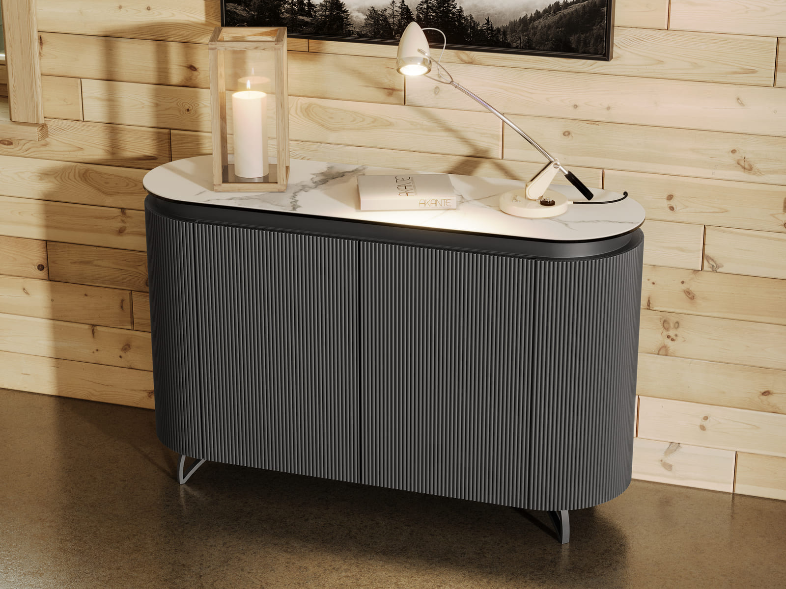 Das COLUMBUS Sideboard vereint die Wärme von Holz mit der Eleganz von Keramik und schafft so einen raffinierten und funktionalen Stil. Die gerillten Türen aus MDF mit Holzfurnier verleihen dem Möbelstück eine moderne, grafische Note. Mit Regalen und Schubladen im Inneren bietet es großzügigen Stauraum. Die Keramikplatte, erhältlich in zehn Ausführungen, passt sich harmonisch jedem Interieur an. In zwei Größen (130 oder 170 cm) erhältlich, verkörpert das COLUMBUS Sideboard das perfekte Gleichgewicht zwischen Modernität und Authentizität.