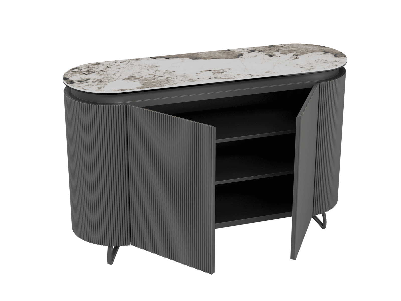 Das COLUMBUS Sideboard vereint die Wärme von Holz mit der Eleganz von Keramik und schafft so einen raffinierten und funktionalen Stil. Die gerillten Türen aus MDF mit Holzfurnier verleihen dem Möbelstück eine moderne, grafische Note. Mit Regalen und Schubladen im Inneren bietet es großzügigen Stauraum. Die Keramikplatte, erhältlich in zehn Ausführungen, passt sich harmonisch jedem Interieur an. In zwei Größen (130 oder 170 cm) erhältlich, verkörpert das COLUMBUS Sideboard das perfekte Gleichgewicht zwischen Modernität und Authentizität.