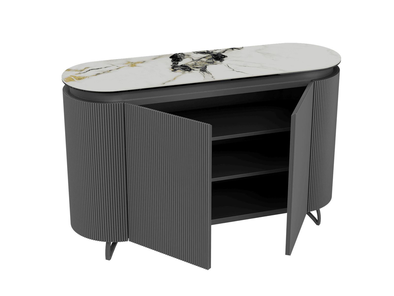 Das COLUMBUS Sideboard vereint die Wärme von Holz mit der Eleganz von Keramik und schafft so einen raffinierten und funktionalen Stil. Die gerillten Türen aus MDF mit Holzfurnier verleihen dem Möbelstück eine moderne, grafische Note. Mit Regalen und Schubladen im Inneren bietet es großzügigen Stauraum. Die Keramikplatte, erhältlich in zehn Ausführungen, passt sich harmonisch jedem Interieur an. In zwei Größen (130 oder 170 cm) erhältlich, verkörpert das COLUMBUS Sideboard das perfekte Gleichgewicht zwischen Modernität und Authentizität.