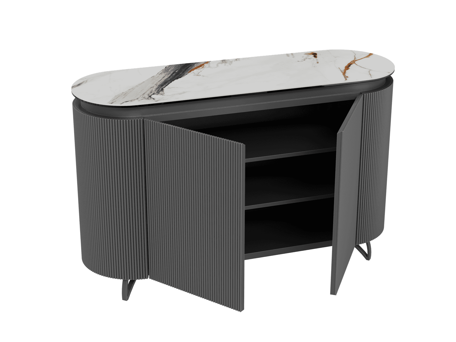 Das COLUMBUS Sideboard vereint die Wärme von Holz mit der Eleganz von Keramik und schafft so einen raffinierten und funktionalen Stil. Die gerillten Türen aus MDF mit Holzfurnier verleihen dem Möbelstück eine moderne, grafische Note. Mit Regalen und Schubladen im Inneren bietet es großzügigen Stauraum. Die Keramikplatte, erhältlich in zehn Ausführungen, passt sich harmonisch jedem Interieur an. In zwei Größen (130 oder 170 cm) erhältlich, verkörpert das COLUMBUS Sideboard das perfekte Gleichgewicht zwischen Modernität und Authentizität.