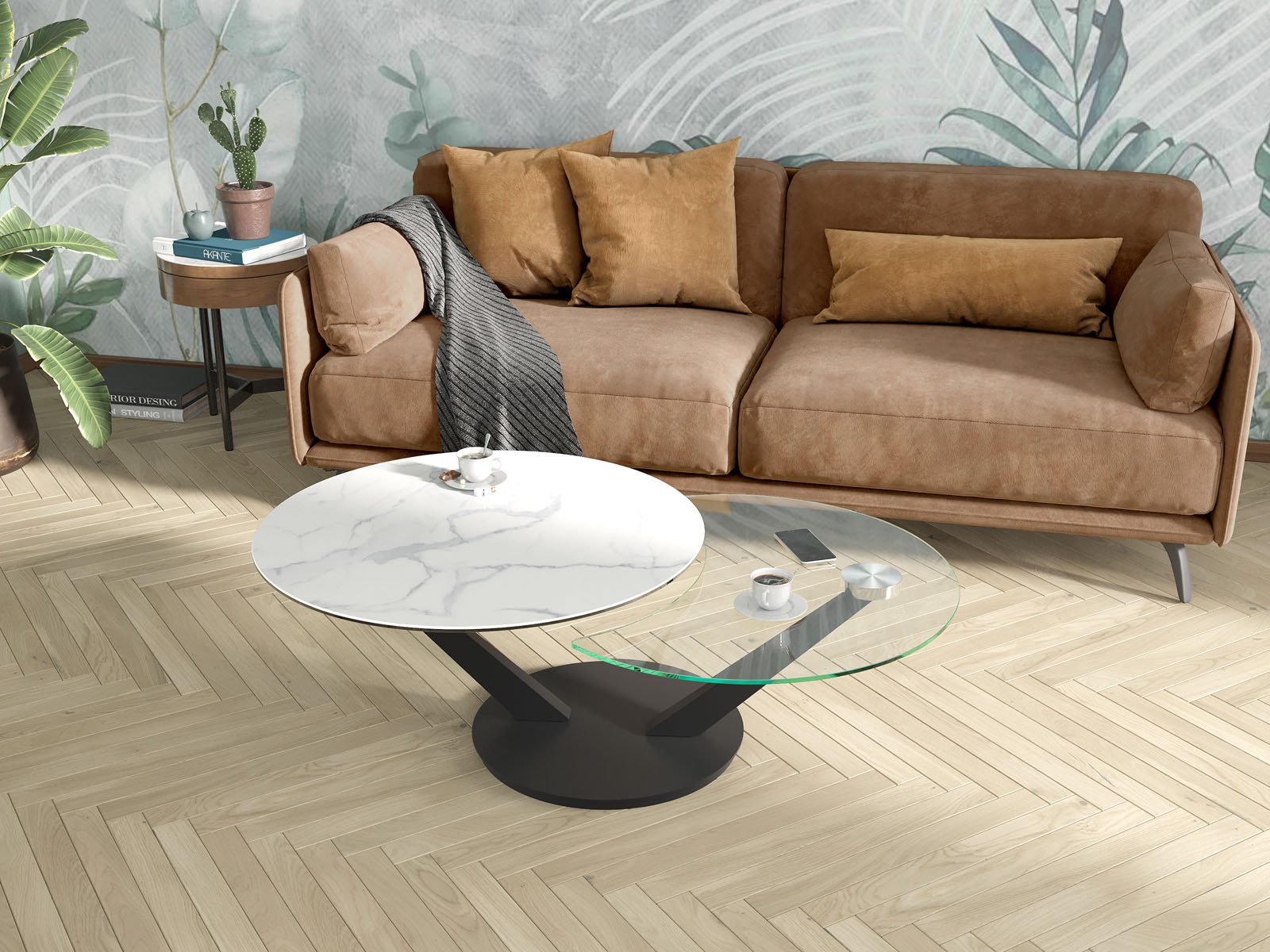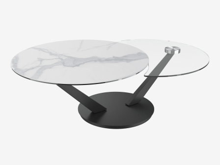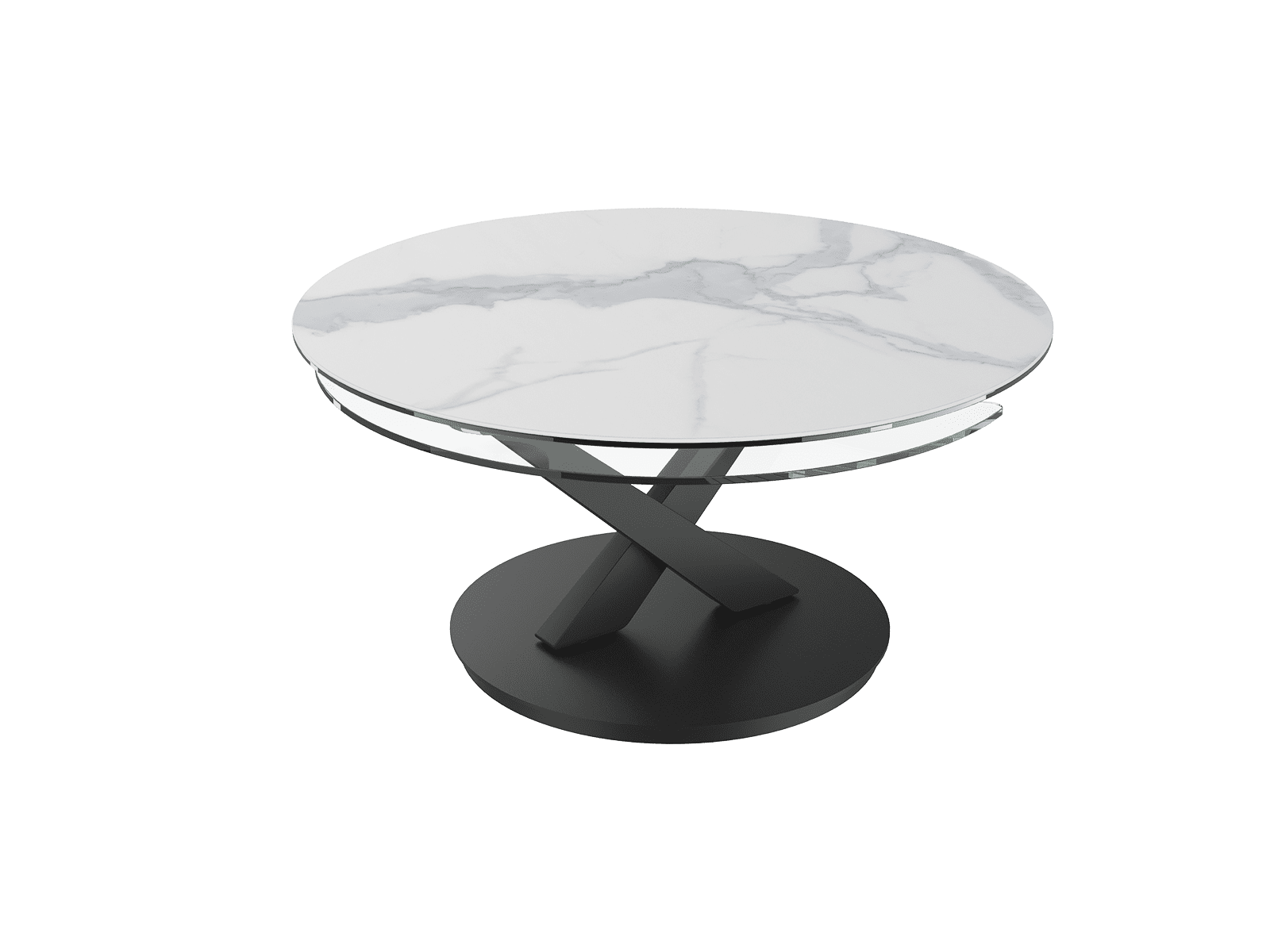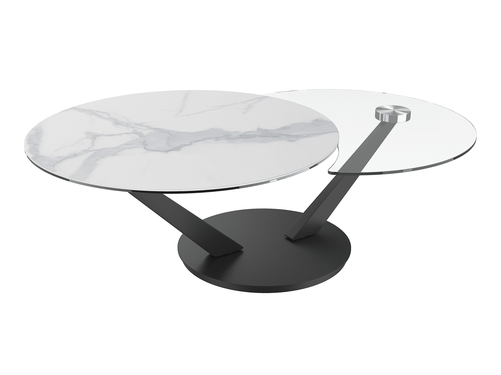 Nicht lieferbar in Deutschland, Österreich, Schweiz Riviera, eine dezente und subtile Kreation von Akante. Bei diesem Couchtisch mit Drehmechanismus können beide Tischplatten bis zu 125 cm synchron ausgefahren werden und in beliebige Positionen gedreht werden. Die Harmonie zwischen Keramik- und Glasplatte sowie dem mattschwarz lackierten Gestell in einem schönen „Passepartout-Look“ wird Sie verführen. Die Keramik ist 3 mm stark verklebt auf 6 mm starkem Glas, was ihr eine hohe Solidität verleiht.