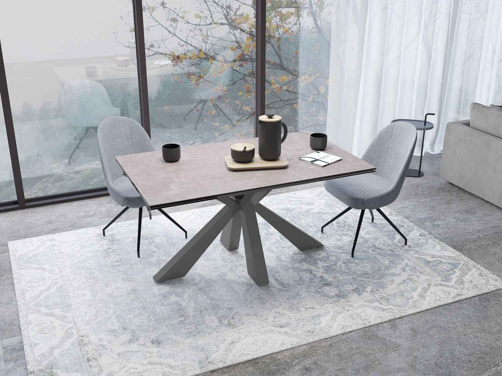 Der Esstisch Ottawa bringt Gemütlichkeit und Stil in Ihr Esszimmer. Seine 150 cm lange und 100 cm breite Tischplatte verbirgt auf raffinierte Weise seine beiden 40 cm langen Verlängerungen, die unabhängig voneinander ausklappbar sind. Der Tisch ist ebenso elegant wie funktional und wird Ihre Räume optimal ausnutzen, damit Sie alle Ihre Gäste an diesem rechteckigen, und vor allem trendigen Tisch empfangen können. Die 3 mm dicke Keramik ist mit einem 8 mm dicken Glas verklebt.