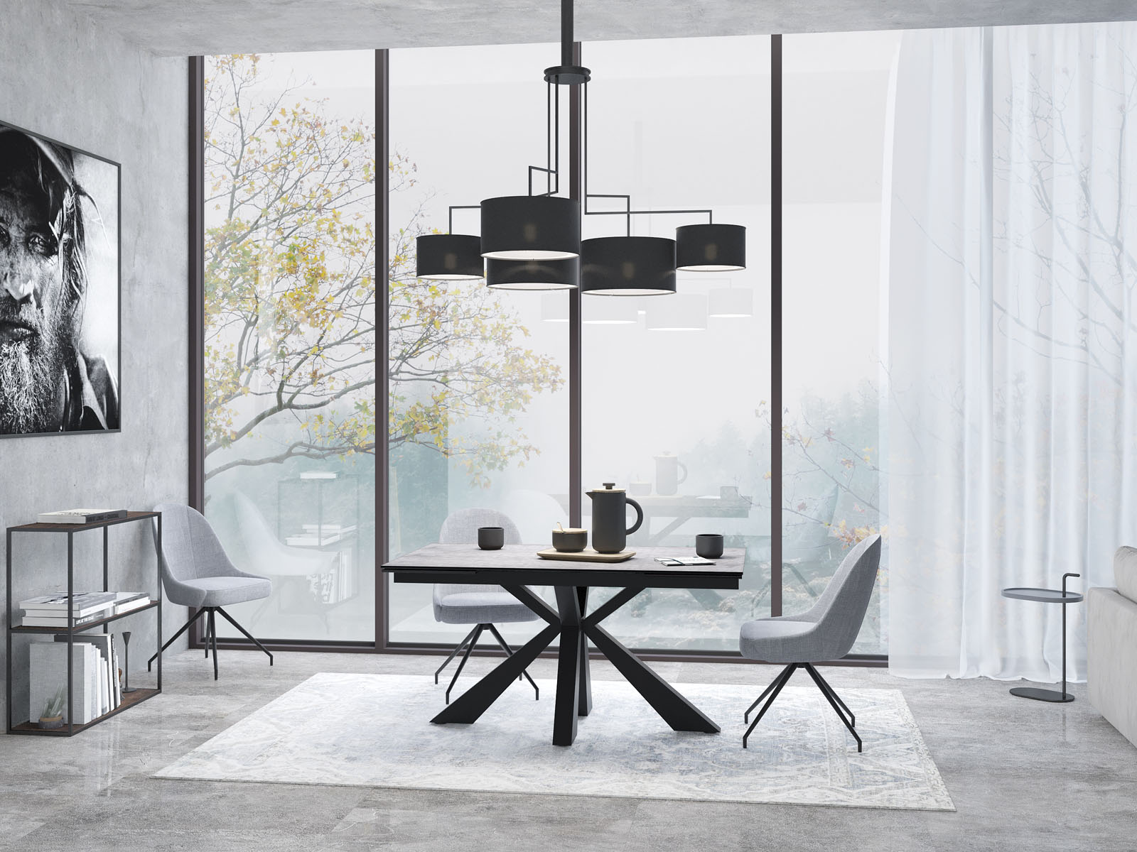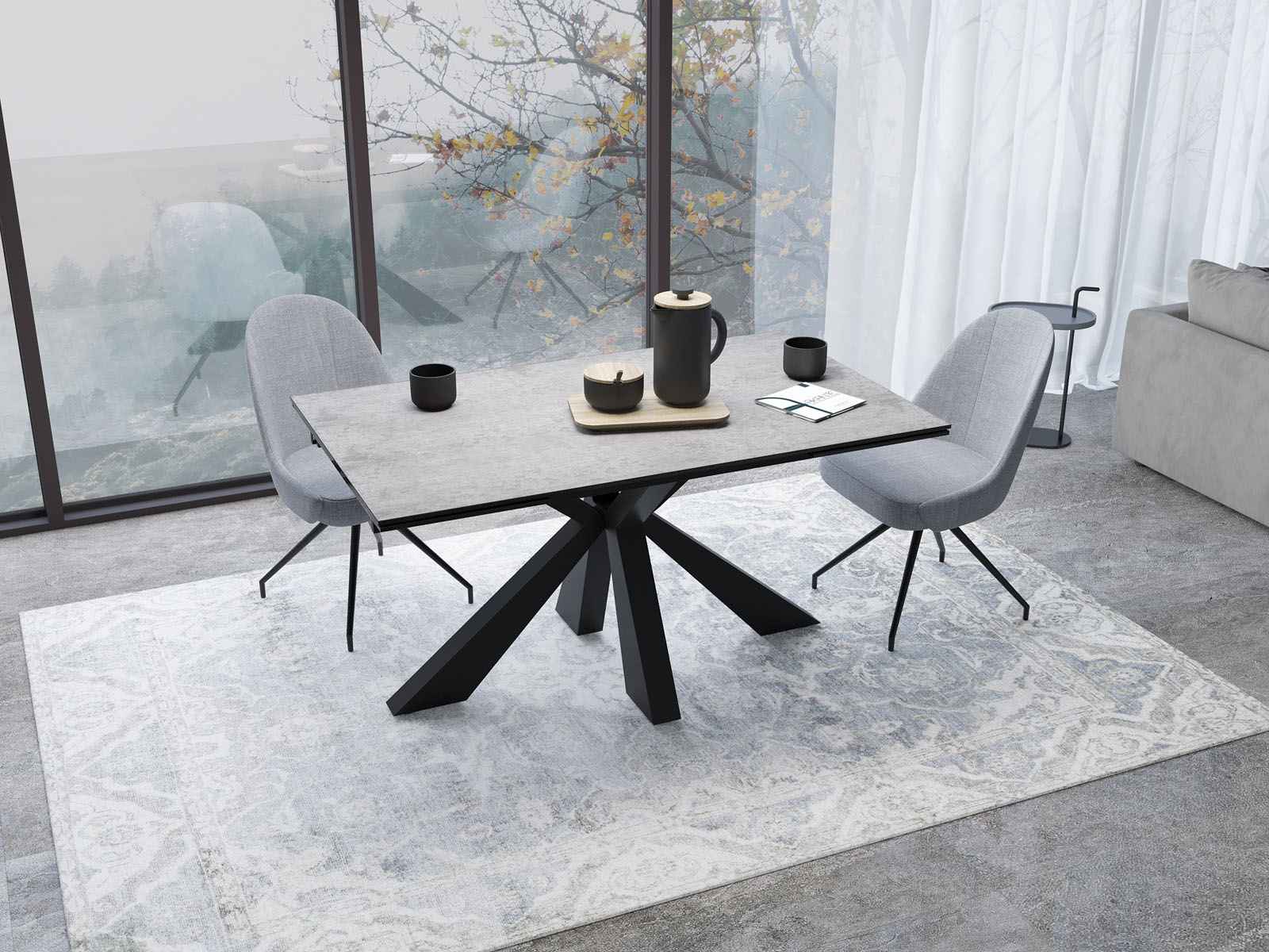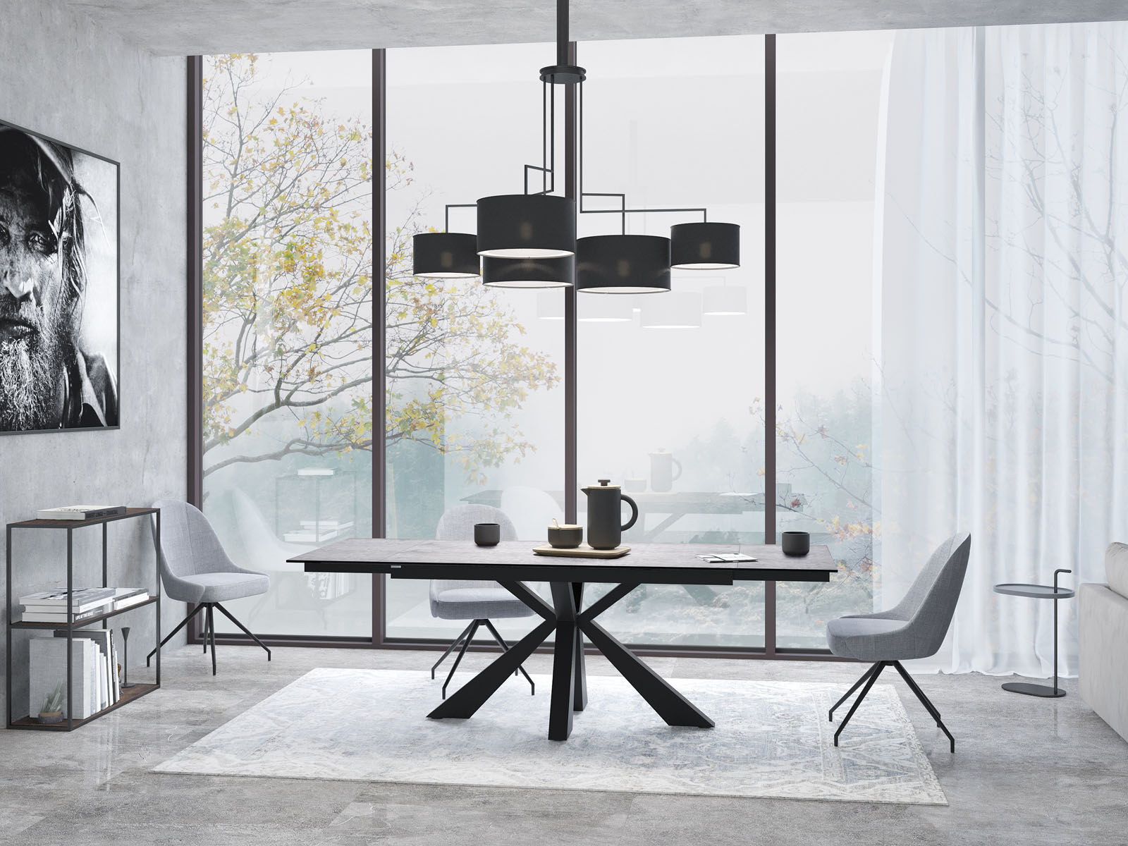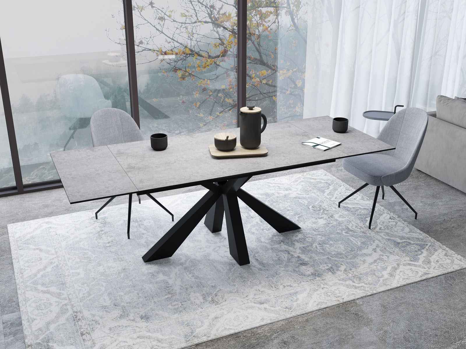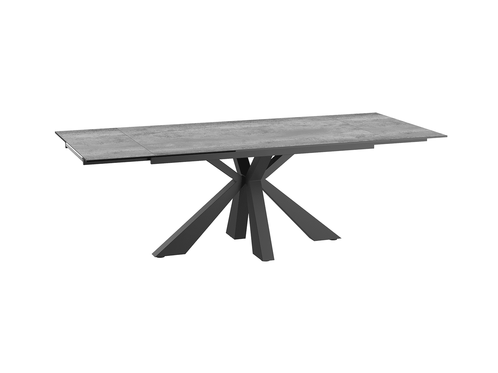 Der Esstisch Ottawa ist ebenso außergewöhnlich wie praktisch und wird dank seiner 40 cm langen Verlängerungen, die unabhängig voneinander ausgeklappt werden können, Ihr bester Helfer im Alltag sein. Die 150 cm lange und 100 cm breite Tischplatte befindet sich unter der zentralen Tischplatte, sodass Sie Ihr Esszimmer nach Belieben gestalten können. Die Tischplatte aus 3 mm starker Keramik Silver ist auf 8 mm dickes Glas geklebt, was ihr eine hohe Widerstandsfähigkeit verleiht. Sein atypisches Gestell besteht aus mattschwarz lackiertem Stahl und ist ideal für eine moderne Einrichtung.
