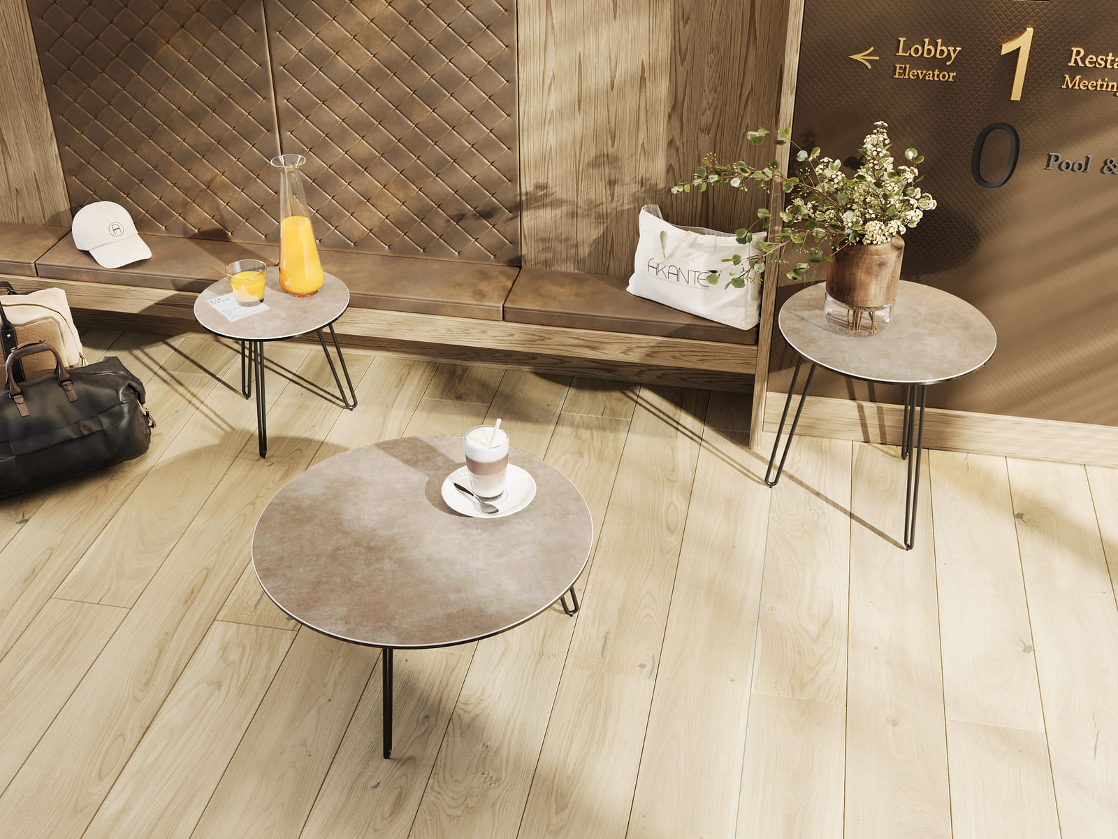 Maße & Details Nettogewicht : 7,3 Kg Farbe : Zementgrau Durchmesser : 50 cm Maße : Ø 50 x 50 cm Höhe : 50 cm Gestell : Stahl mit schwarzer Epoxidharzlackierung Platte : 3 mm Keramik, geklebt auf 6 mm Glas