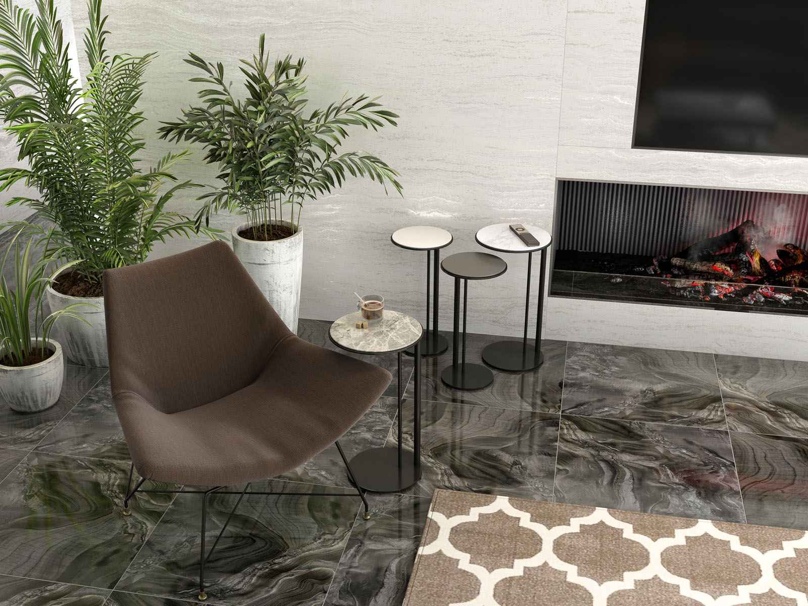 ALTA ist ein Satz hoher Beistelltische aus Keramik. Es gibt sie in zwei unterschiedlichen Höhen mit zwei verschiedenen Durchmessern. Die Keramikplatten sind in 4 Ausführungen erhältlich: in Marmoroptik, Jade, weiss und anthrazit. Das Gestell ist aus schwarz lackiertem Edelstahl.
