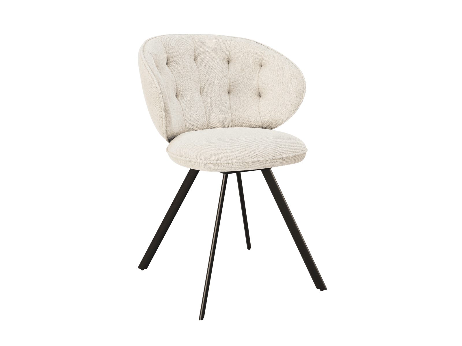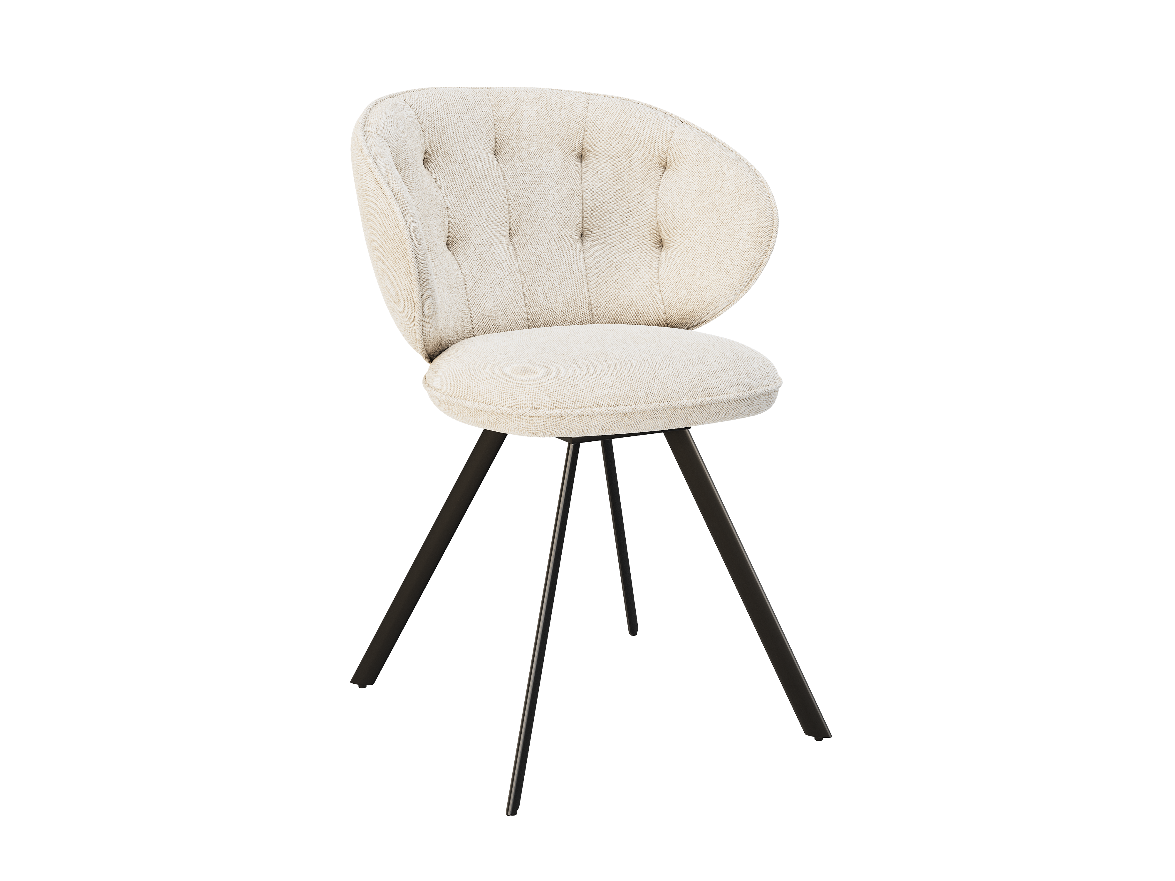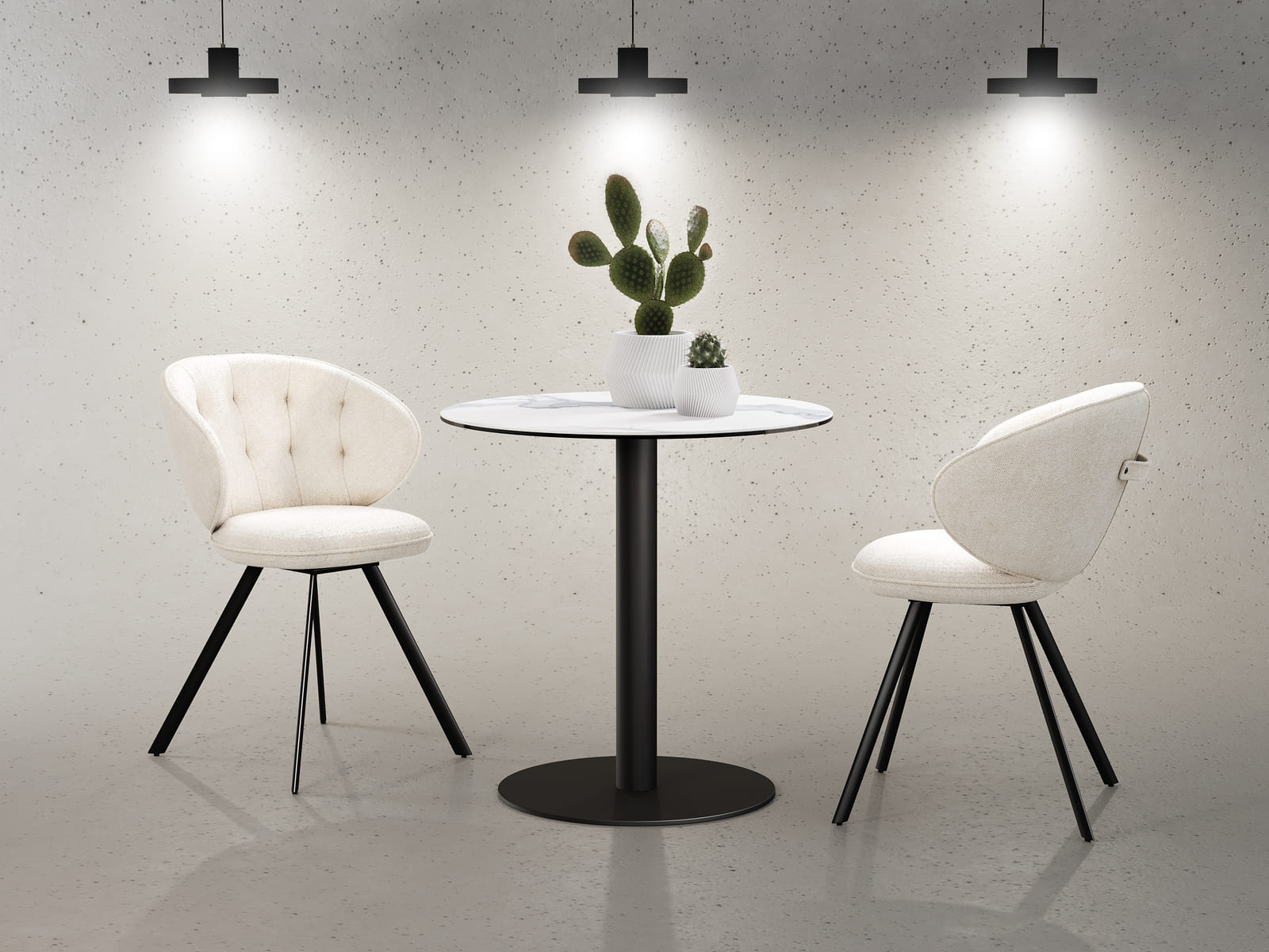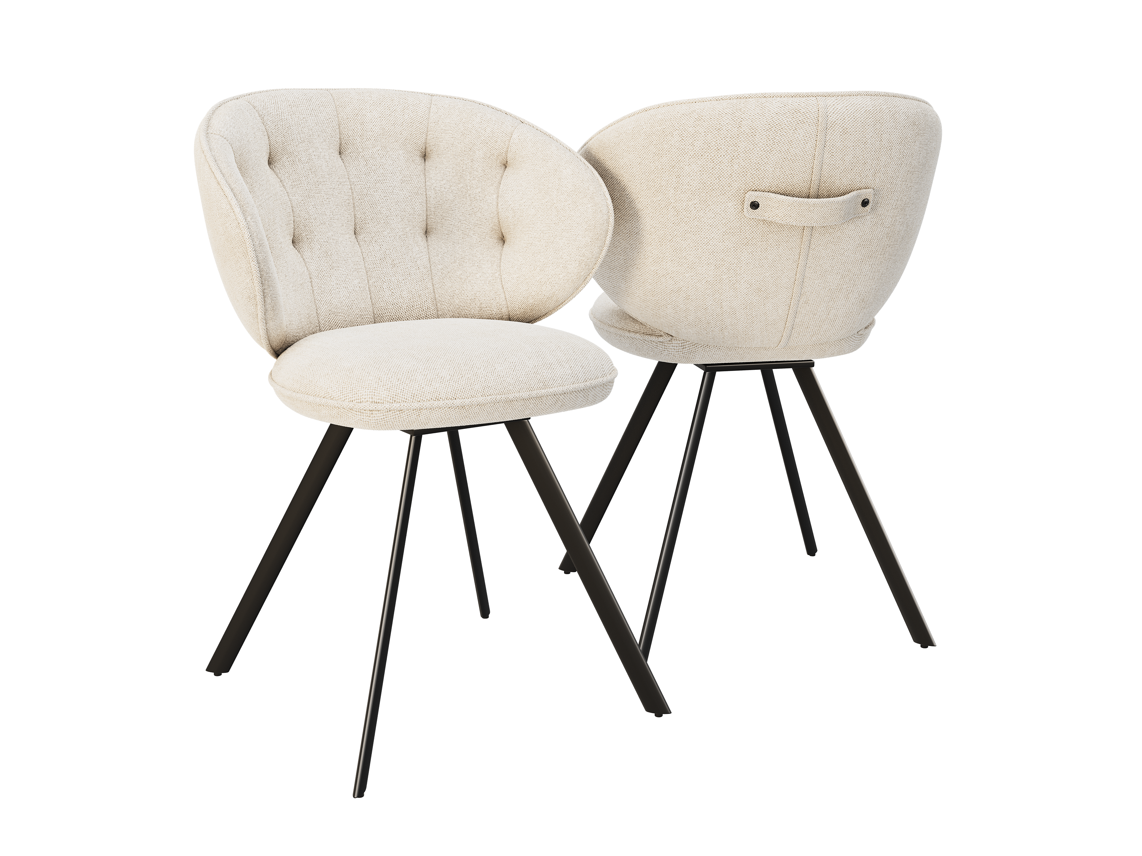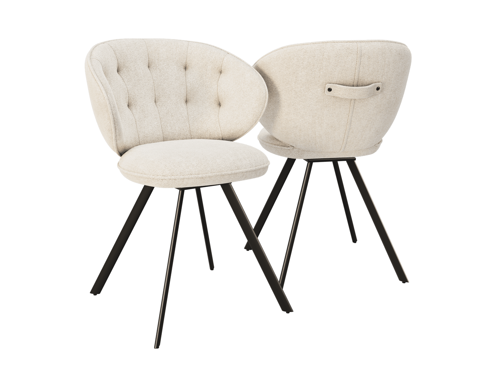 Dimensions and details Net weight : 9 Kg Seat : Pivots 180° Fabric composition : 100% Polyester Colour : Off-white Foam density : 25kg/m3 Seating height : 48 cm Total height : 80 cm Width : 56,5 cm Martindale : 60 000 Seat material : Fabric Legs : Matt black lacquered steel Maximum supported weight : 120 kg Depth : 60 cm Sold by 2 pieces only Light resistant : 5/5 Pilling resistance : 5/5 Color fastness to rubbing : 5/5 Fire resistance : Complies with current European standard EN 1021-1 (cigarette resistance) Fire resistance : Complies with current European standard EN 1021-2 (flame resistance) Fabric : OEKO-TEX® Standard 100 INPI : 20231433