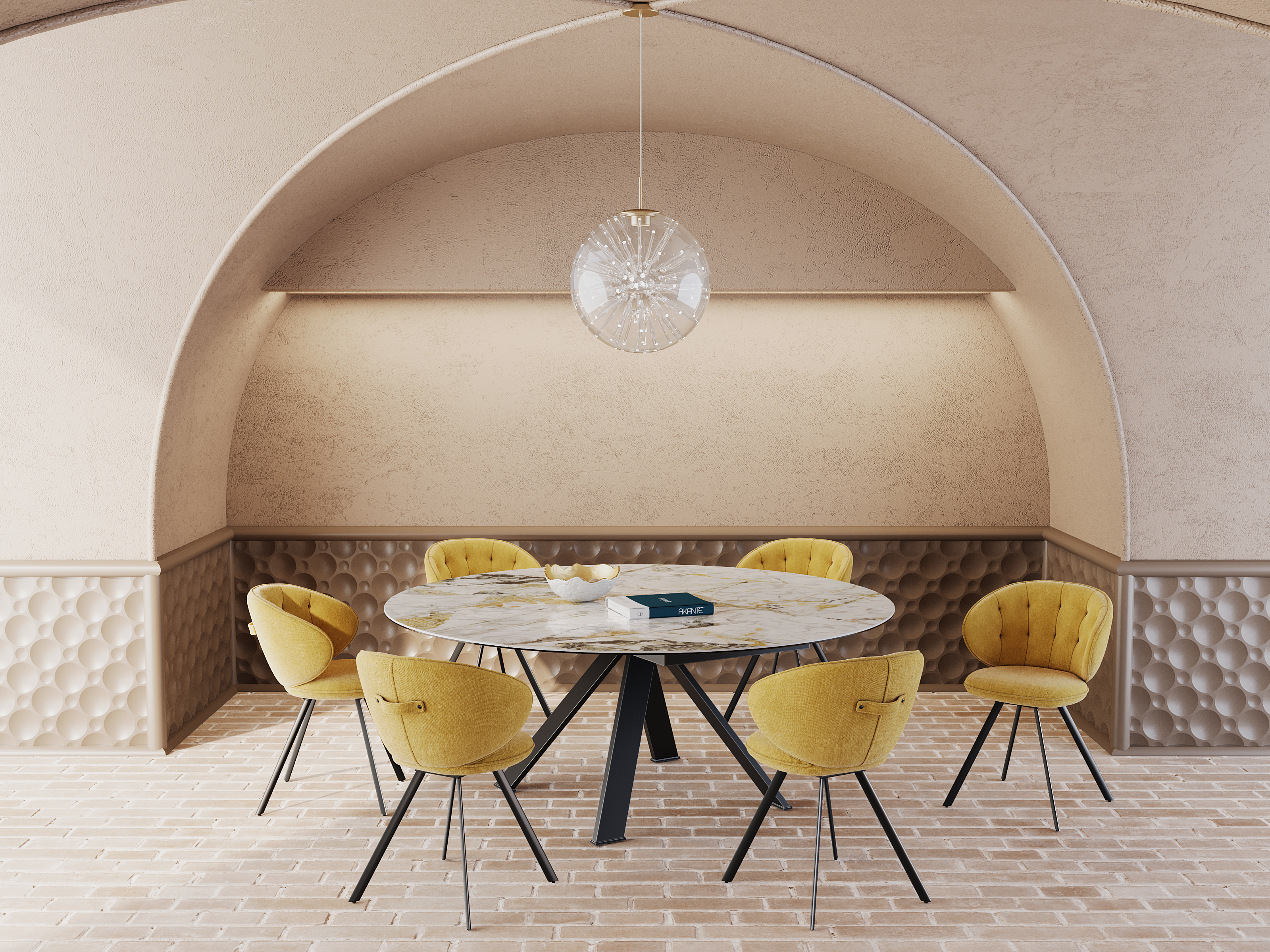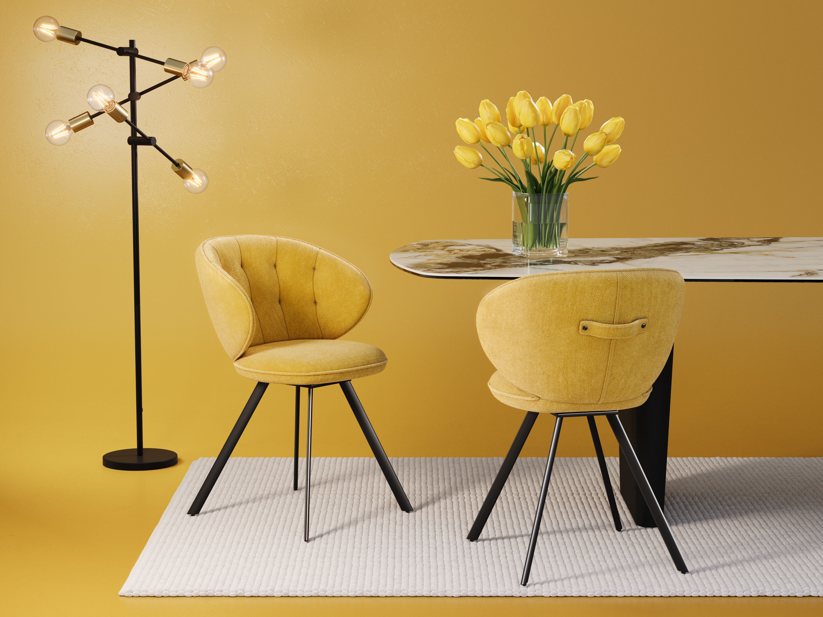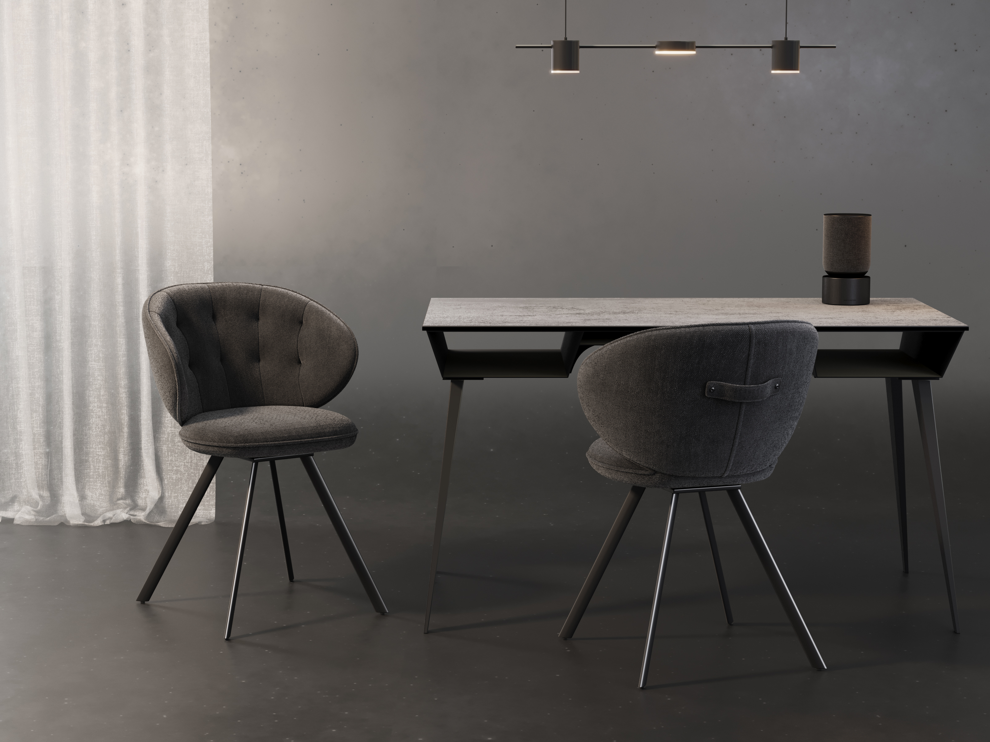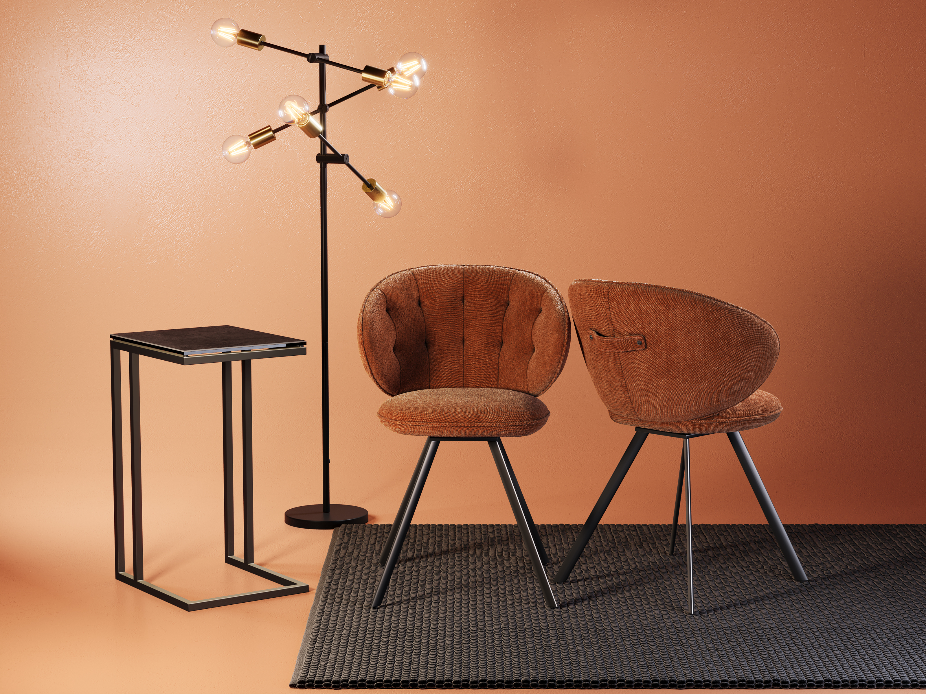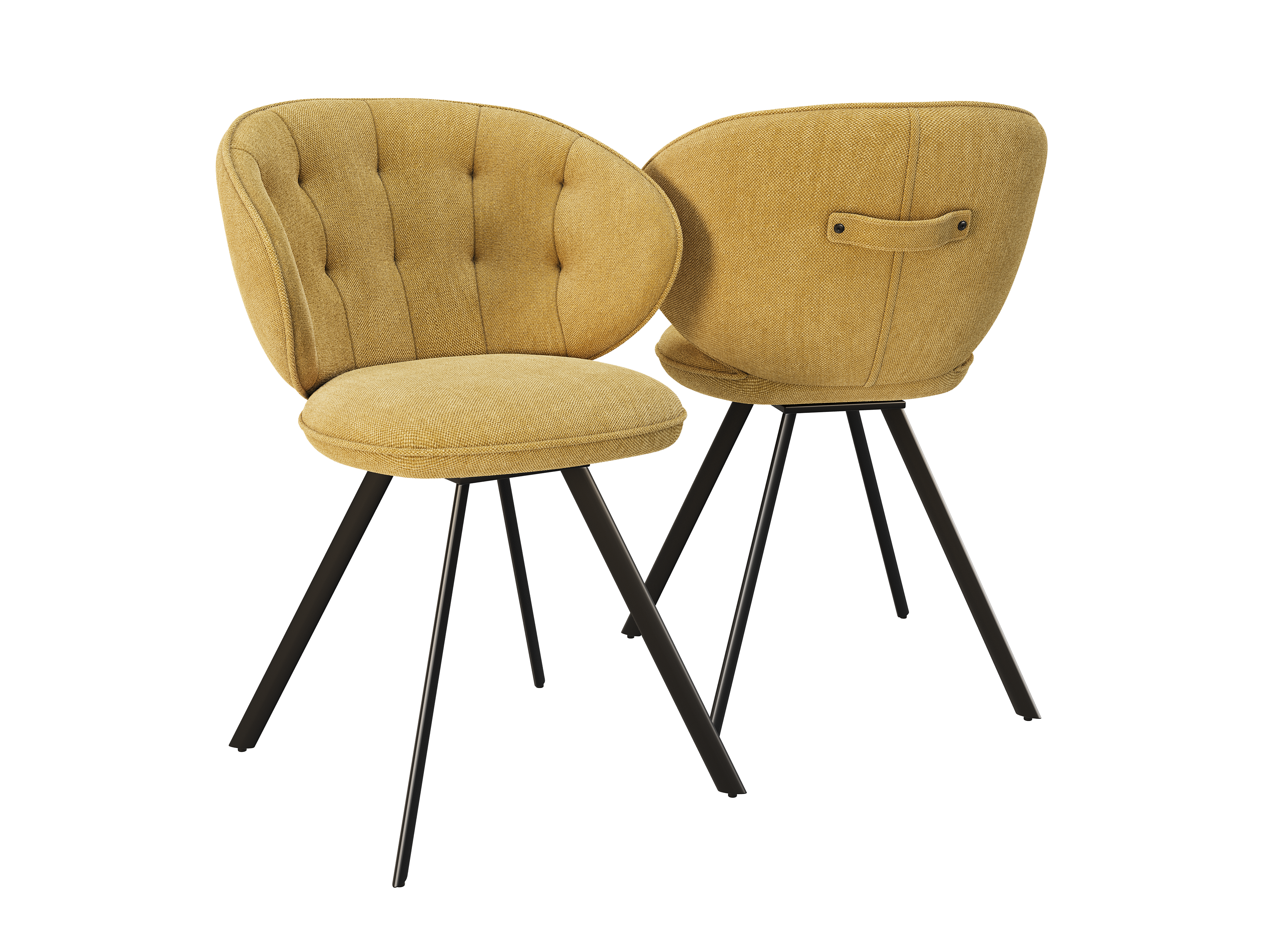 Dimensions and details Net weight : 9 Kg Seat : Pivots 180° Fabric composition : 100% Polyester Colour : Off-white Foam density : 25kg/m3 Seating height : 48 cm Total height : 80 cm Width : 56,5 cm Martindale : 60 000 Seat material : Fabric Legs : Matt black lacquered steel Maximum supported weight : 120 kg Depth : 60 cm Sold by 2 pieces only Light resistant : 5/5 Pilling resistance : 5/5 Color fastness to rubbing : 5/5 Fire resistance : Complies with current European standard EN 1021-1 (cigarette resistance) Fire resistance : Complies with current European standard EN 1021-2 (flame resistance) Fabric : OEKO-TEX® Standard 100 INPI : 20231433