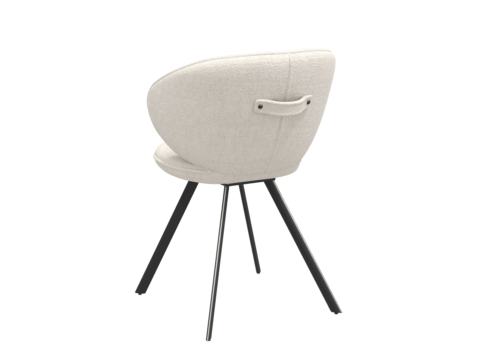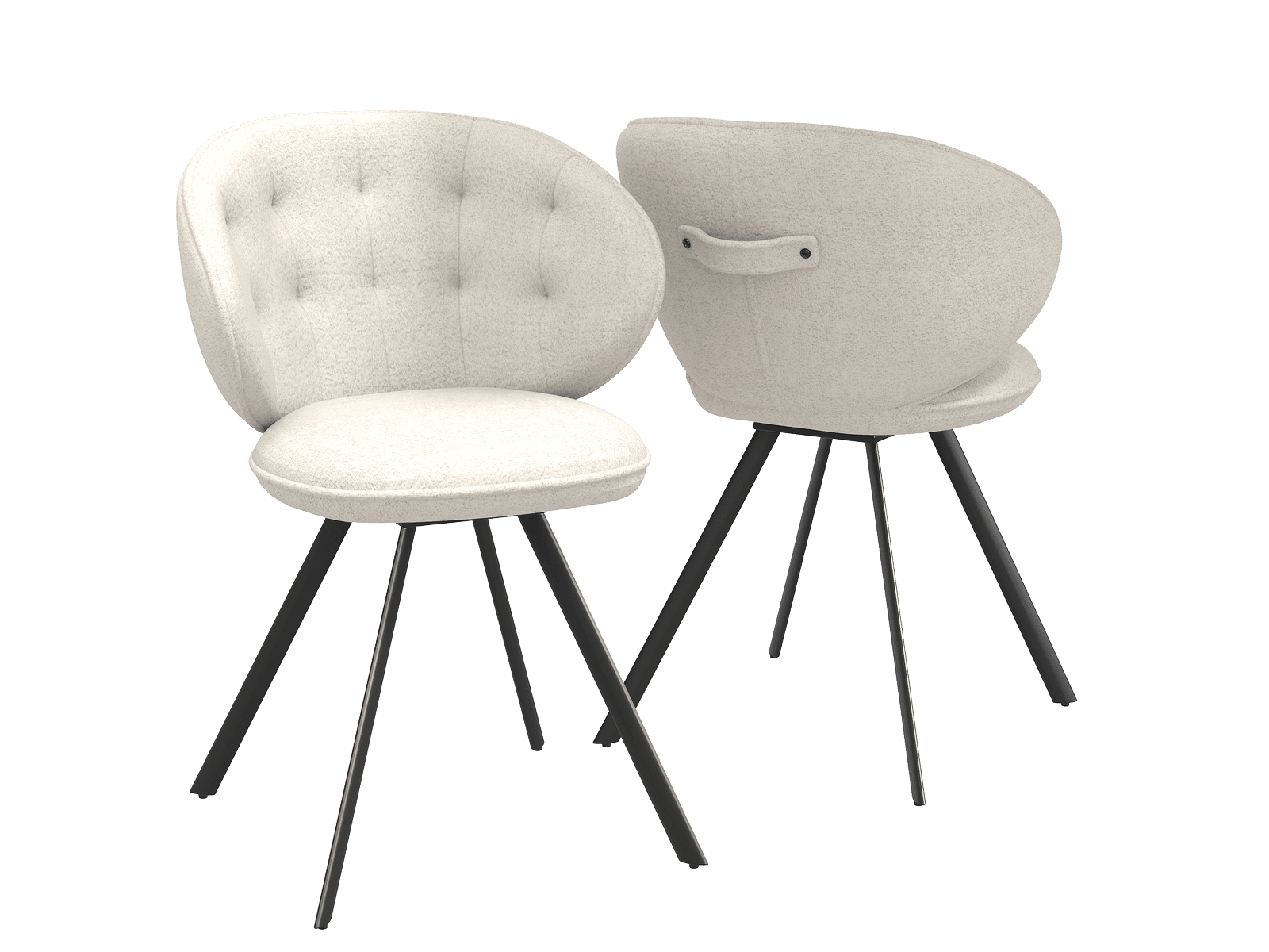 Dimensions and details Net weight : 9 Kg Seat : Pivots 180° Fabric composition : 100% Polyester Fabric Colour : Egg Foam density : 25kg/m3 Seating height : 48 cm Total height : 80 cm Width : 56,5 cm Martindale : 80 000 Legs : Matt black lacquered steel Maximum supported weight : 120 kg Depth : 60 cm Seating comfort type : balanced Backrest comfort type : balanced Sold by 2 pieces only Light resistant : > 5 Pilling resistance : 4-5 Water-repellent fabric : Complies with international standard ISO 4920:2012 (spray test), level 4-5