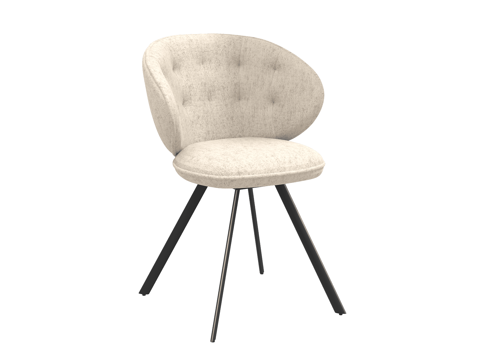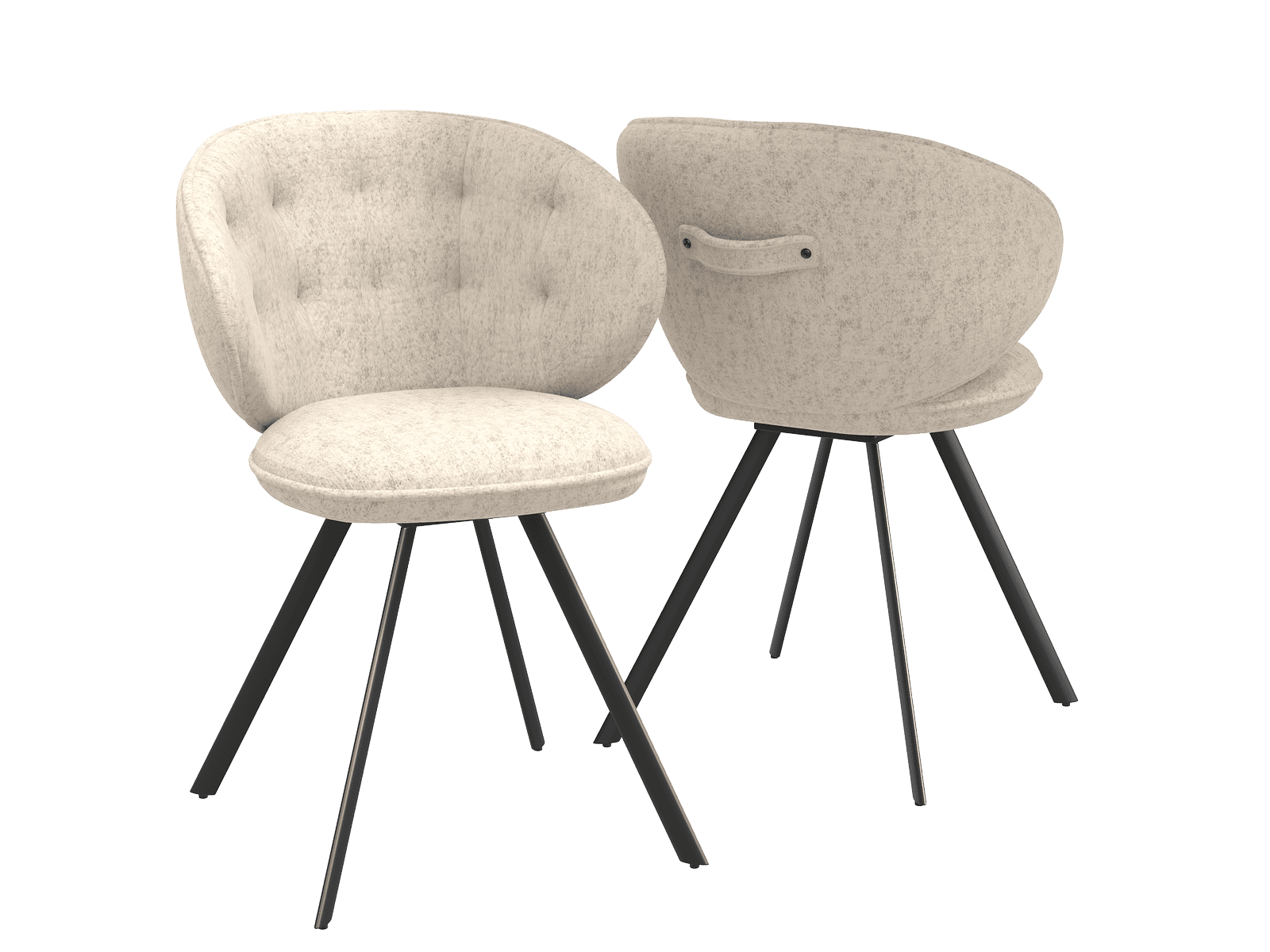 Dimensions and details Net weight : 9 Kg Seat : Pivots 180° Fabric composition : 100% Polyester Fabric Colour : Vanilla Foam density : 25 kg/m3 Seating height : 48 cm Total height : 80 cm Width : 56,5 cm Martindale : 80 000 Legs : Matt black lacquered steel Maximum supported weight : 120 kg Depth : 60 cm Seating comfort type : balanced Backrest comfort type : balanced Sold by 2 pieces only Light resistant : > 5 Pilling resistance : 4-5 Water-repellent fabric : Complies with international standard ISO 4920:2012 (spray test), level 4-5