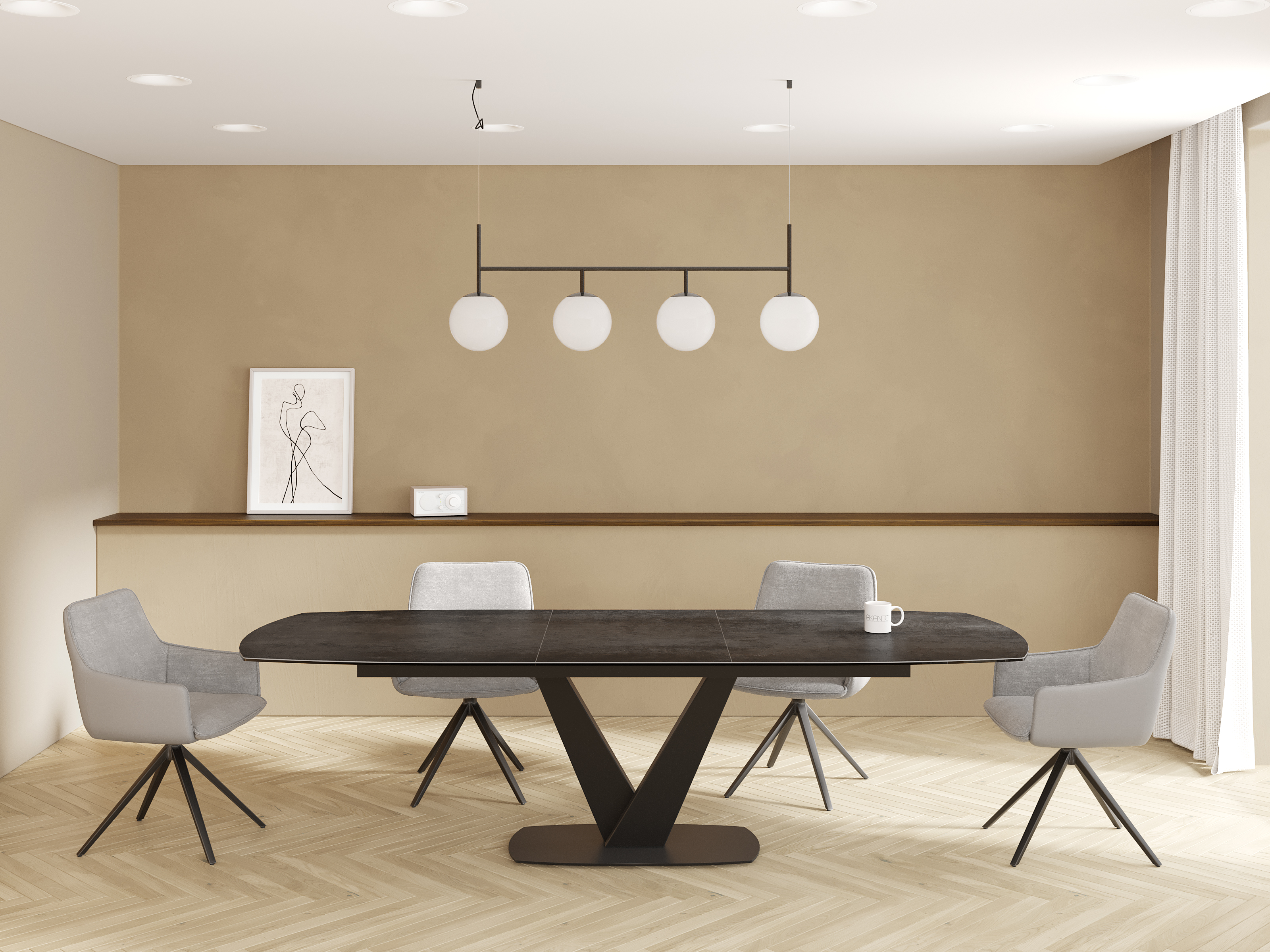 Dimensions and details Net weight : 9 Kg Seat : Pivots 180° Composition : 100% Polyurethan Fabric composition : 100% Polyester PU Colour : Grey Fabric Colour : Light grey Foam density : 25kg/m3 Armrest Height : 64 cm Seating height : 48 cm Total height : 84 cm Width : 62 cm Martindale : 60 000 Seat material : Fabric and Polyurethane Legs : Matt black lacquered steel Maximum supported weight : 120 kg Depth : 60 cm Sold by 2 pieces only Light resistant : 5/5 Pilling resistance : 5/5 Color fastness to rubbing : 5/5 Fire resistance : Complies with current European standard EN 1021-1 (cigarette resistance) Fire resistance : Complies with current European standard EN 1021-2 (flame resistance) Fabric : OEKO-TEX® Standard 100 INPI : 20231433