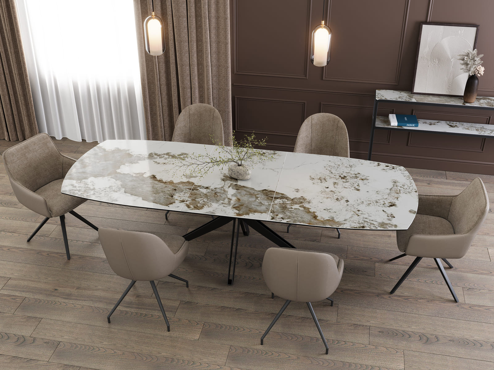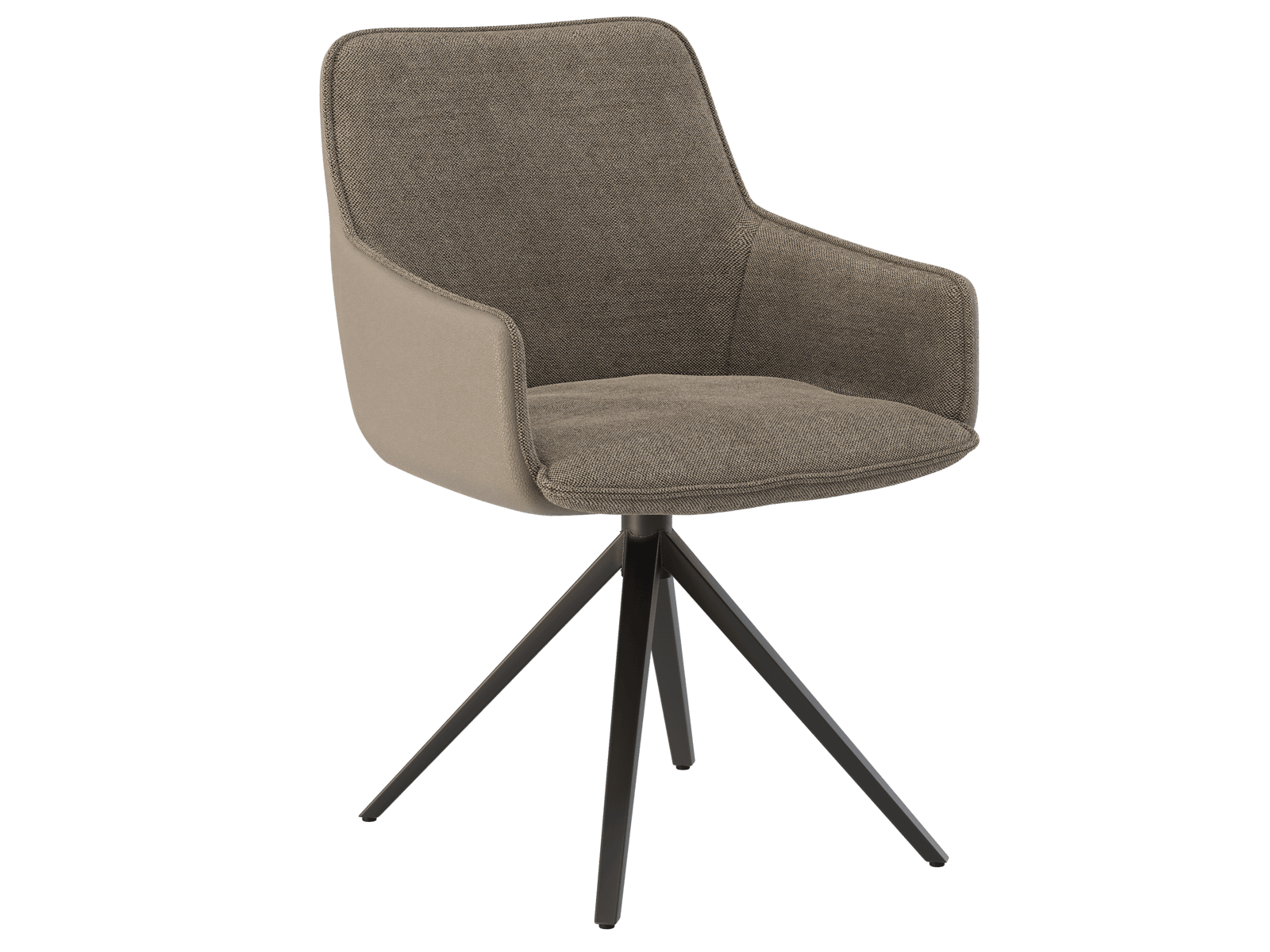Dimensions and details Net weight : 9 Kg Seat : Pivots 180° Composition : 100% Polyurethan Fabric composition : 100% Polyester PU Colour : Taupe Fabric Colour : Beige Foam density : 25kg/m3 Armrest Height : 64 cm Seating height : 48 cm Total height : 84 cm Width : 62 cm Martindale : 60 000 Seat material : Fabric and Polyurethane Legs : Matt black lacquered steel Maximum supported weight : 120 kg Depth : 60 cm Sold by 2 pieces only Light resistant : 5/5 Pilling resistance : 5/5 Color fastness to rubbing : 5/5 Fire resistance : Complies with current European standard EN 1021-1 (cigarette resistance) Fire resistance : Complies with current European standard EN 1021-2 (flame resistance) Fabric : OEKO-TEX® Standard 100 INPI : 20231433