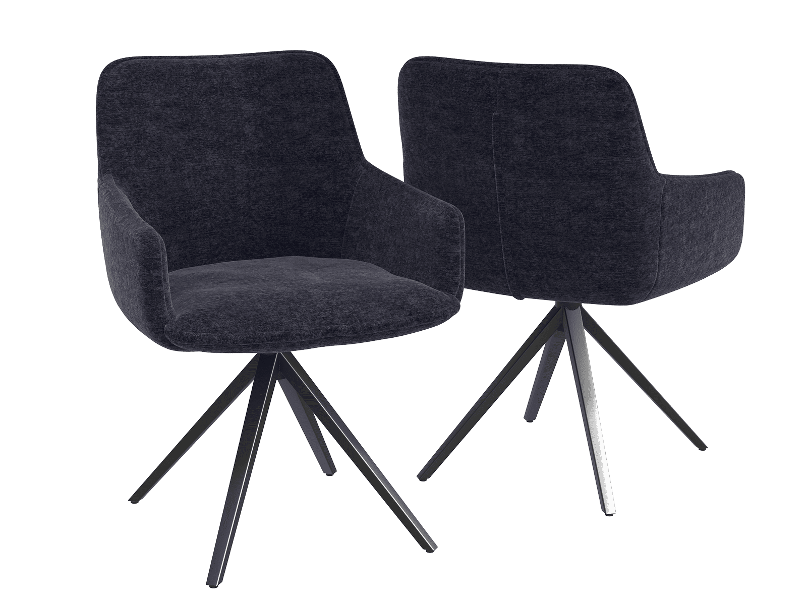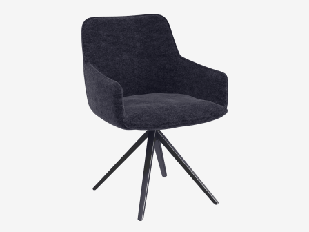 Dimensions and details Net weight : 9 Kg Seat : Pivots 360° Fabric composition : 100% Polyester Fabric Colour : Night Foam density : 28 kg/m3 Armrest Height : 64 cm Seating height : 48 cm Total height : 84 cm Width : 62 cm Martindale : 80 000 Legs : Matt black lacquered steel Maximum supported weight : 120 kg Depth : 60 cm Seating comfort type : firm Backrest comfort type : firm Sold by 2 pieces only Light resistant : > 5 Pilling resistance : 4-5 Water-repellent fabric : Complies with international standard ISO 4920:2012 (spray test), level 4-5 NOT AVAILABLE FOR THE UK AND IRISH MARKET.