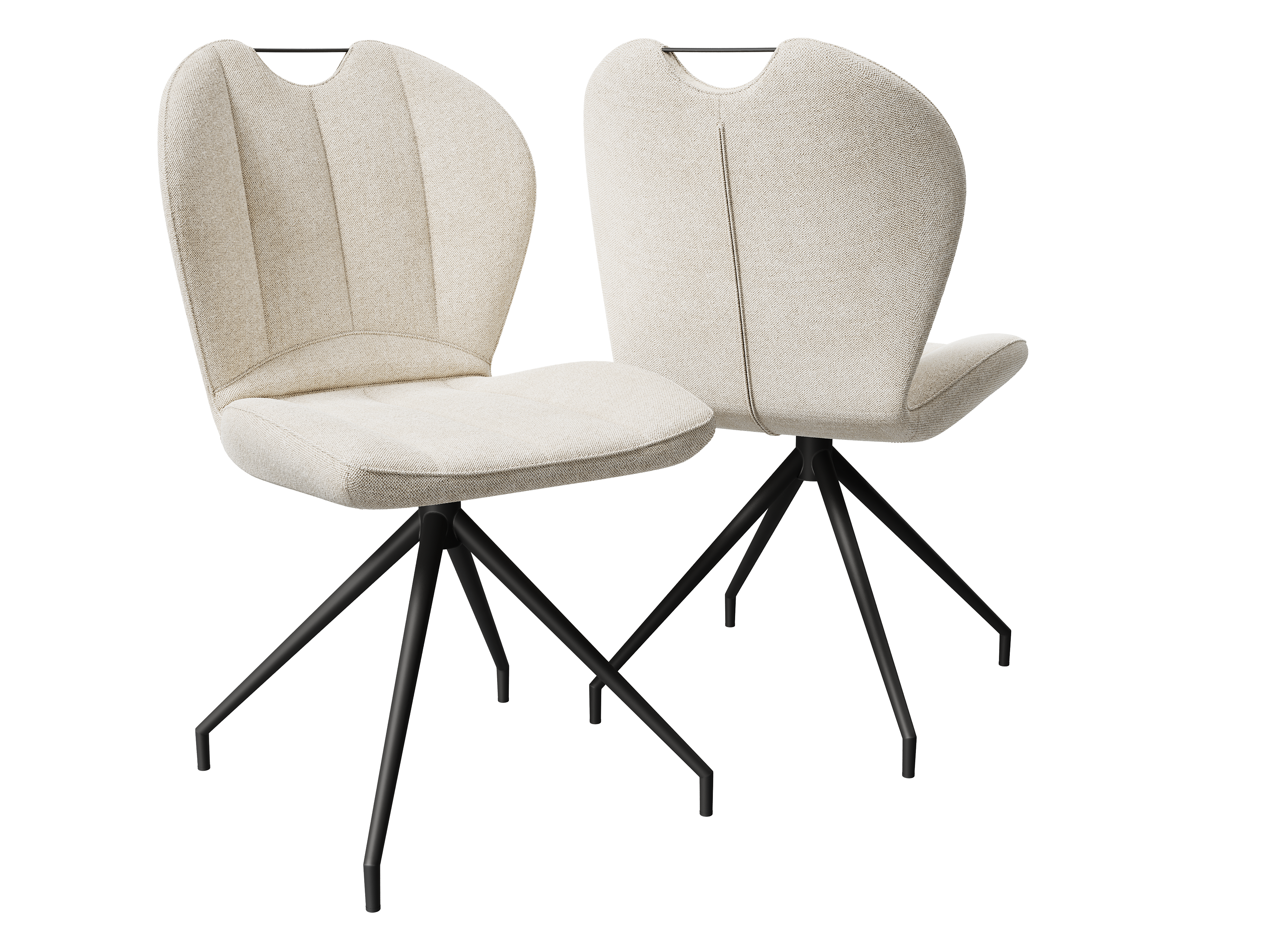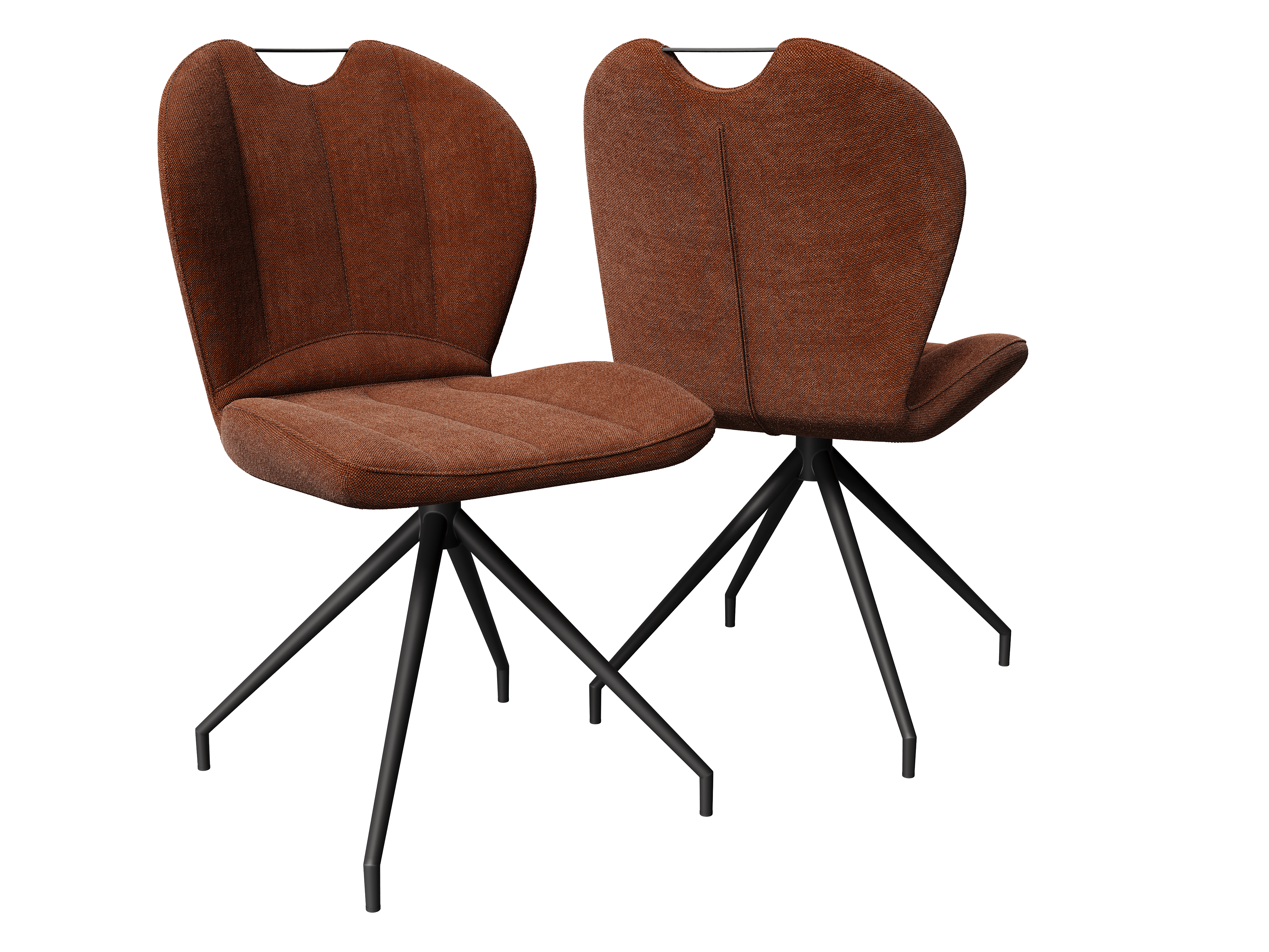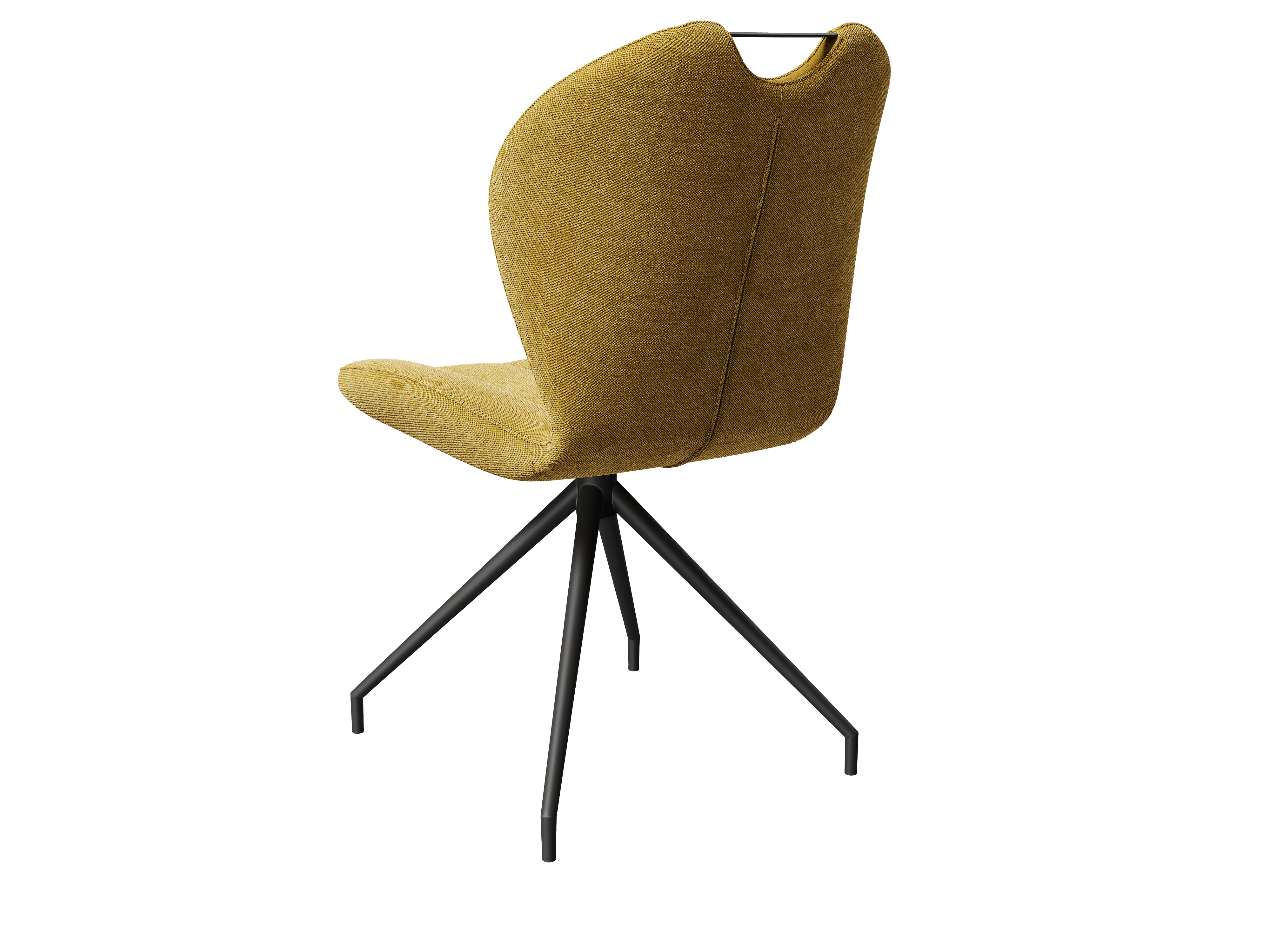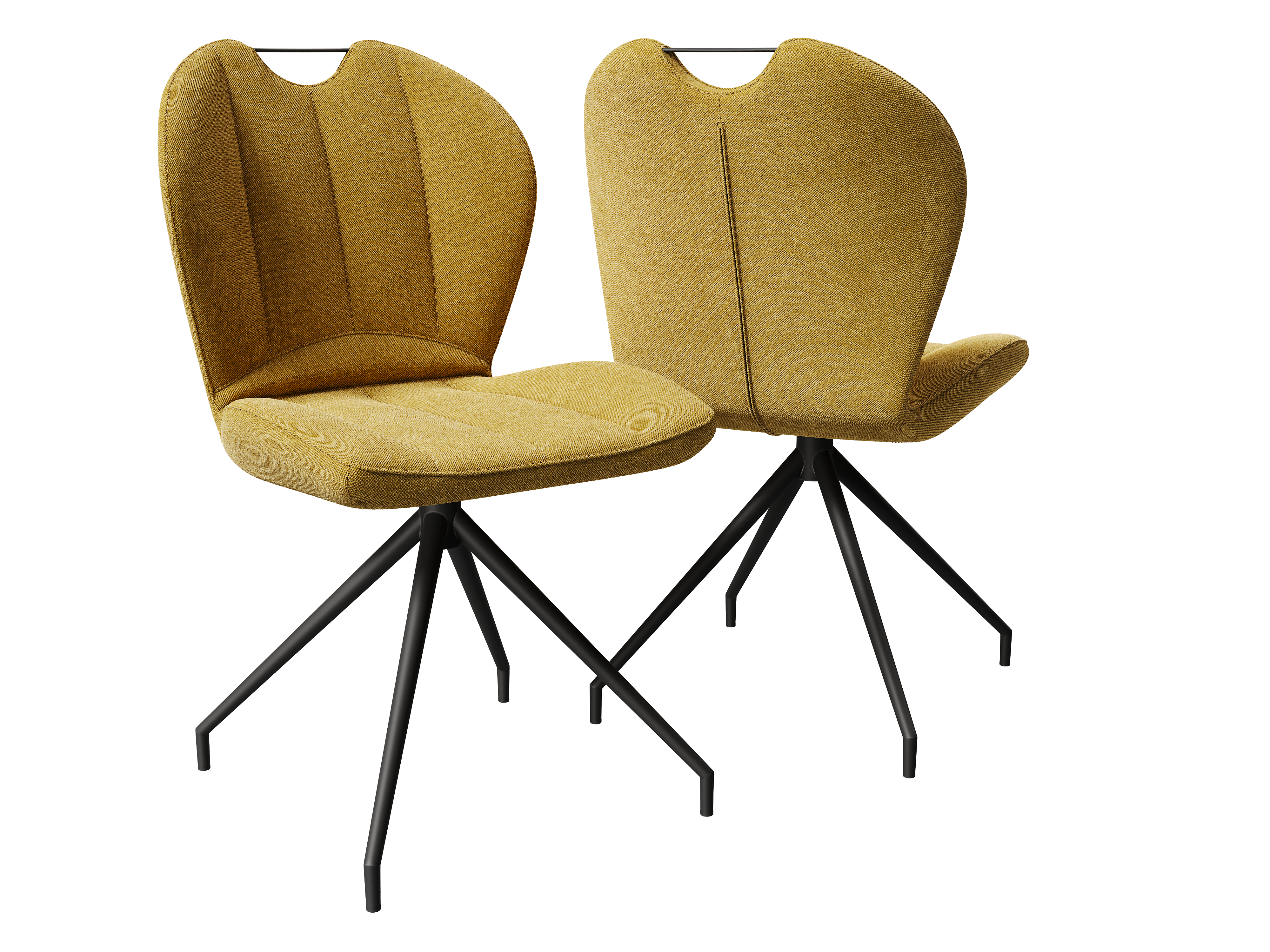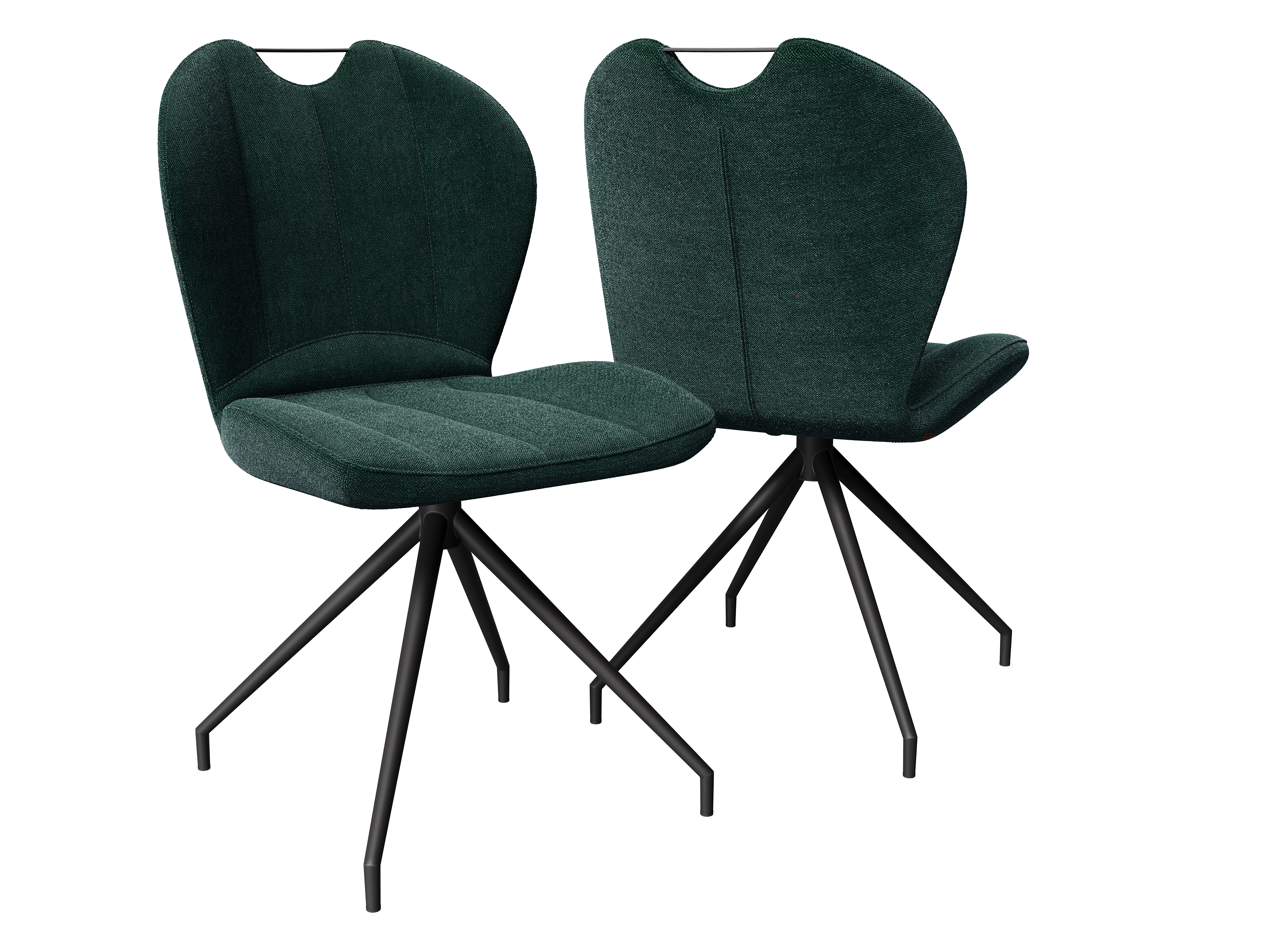 Dimensions and details Net weight : 7 Kg Seat : Pivots 180° Fabric composition : 100% Polyester Colour : Fir green Foam density : 25kg/m3 Seating height : 48 cm Total height : 86 cm Width : 50 cm Martindale : 60 000 Seat material : Fabric Legs : Matt black lacquered steel Maximum supported weight : 120 kg Depth : 63 cm Sold by 2 pieces only Light resistant : 5/5 Pilling resistance : 5/5 Color fastness to rubbing : 5/5 Fabric : OEKO-TEX® Standard 100 NOT AVAILABLE FOR THE UK AND IRISH MARKET. INPI : 20190743
