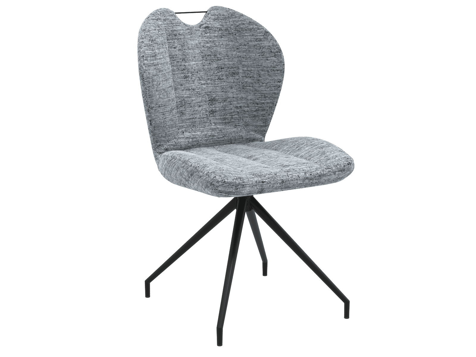 Dimensions and details Net weight : 7 Kg Seat : Pivots 180° Fabric composition : 100% Polyester Fabric Colour : Flint Foam density : 28kg/m3 Seating height : 48 cm Total height : 86 cm Width : 50 cm Martindale Fabric : 80 000 Legs : Matt black lacquered steel Maximum supported weight : 120 kg Depth : 63 cm Seating comfort type : firm Backrest comfort type : firm Sold by 2 pieces only Light resistant : > 5 Pilling resistance : 4-5 Water-repellent fabric : Complies with international standard ISO 4920:2012 (spray test), level 4-5 NOT AVAILABLE FOR THE UK AND IRISH MARKET.