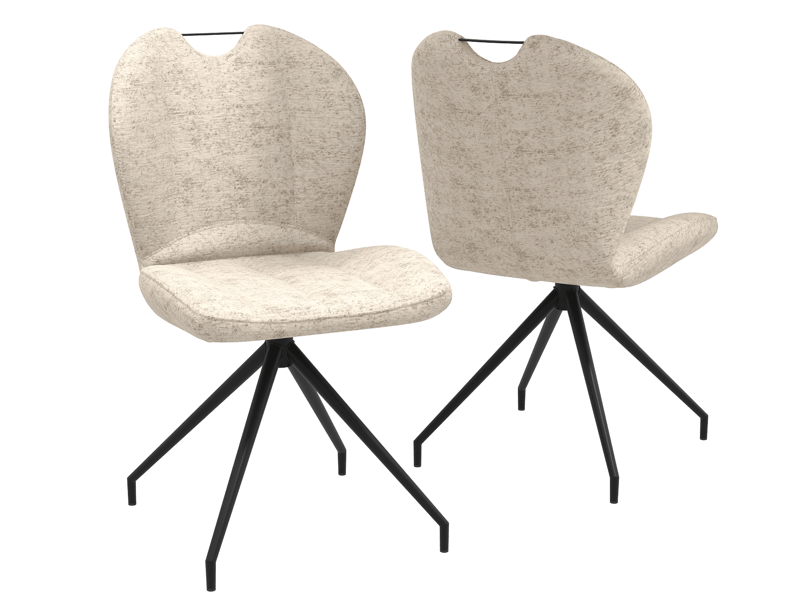 Dimensions and details Net weight : 7 Kg Seat : Pivots 180° Fabric composition : 100% Polyester Fabric Colour : Vanilla Foam density : 28kg/m3 Seating height : 48 cm Total height : 86 cm Width : 50 cm Martindale Fabric : 80 000 Legs : Matt black lacquered steel Maximum supported weight : 120 kg Depth : 63 cm Seating comfort type : firm Backrest comfort type : firm Sold by 2 pieces only Light resistant : > 5 Pilling resistance : 4-5 Water-repellent fabric : Complies with international standard ISO 4920:2012 (spray test), level 4-5 NOT AVAILABLE FOR THE UK AND IRISH MARKET.