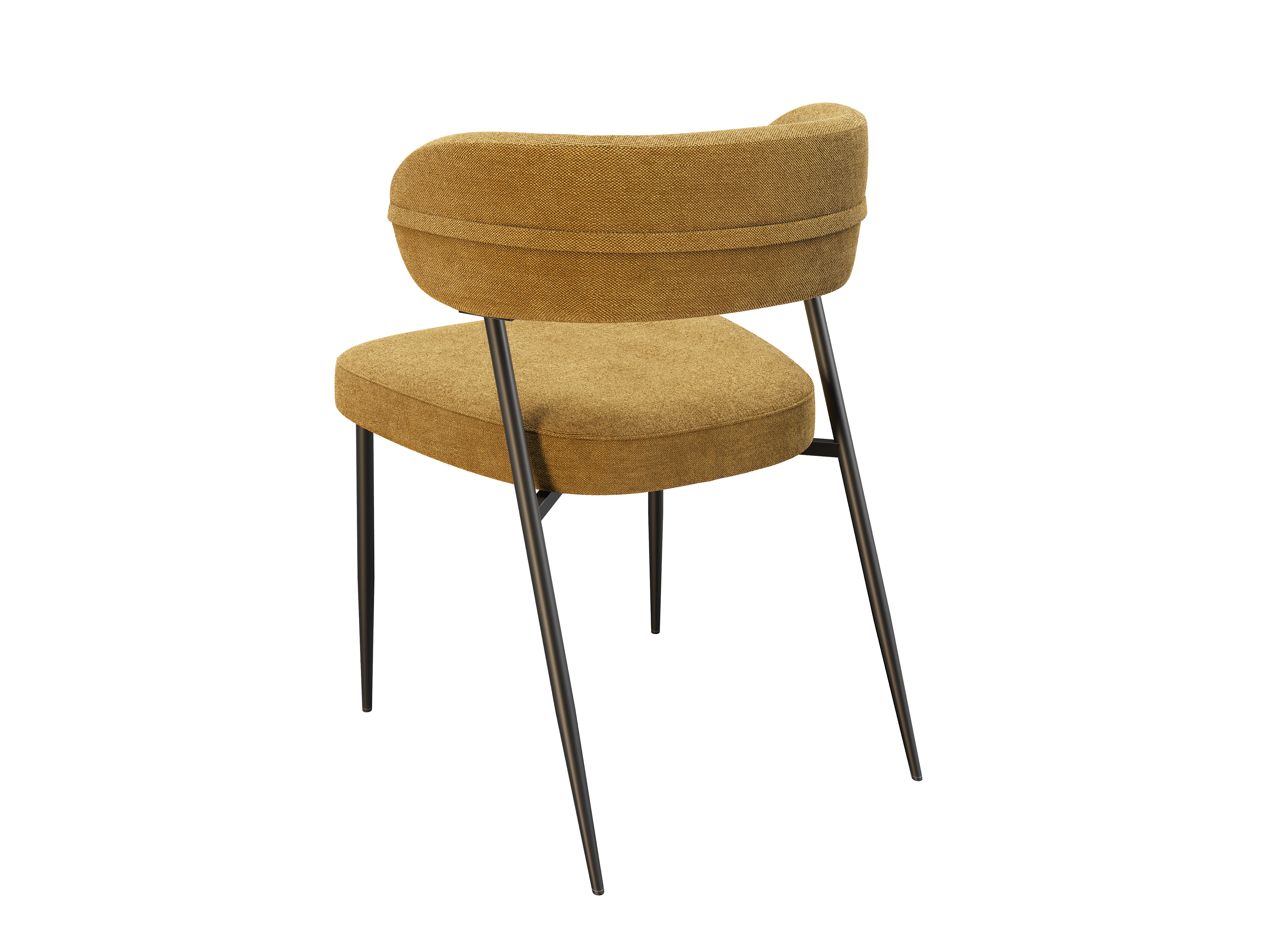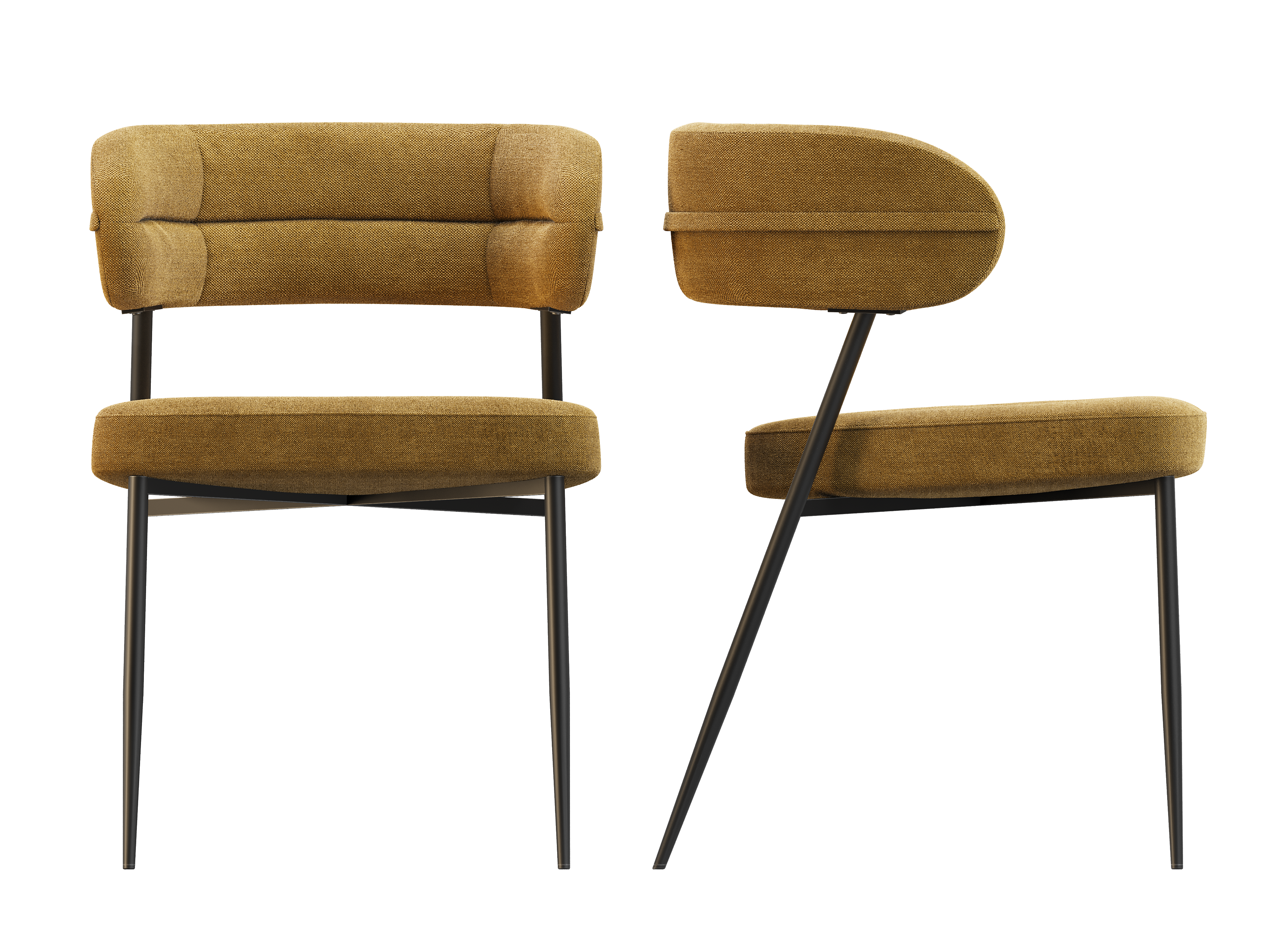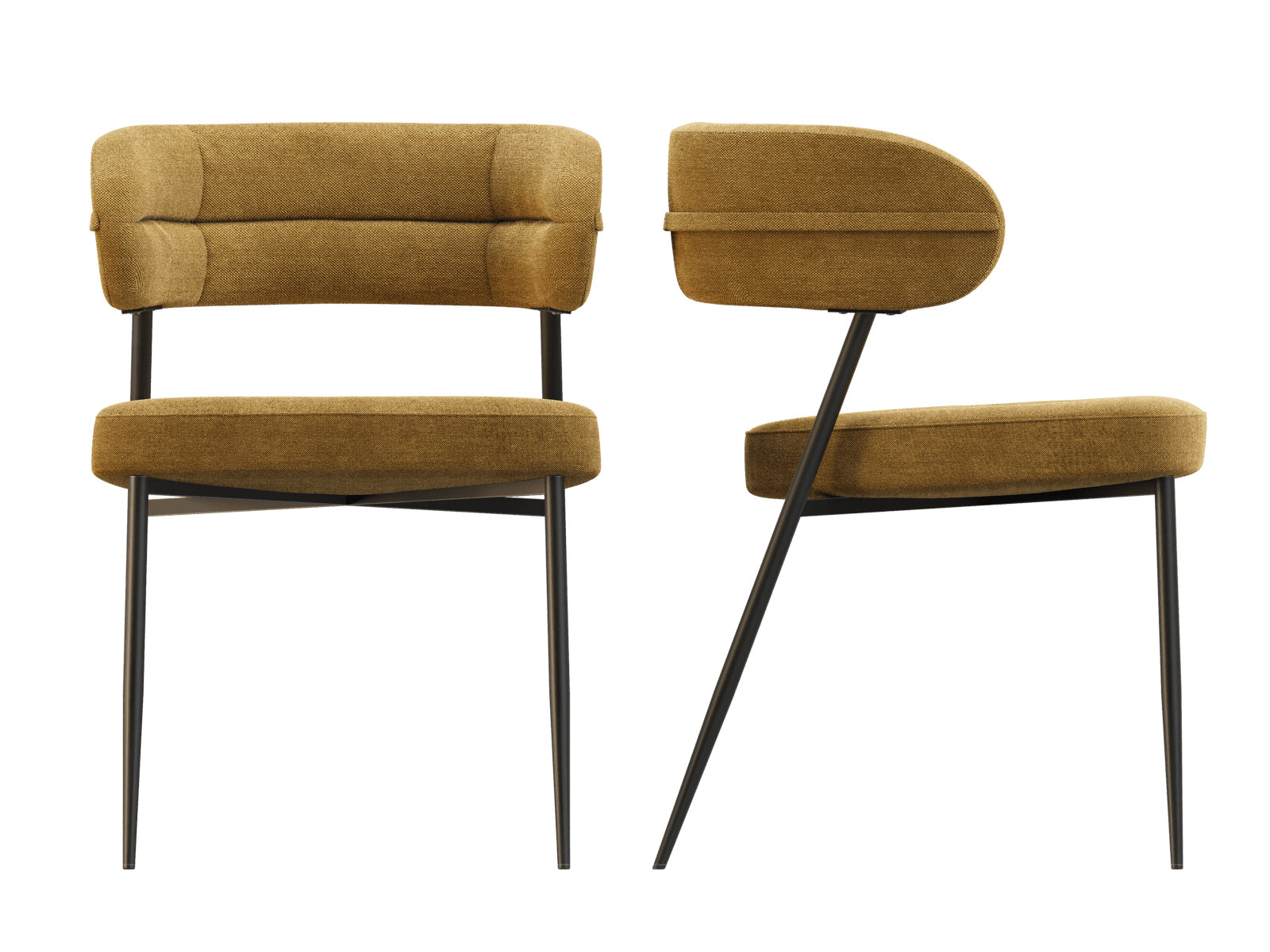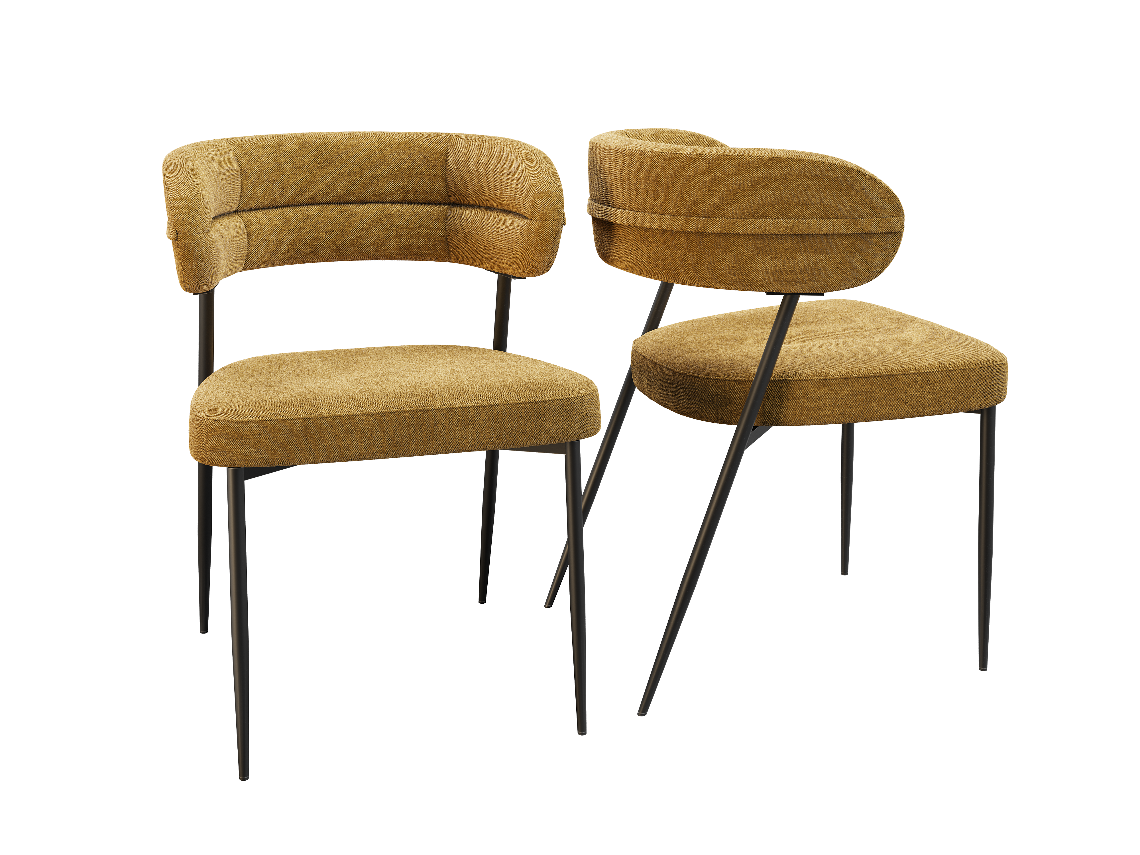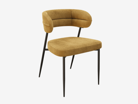 Dimensions and details Net weight : 7 Kg Fabric composition : 100% Polyester Colour : Ochre Foam density : 25kg/m3 Seating height : 48 cm Total height : 79 cm Width : 57 cm Martindale : 60 000 Seat material : Fabric Legs : Matt black lacquered steel Maximum supported weight : 120 kg Depth : 61 cm Sold by 2 pieces only Light resistant : 5/5 Pilling resistance : 5/5 Color fastness to rubbing : 5/5 Fabric : OEKO-TEX® Standard 100 NOT AVAILABLE FOR THE UK AND IRISH MARKET. INPI : 20244788
