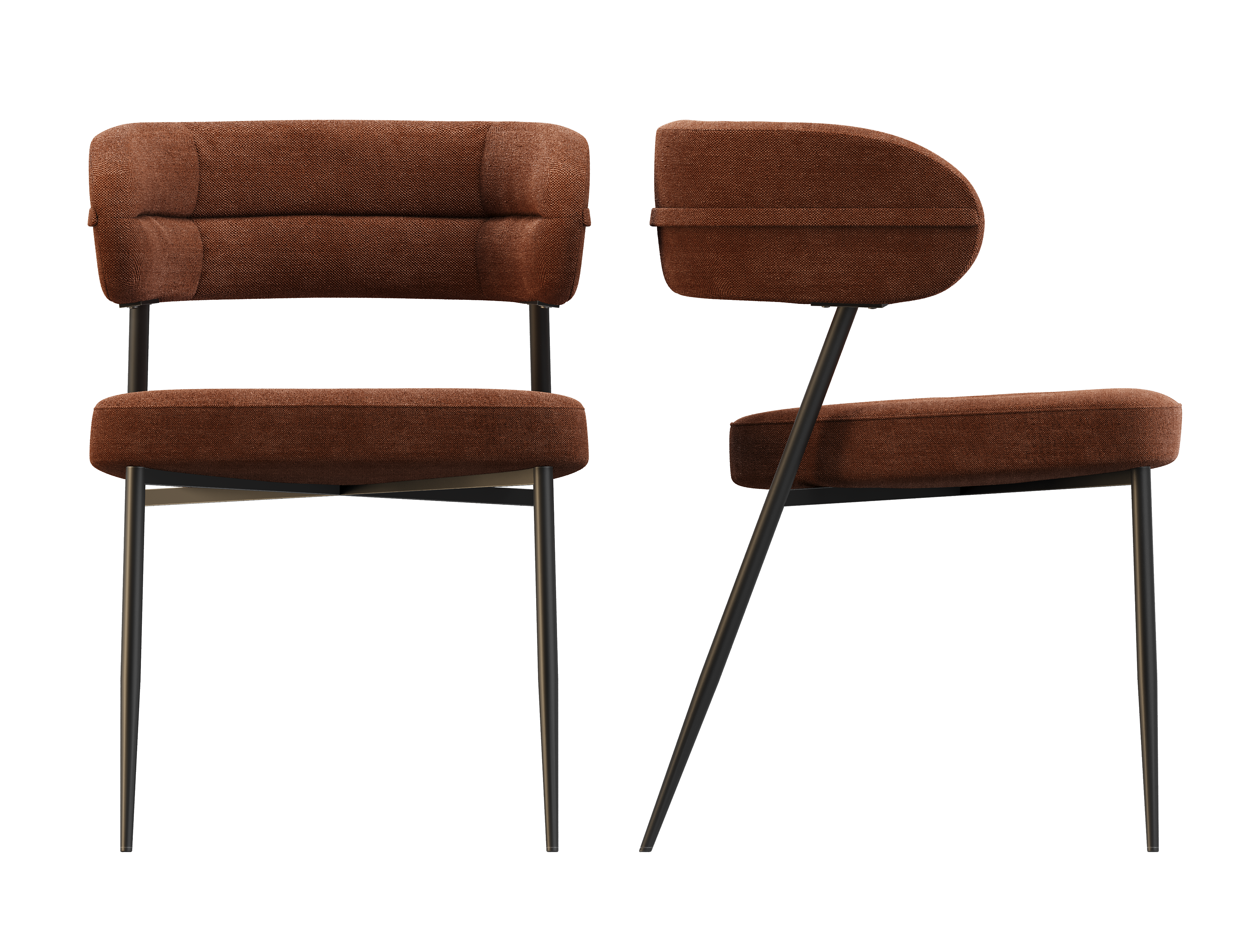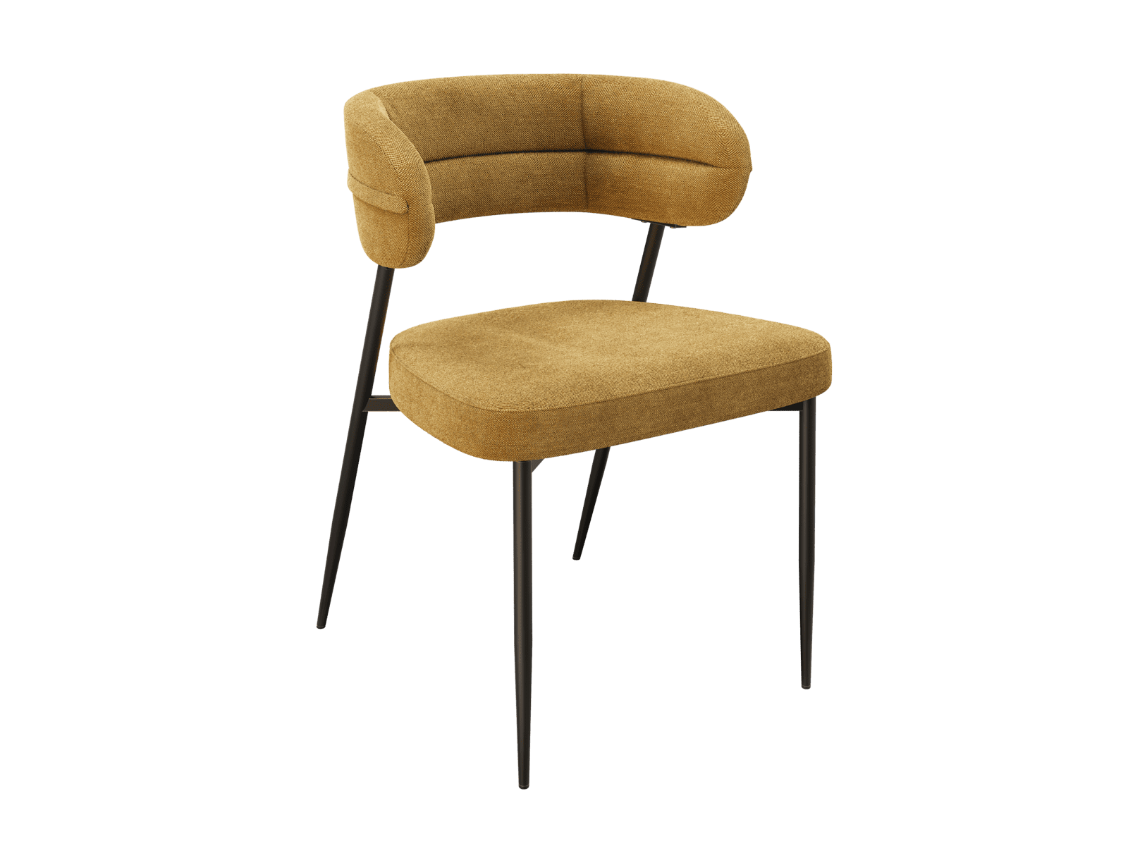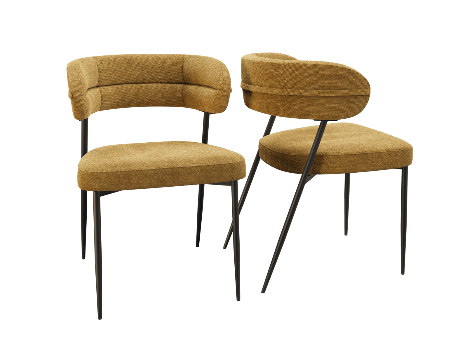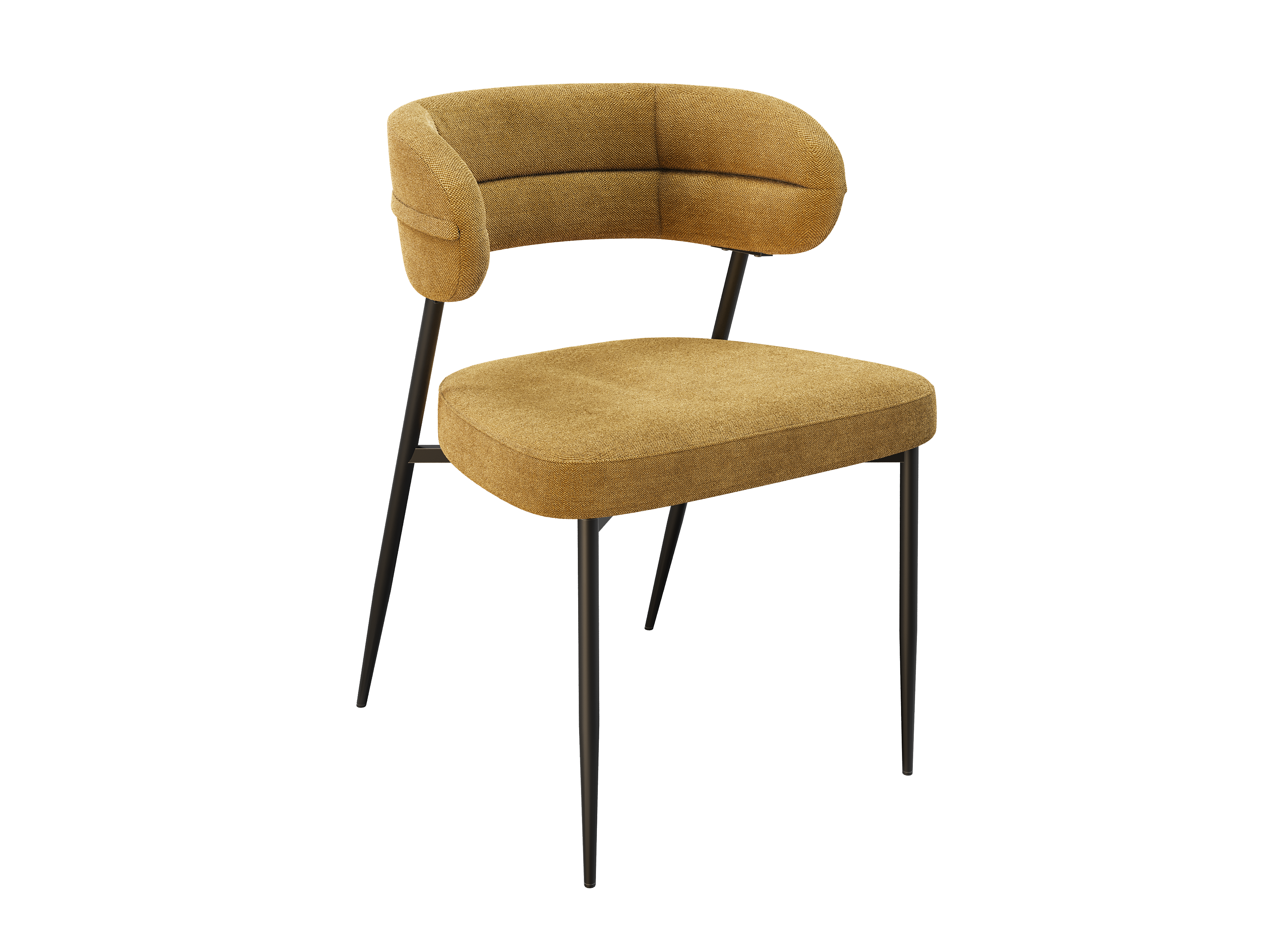 Dimensions and details Net weight : 7 Kg Fabric composition : 100% Polyester Colour : Ochre Foam density : 25kg/m3 Seating height : 48 cm Total height : 79 cm Width : 57 cm Martindale : 60 000 Seat material : Fabric Legs : Matt black lacquered steel Maximum supported weight : 120 kg Depth : 61 cm Sold by 2 pieces only Light resistant : 5/5 Pilling resistance : 5/5 Color fastness to rubbing : 5/5 Fabric : OEKO-TEX® Standard 100 NOT AVAILABLE FOR THE UK AND IRISH MARKET. INPI : 20244788