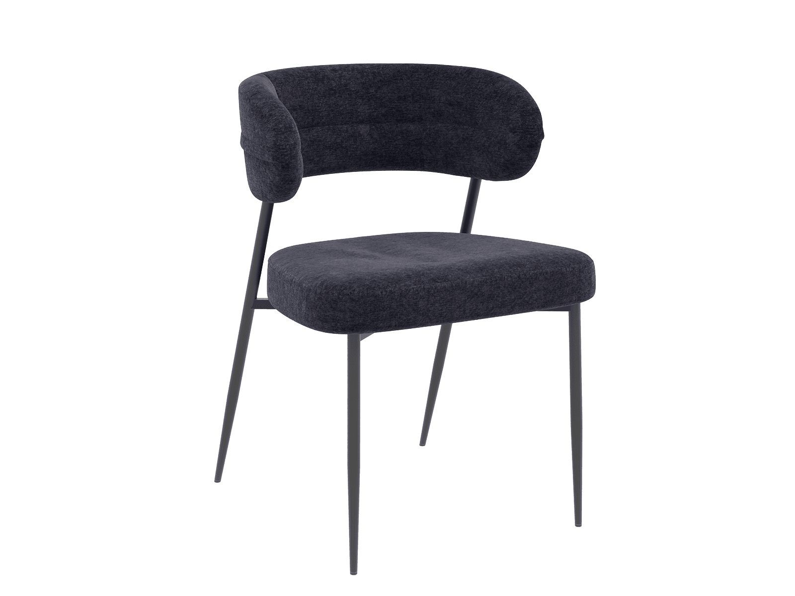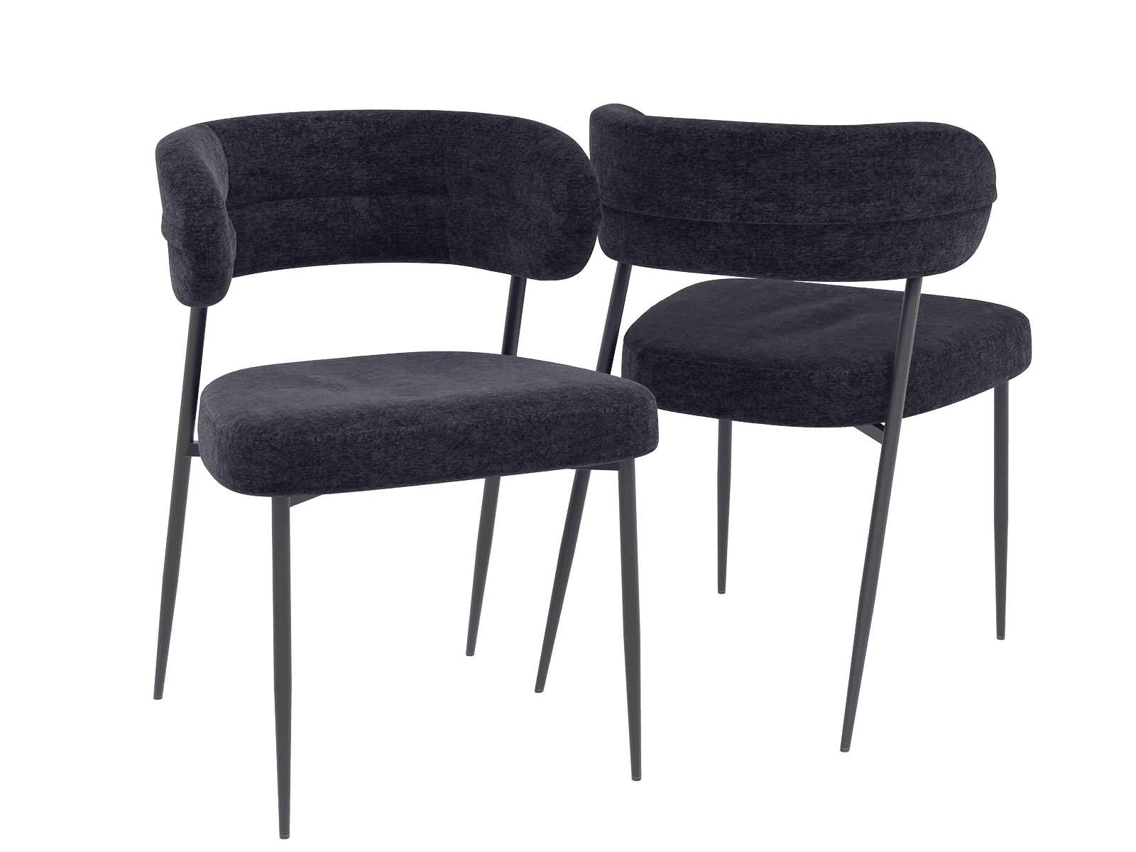 Dimensions and details Net weight : 7 Kg Fabric composition : 100% Polyester Fabric Colour : Night Foam density : 28kg/m3 Seating height : 48 cm Total height : 79 cm Width : 57 cm Martindale Fabric : 80 000 Legs : Matt black lacquered steel Maximum supported weight : 120 kg Depth : 61 cm Seating comfort type : firm Backrest comfort type : firm Sold by 2 pieces only Light resistant : > 5 Pilling resistance : 4-5 Water-repellent fabric : Complies with international standard ISO 4920:2012 (spray test), level 4-5 NOT AVAILABLE FOR THE UK AND IRISH MARKET.