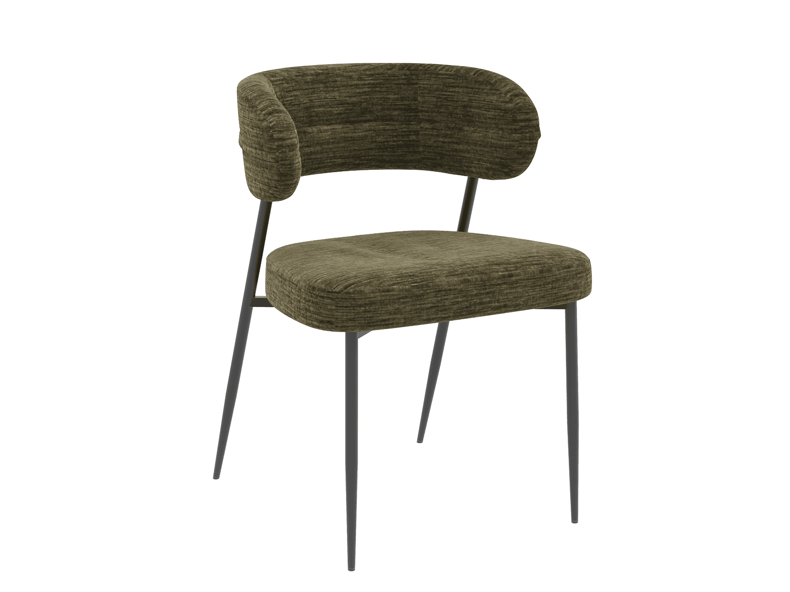 Dimensions and details Net weight : 7 Kg Fabric composition : 100% Polyester Fabric Colour : Olive Foam density : 28kg/m3 Seating height : 48 cm Total height : 79 cm Width : 57 cm Martindale Fabric : 80 000 Legs : Matt black lacquered steel Maximum supported weight : 120 kg Depth : 61 cm Seating comfort type : firm Backrest comfort type : firm Sold by 2 pieces only Light resistant : > 5 Pilling resistance : 4-5 Water-repellent fabric : Complies with international standard ISO 4920:2012 (spray test), level 4-5 NOT AVAILABLE FOR THE UK AND IRISH MARKET.