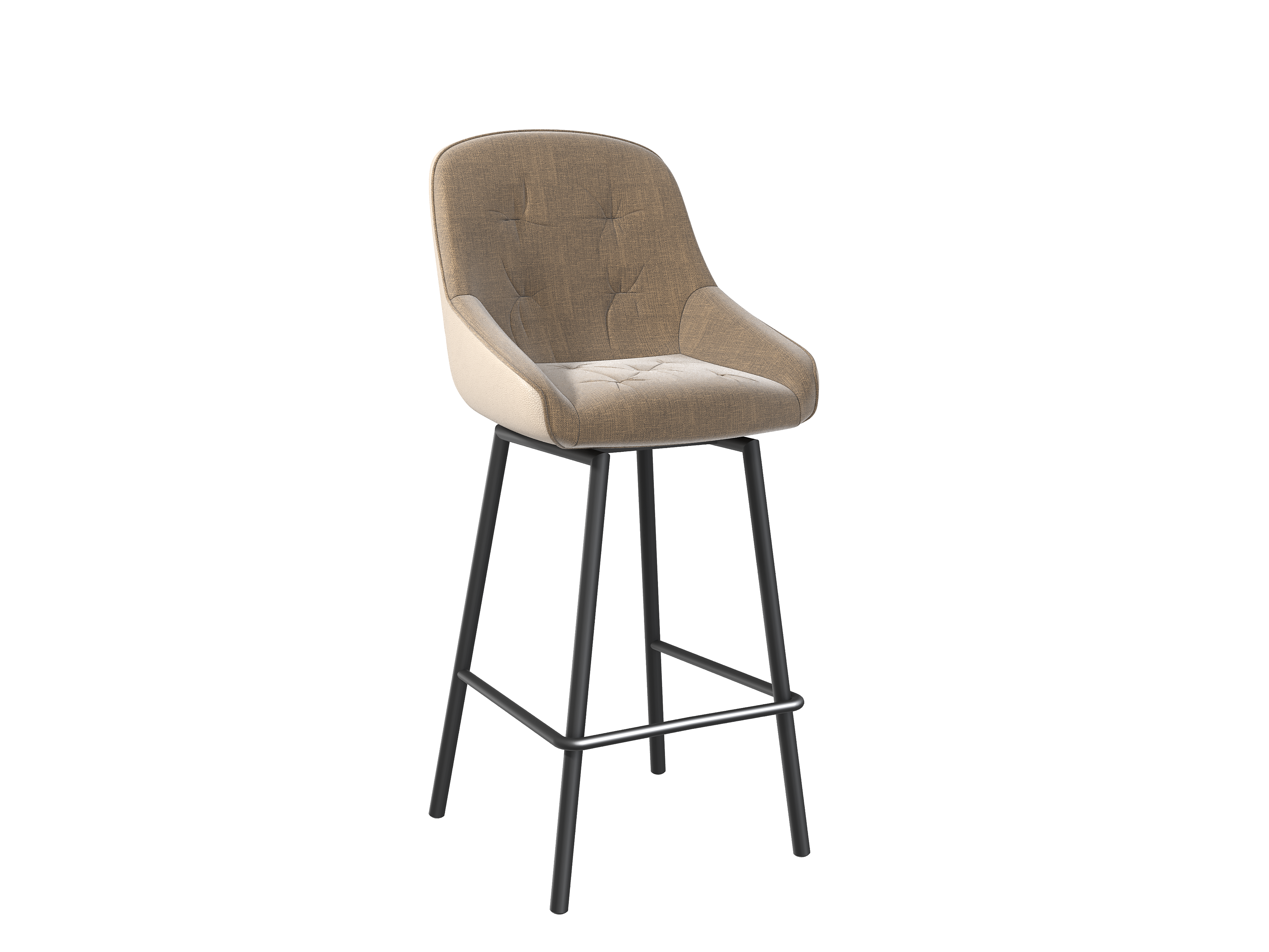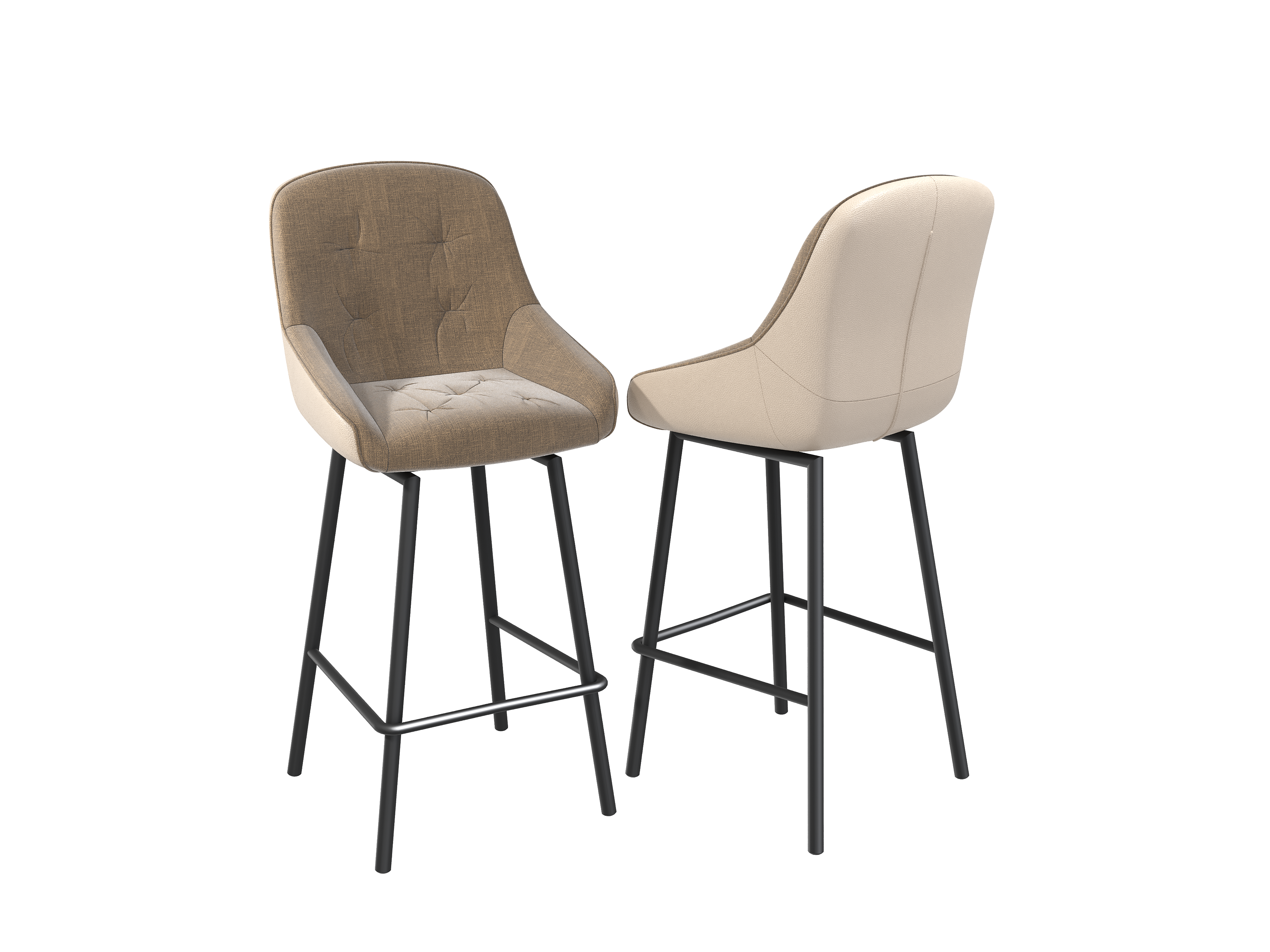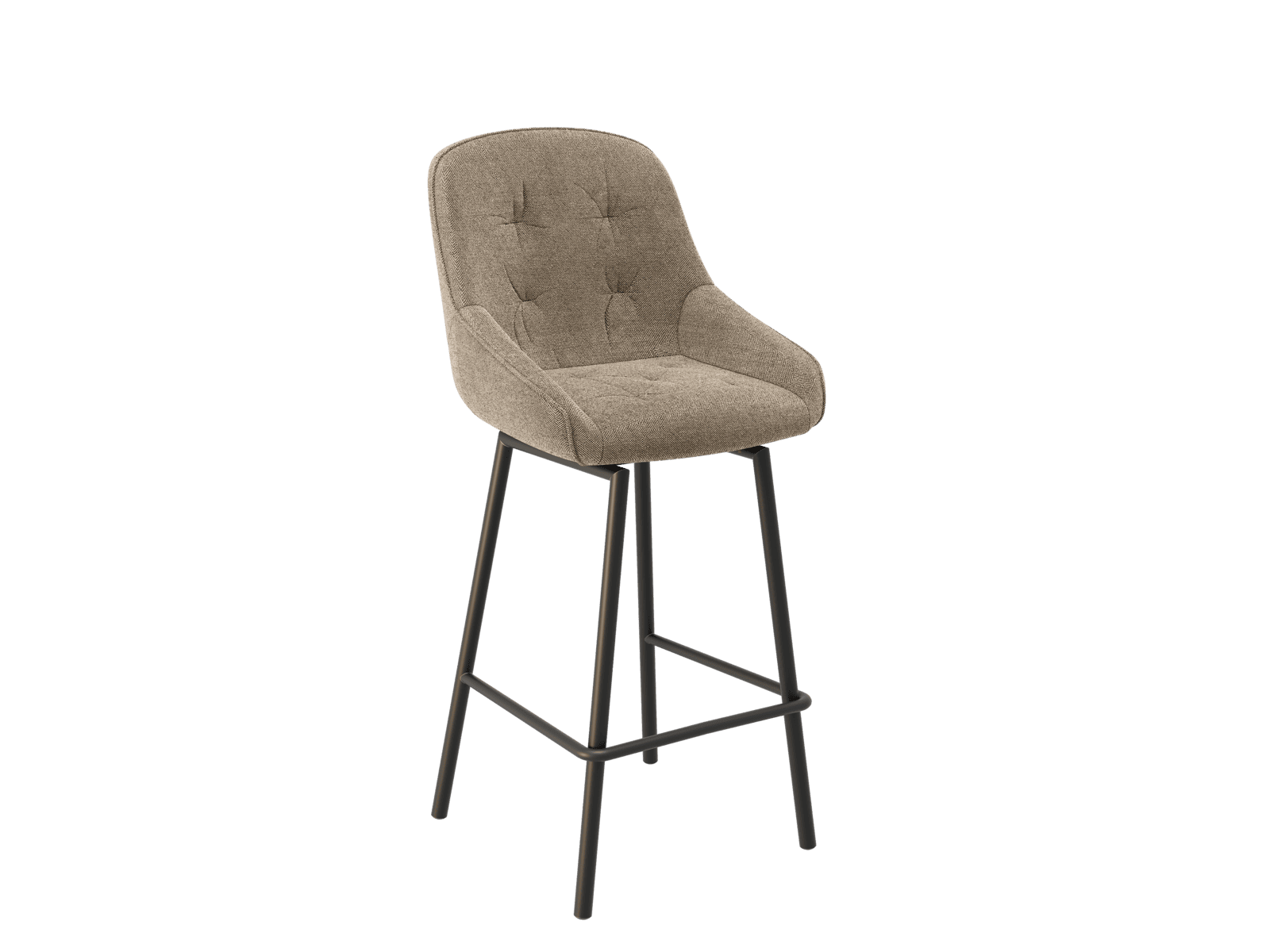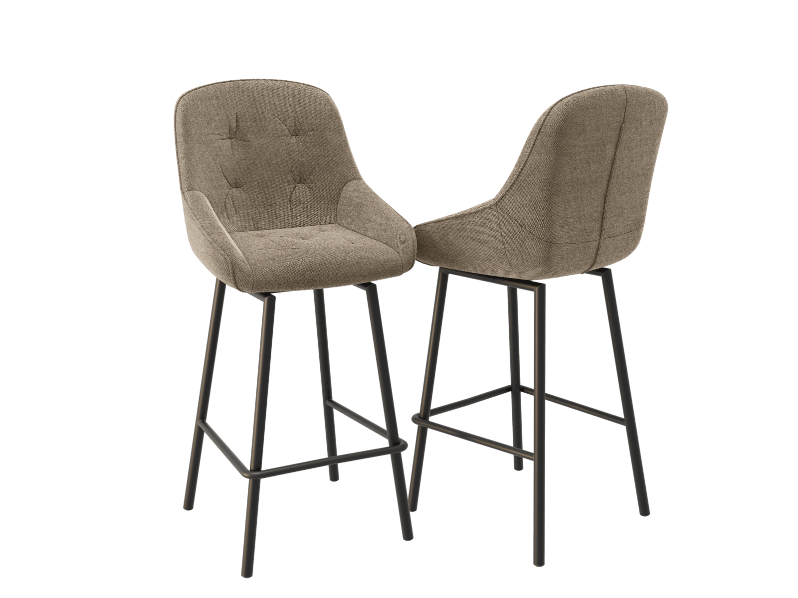 Dimensions and details Net weight : 8,4 Kg Seat : Pivots 180° Fabric composition : 100% Polyester Colour : Beige Foam density : 25kg/m3 Height : 100 cm Seating height : 65 cm Width : 45 cm Martindale Fabric : 60 000 Legs : Matt black lacquered steel Maximum supported weight : 120 kg Depth : 45 cm Sold by 2 pieces only Light resistant : 5/5 Pilling resistance : 5/5 Color fastness to rubbing : 5/5 Fabric : OEKO-TEX® Standard 100 NOT AVAILABLE FOR THE UK AND IRISH MARKET. INPI : 20240816