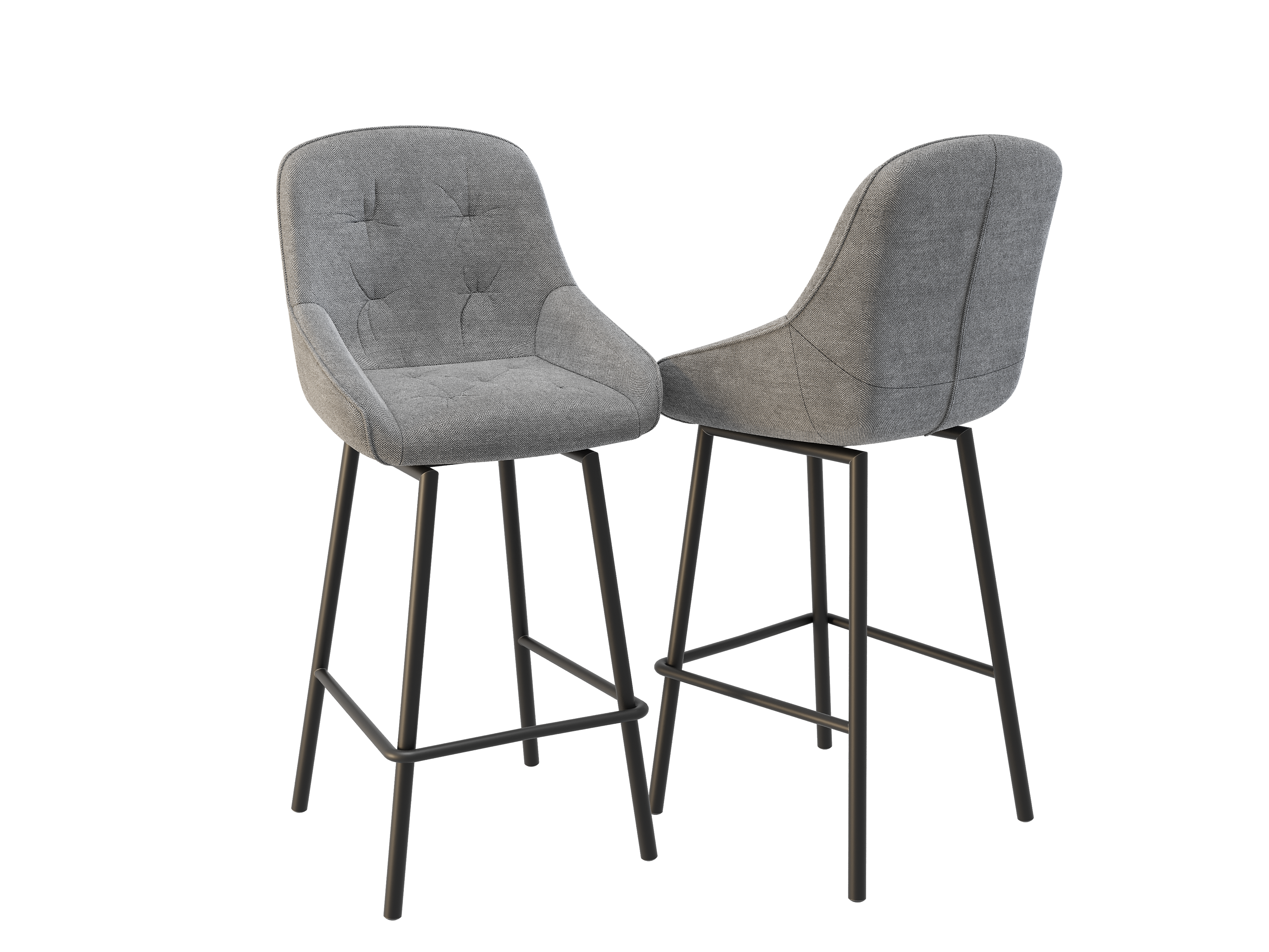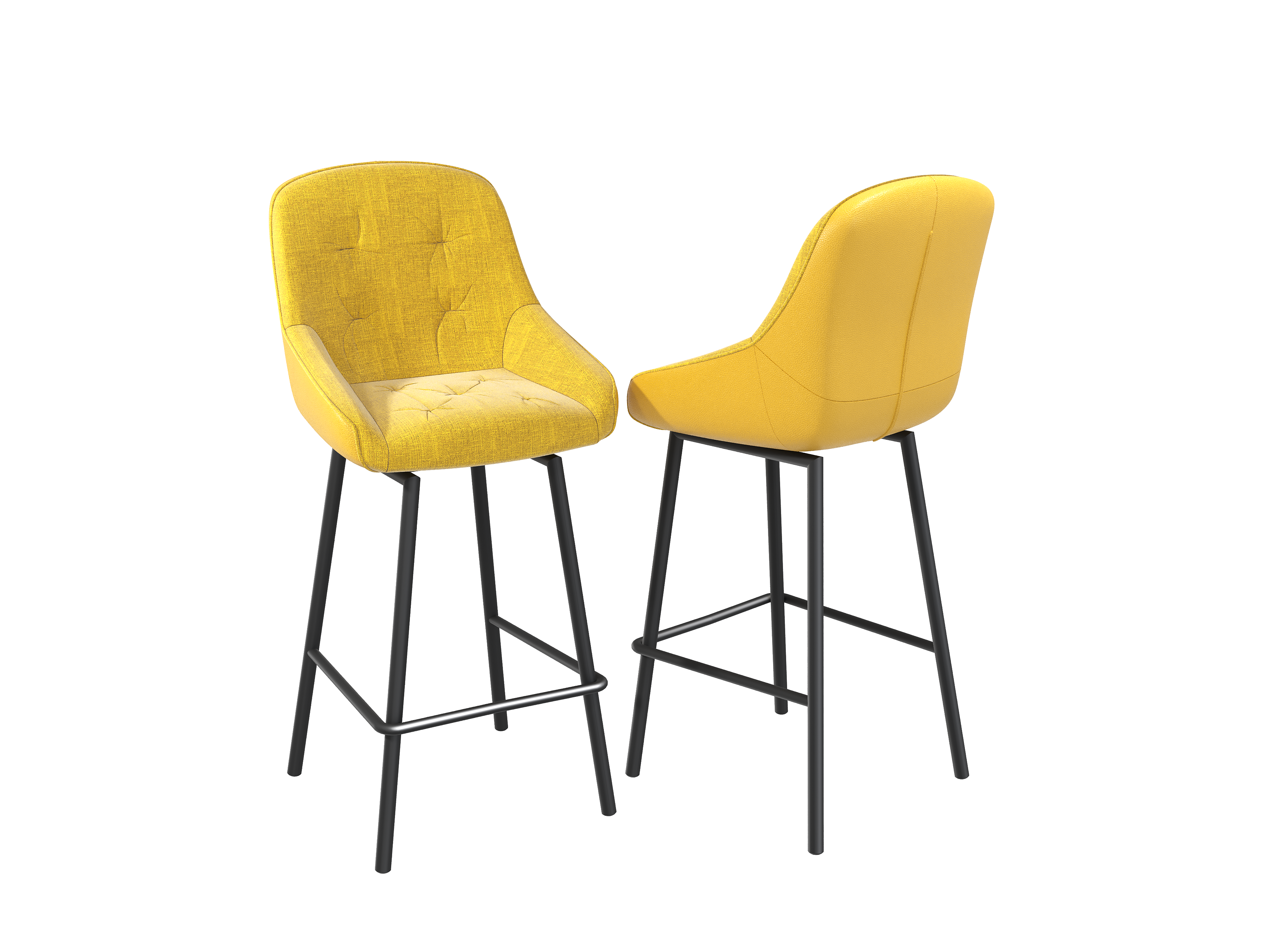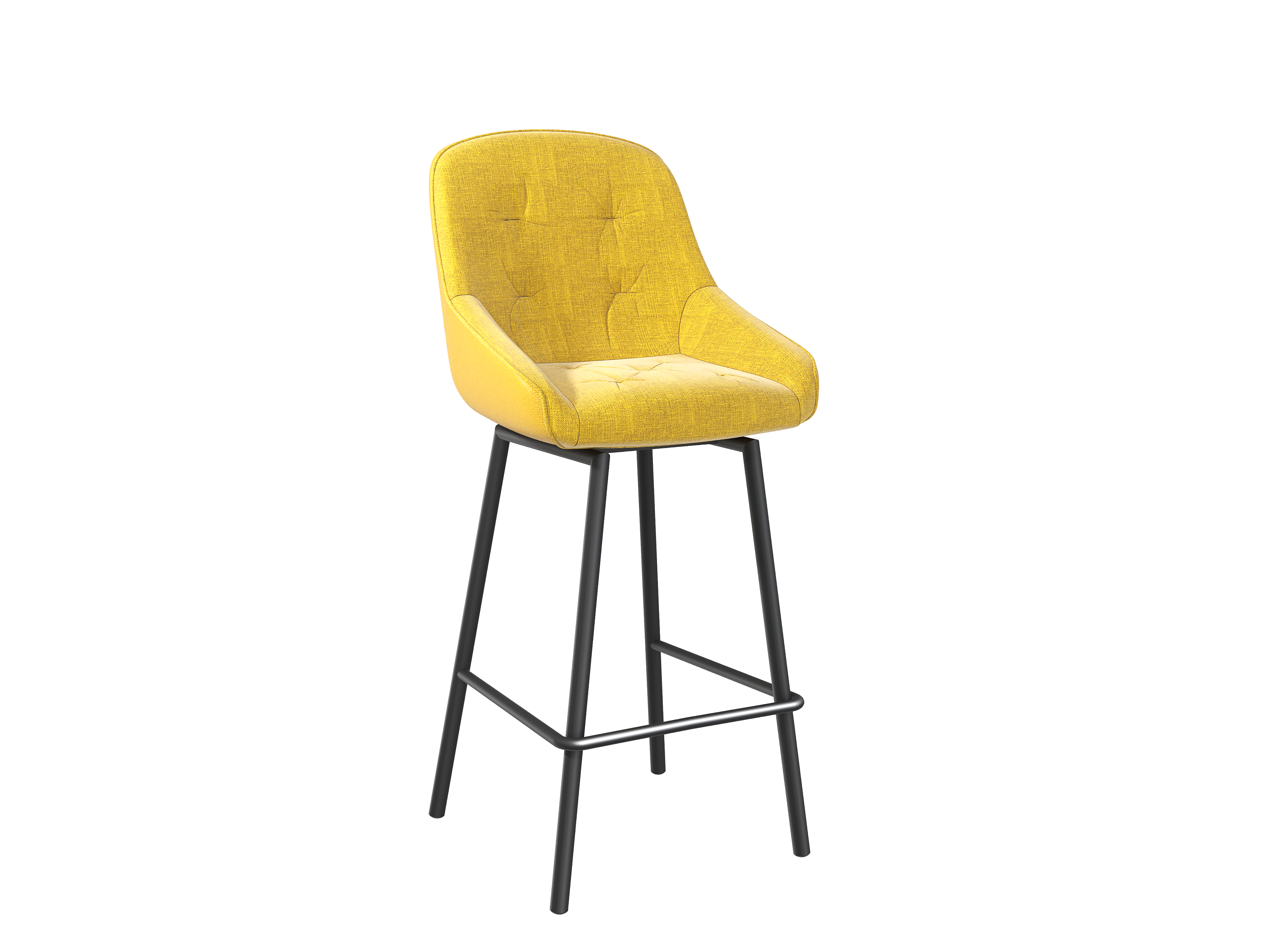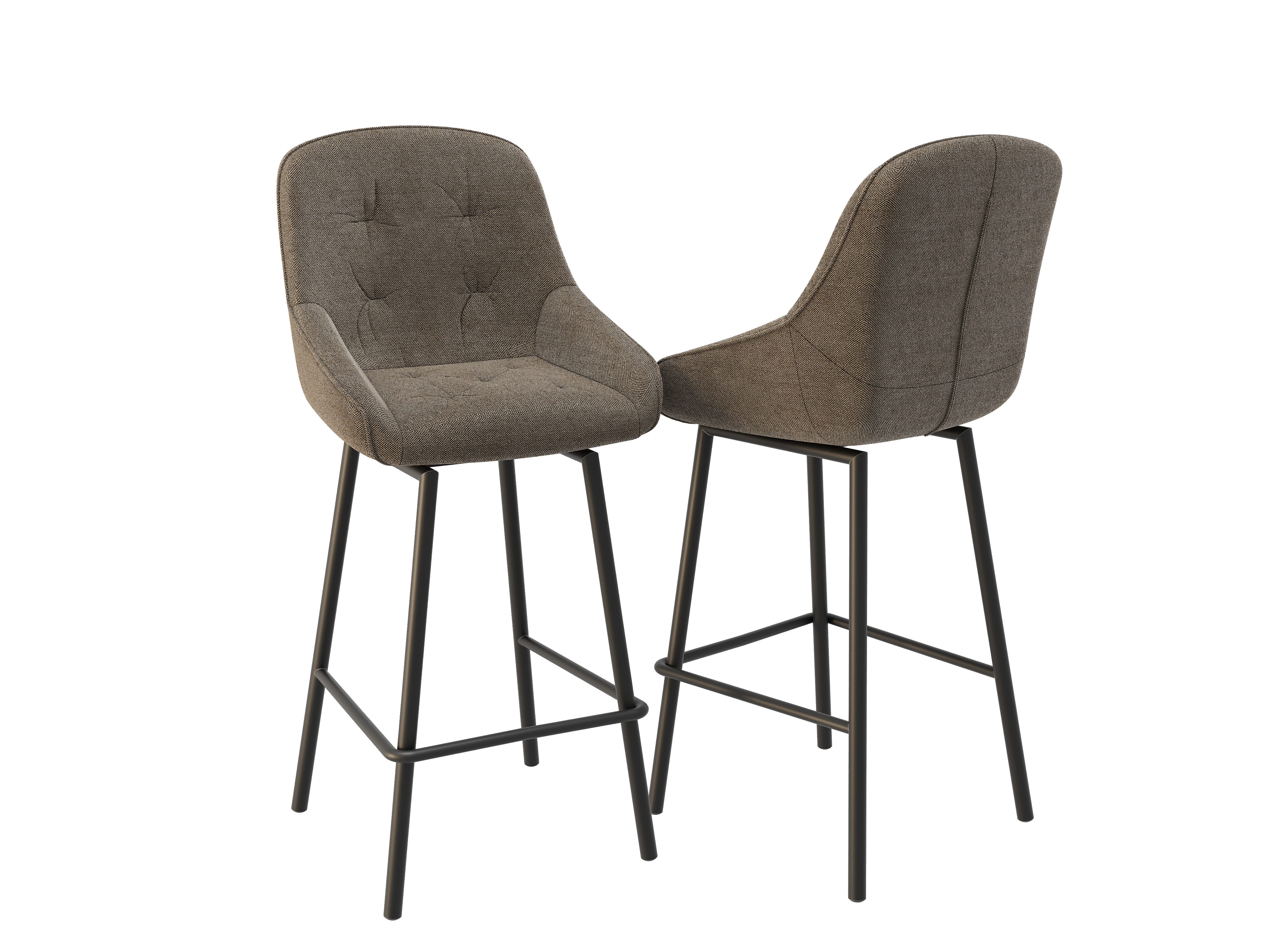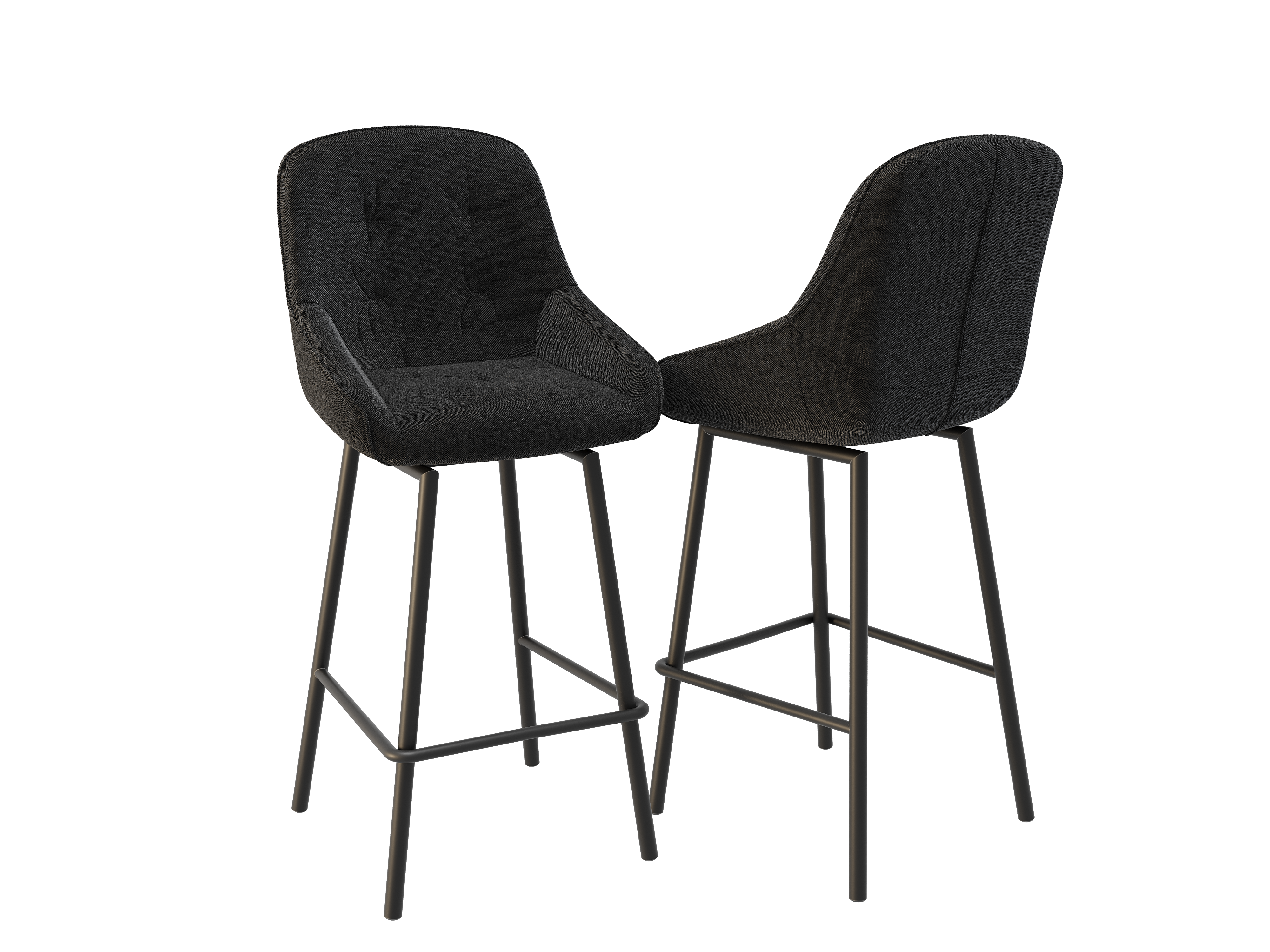 Dimensions and details Net weight : 8,4 Kg Seat : Pivots 180° Fabric composition : 100% Polyester Colour : Beige Foam density : 25kg/m3 Height : 100 cm Seating height : 65 cm Width : 45 cm Martindale Fabric : 60 000 Legs : Matt black lacquered steel Maximum supported weight : 120 kg Depth : 45 cm Sold by 2 pieces only Light resistant : 5/5 Pilling resistance : 5/5 Color fastness to rubbing : 5/5 Fabric : OEKO-TEX® Standard 100 NOT AVAILABLE FOR THE UK AND IRISH MARKET. INPI : 20240816