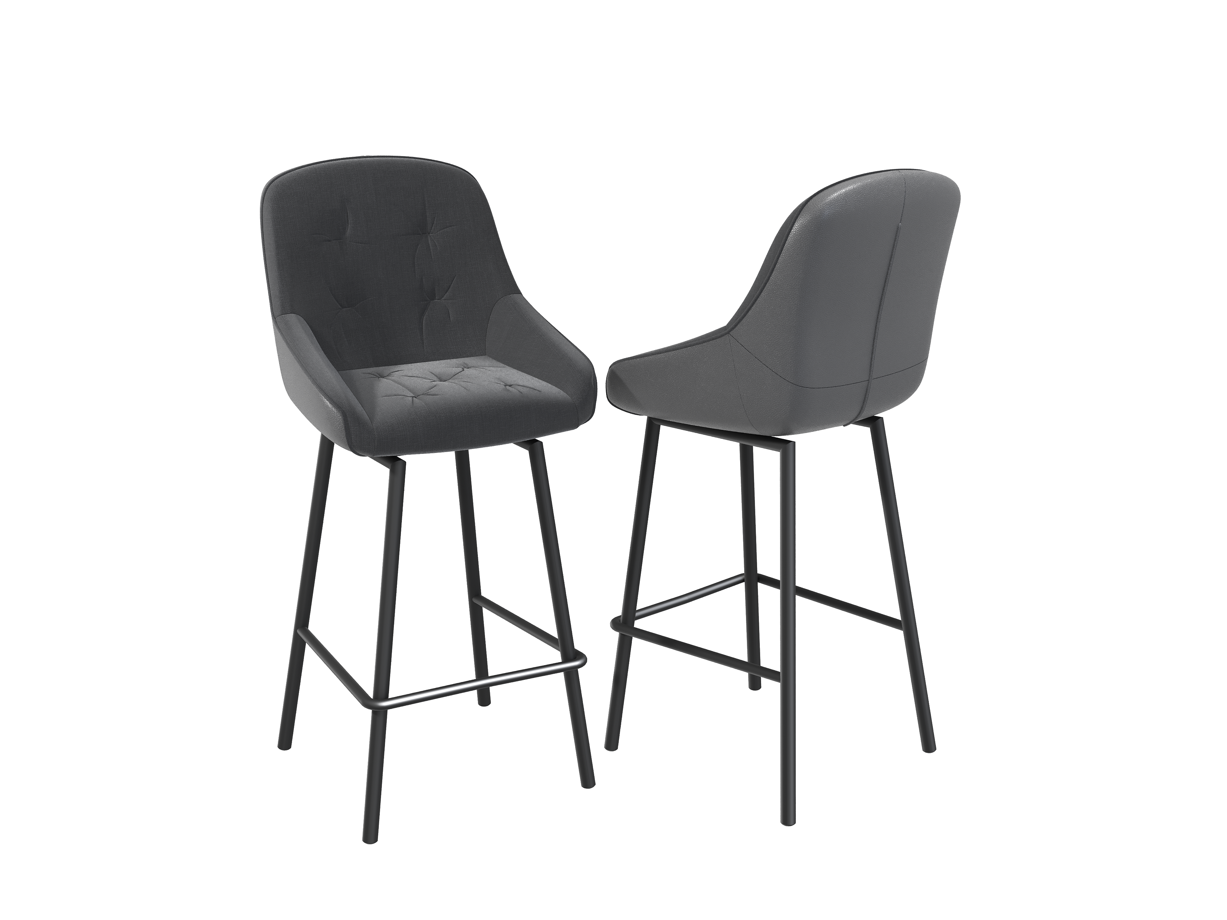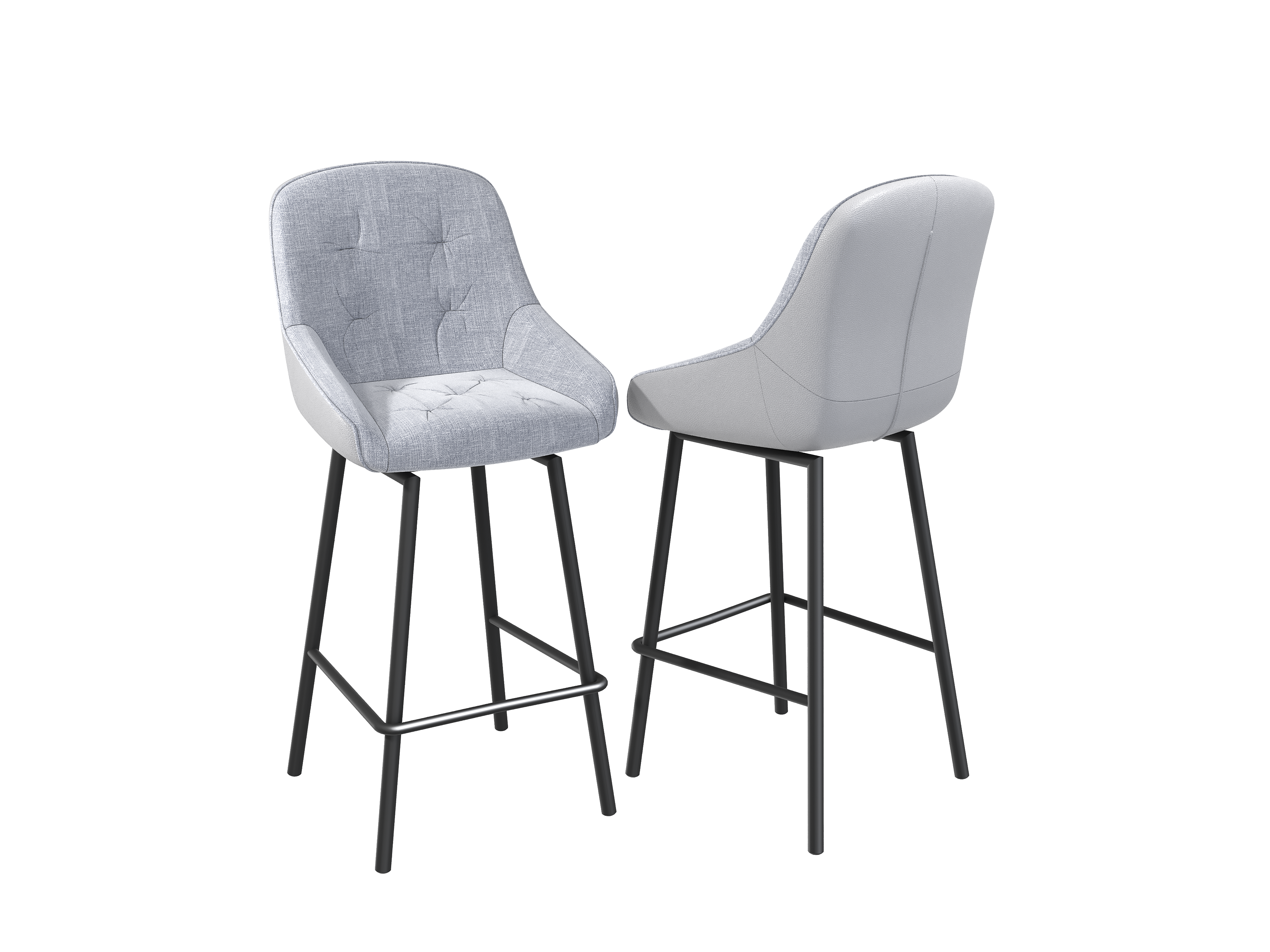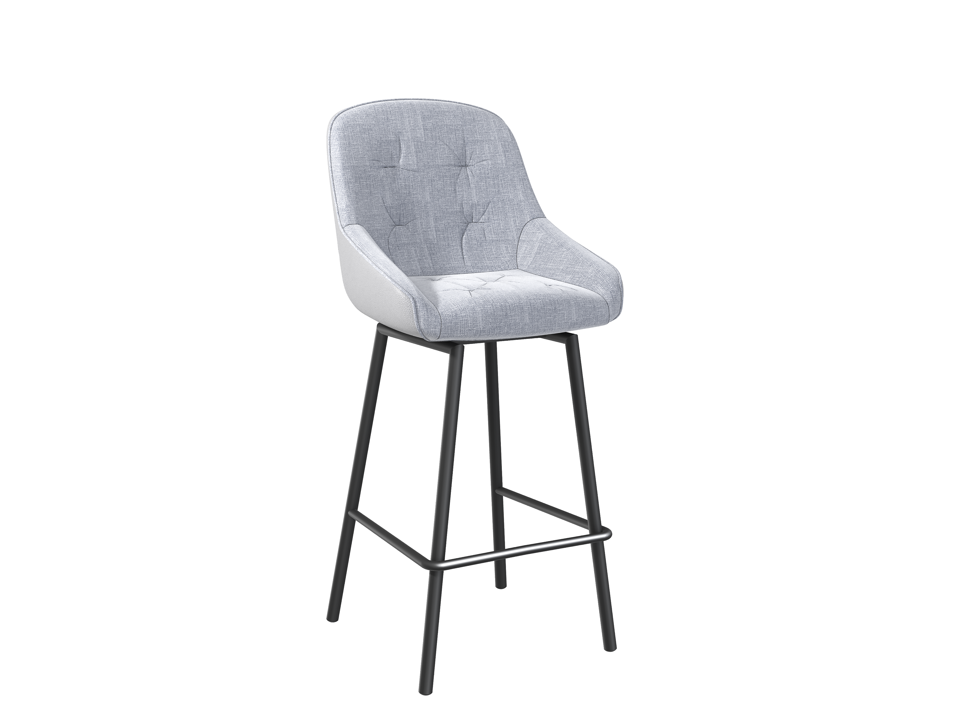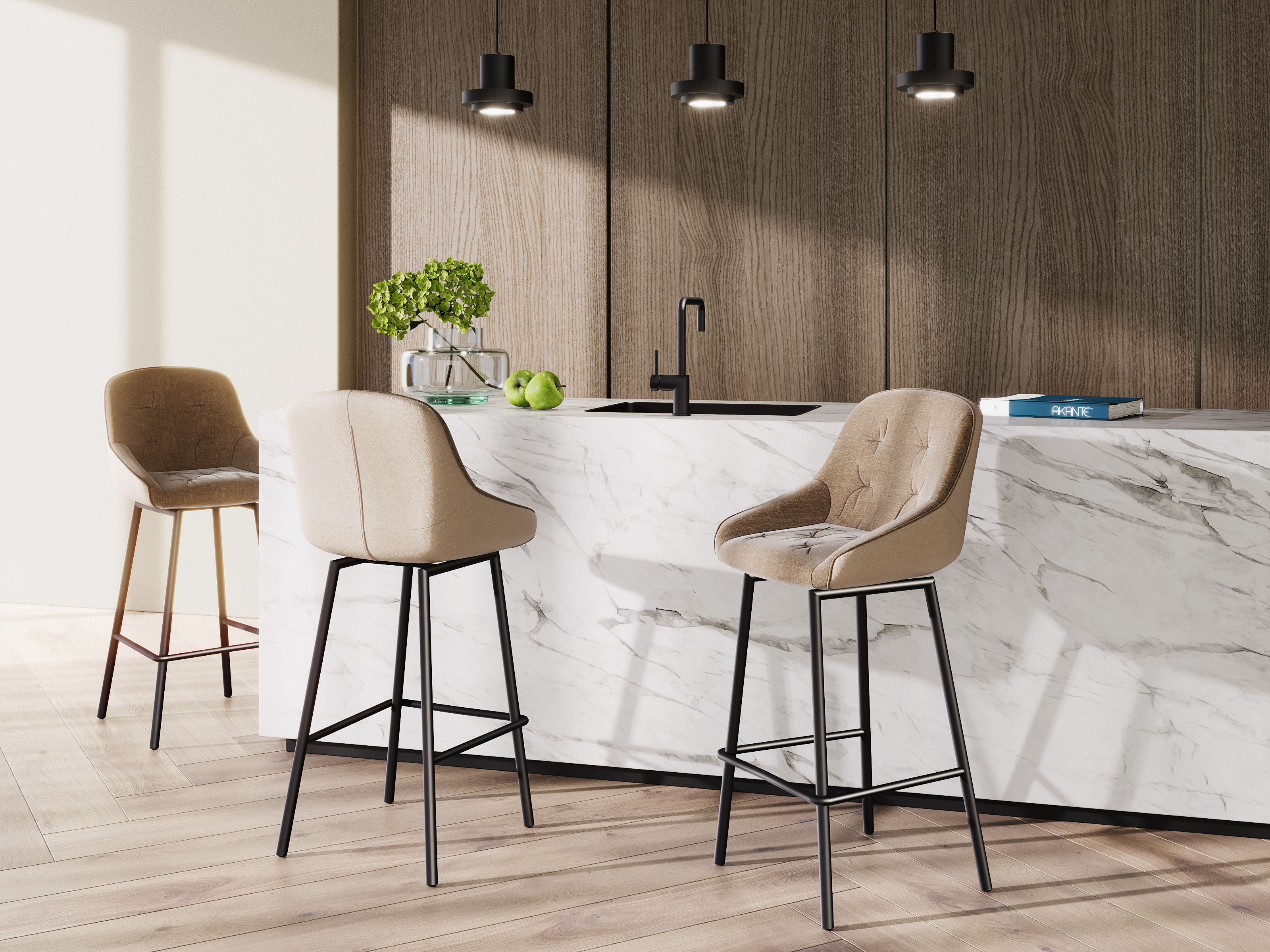 Dimensions and details Net weight : 8,4 Kg Seat : Pivots 180° Fabric composition : 100% Polyester Colour : Beige Foam density : 25kg/m3 Height : 100 cm Seating height : 65 cm Width : 45 cm Martindale Fabric : 60 000 Legs : Matt black lacquered steel Maximum supported weight : 120 kg Depth : 45 cm Sold by 2 pieces only Light resistant : 5/5 Pilling resistance : 5/5 Color fastness to rubbing : 5/5 Fabric : OEKO-TEX® Standard 100 NOT AVAILABLE FOR THE UK AND IRISH MARKET. INPI : 20240816