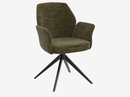 Dimensions and details Net weight : 11 Kg Seat : Pivots 180° Fabric composition : 100% Polyester Fabric Colour : Olive Foam density : 28kg/m3 Armrest Height : 66 cm Seating height : 50 cm Total height : 89 cm Width : 50 cm Martindale Fabric : 80 000 Legs : Matt black lacquered steel Maximum supported weight : 120 kg Depth : 64,5 cm Seating comfort type : firm Backrest comfort type : firm Sold by 2 pieces only Light resistant : > 5 Pilling resistance : 4-5 Water-repellent fabric : Complies with international standard ISO 4920:2012 (spray test), level 4-5 NOT AVAILABLE FOR THE UK AND IRISH MARKET.