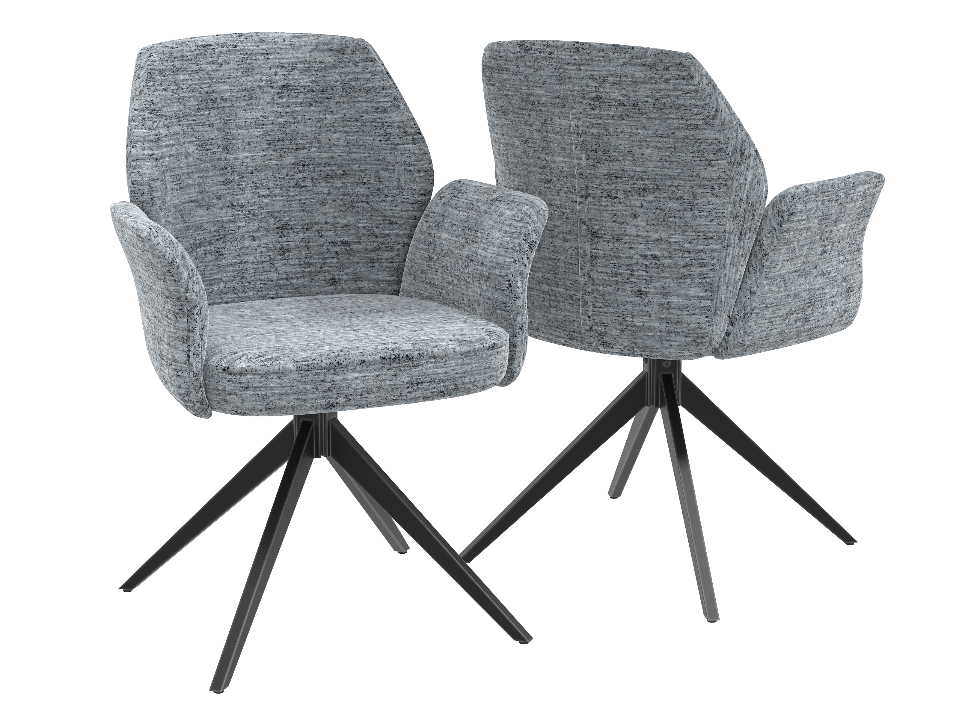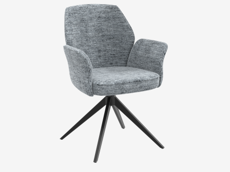 Dimensions and details Net weight : 11 Kg Seat : Pivots 180° Fabric composition : 100% Polyester Fabric Colour : Flint Foam density : 28kg/m3 Armrest Height : 66 cm Seating height : 50 cm Total height : 89 cm Width : 50 cm Martindale Fabric : 80 000 Legs : Matt black lacquered steel Maximum supported weight : 120 kg Depth : 64,5 cm Seating comfort type : firm Backrest comfort type : firm Sold by 2 pieces only Light resistant : > 5 Pilling resistance : 4-5 Water-repellent fabric : Complies with international standard ISO 4920:2012 (spray test), level 4-5 NOT AVAILABLE FOR THE UK AND IRISH MARKET.