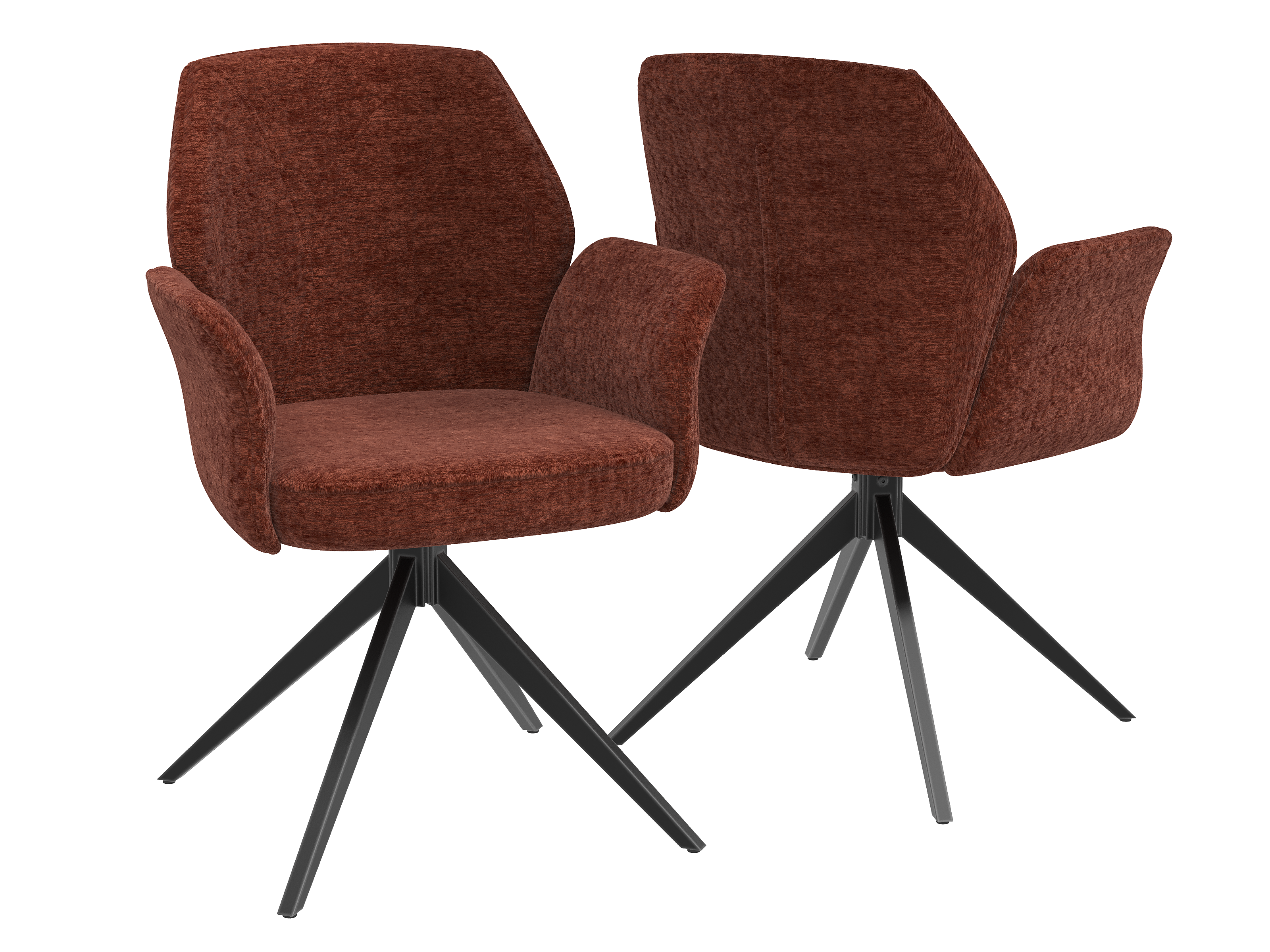 Dimensions and details Net weight : 11 Kg Seat : Pivots 180° Fabric composition : 100% Polyester Fabric Colour : Warm clay Foam density : 28kg/m3 Armrest Height : 66 cm Seating height : 50 cm Total height : 89 cm Width : 50 cm Martindale Fabric : 80 000 Legs : Matt black lacquered steel Maximum supported weight : 120 kg Depth : 64,5 cm Seating comfort type : firm Backrest comfort type : firm Sold by 2 pieces only Light resistant : > 5 Pilling resistance : 4-5 Water-repellent fabric : Complies with international standard ISO 4920:2012 (spray test), level 4-5 NOT AVAILABLE FOR THE UK AND IRISH MARKET.