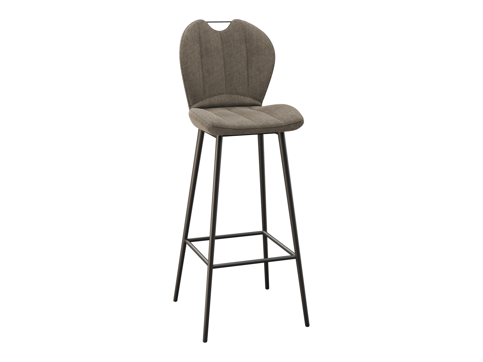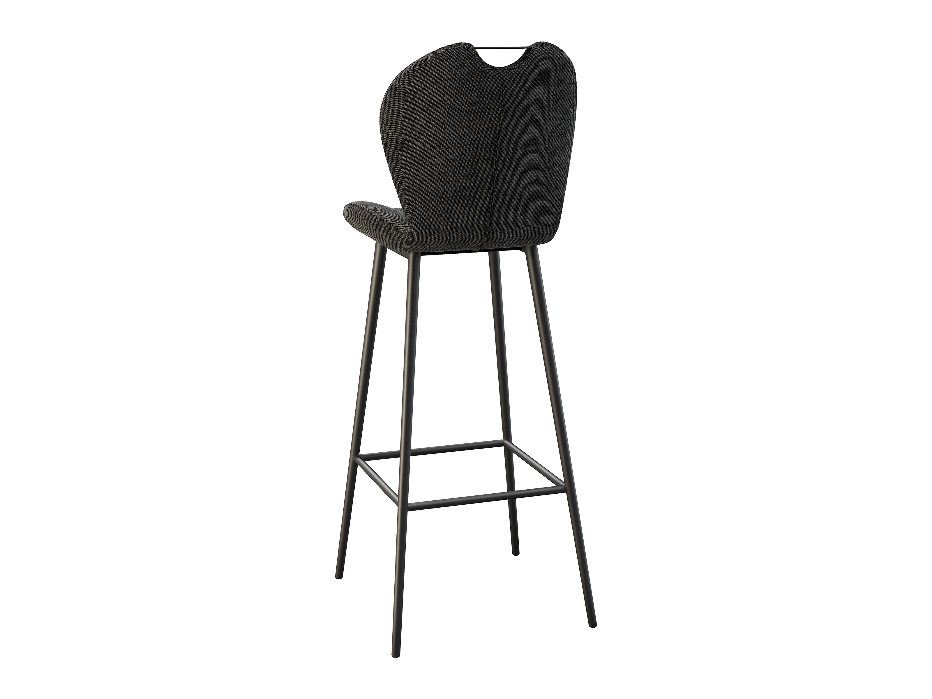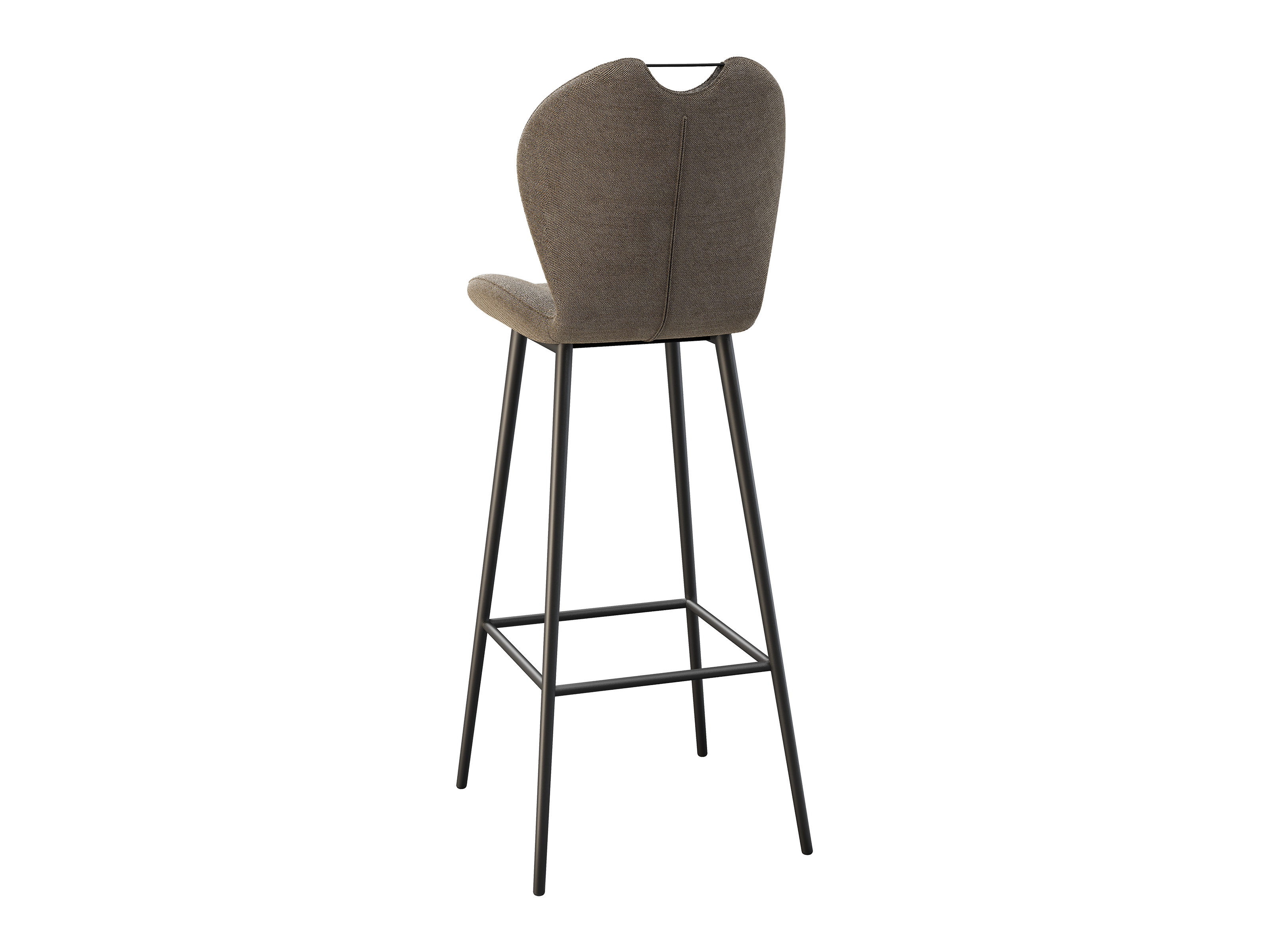 Dimensions and details Net weight : 8,4 Kg Seat : Pivots 180° Fabric composition : 100% Polyester Colour : Beige Foam density : 25kg/m3 Seating height : 75 cm Total height : 107 cm Width : 46 cm Martindale : 60 000 Seat material : Fabric Legs : Matt black lacquered steel Maximum supported weight : 120 kg Depth : 51,5 cm Sold by 2 pieces only Light resistant : 5/5 Pilling resistance : 5/5 Color fastness to rubbing : 5/5 Fabric : OEKO-TEX® Standard 100 INPI : 20244788