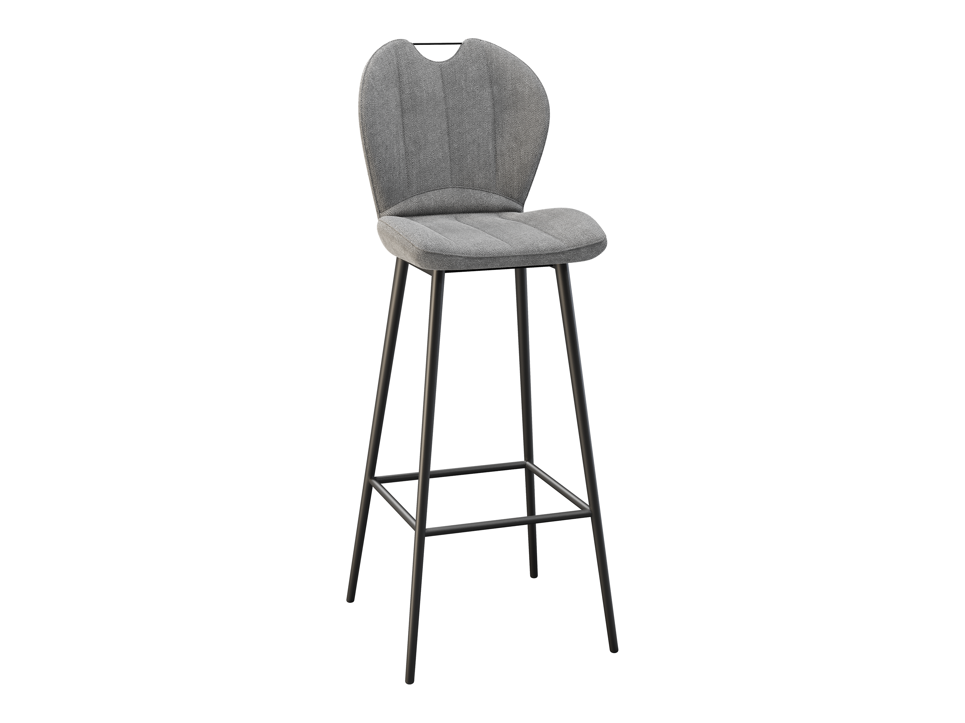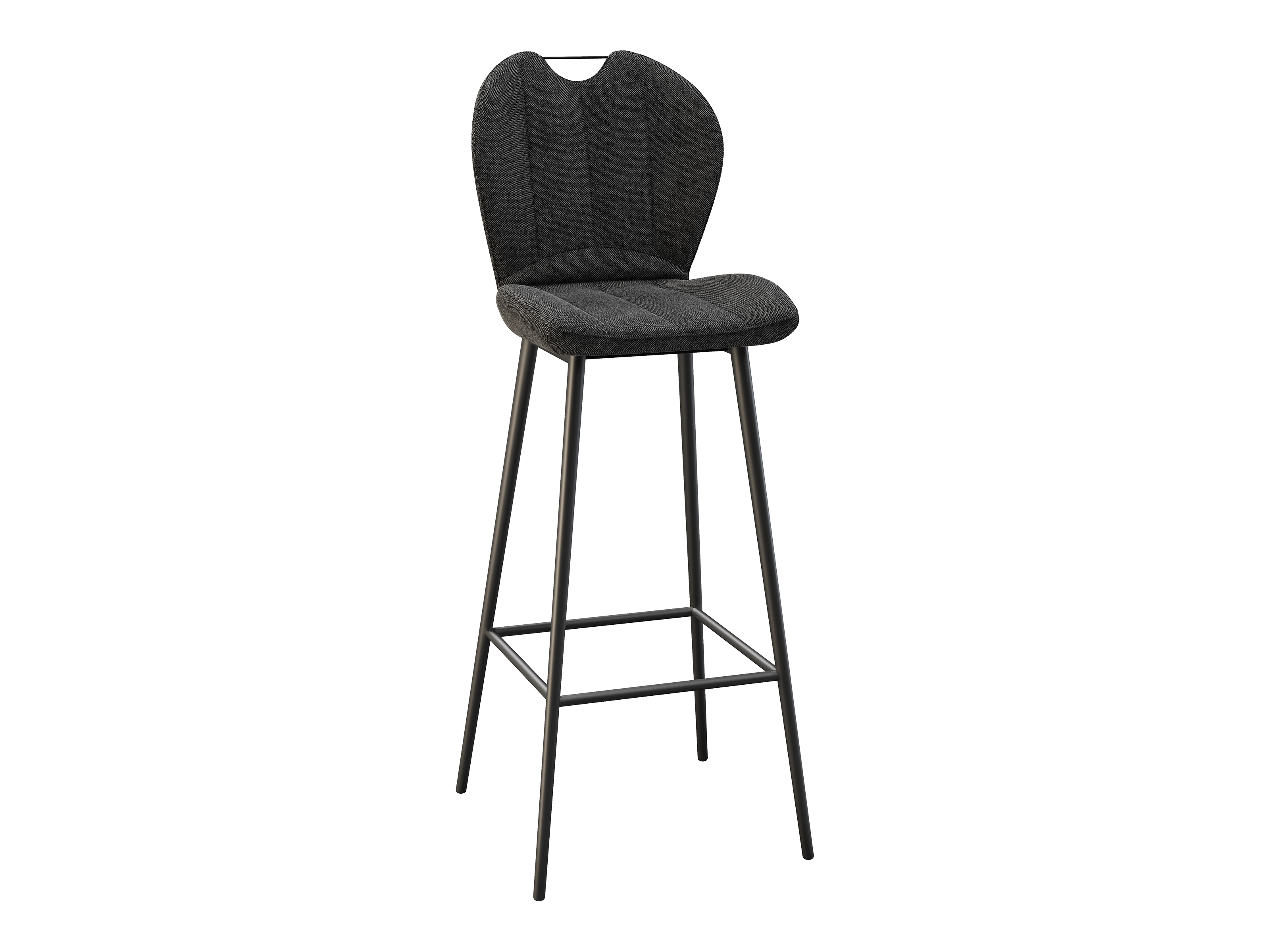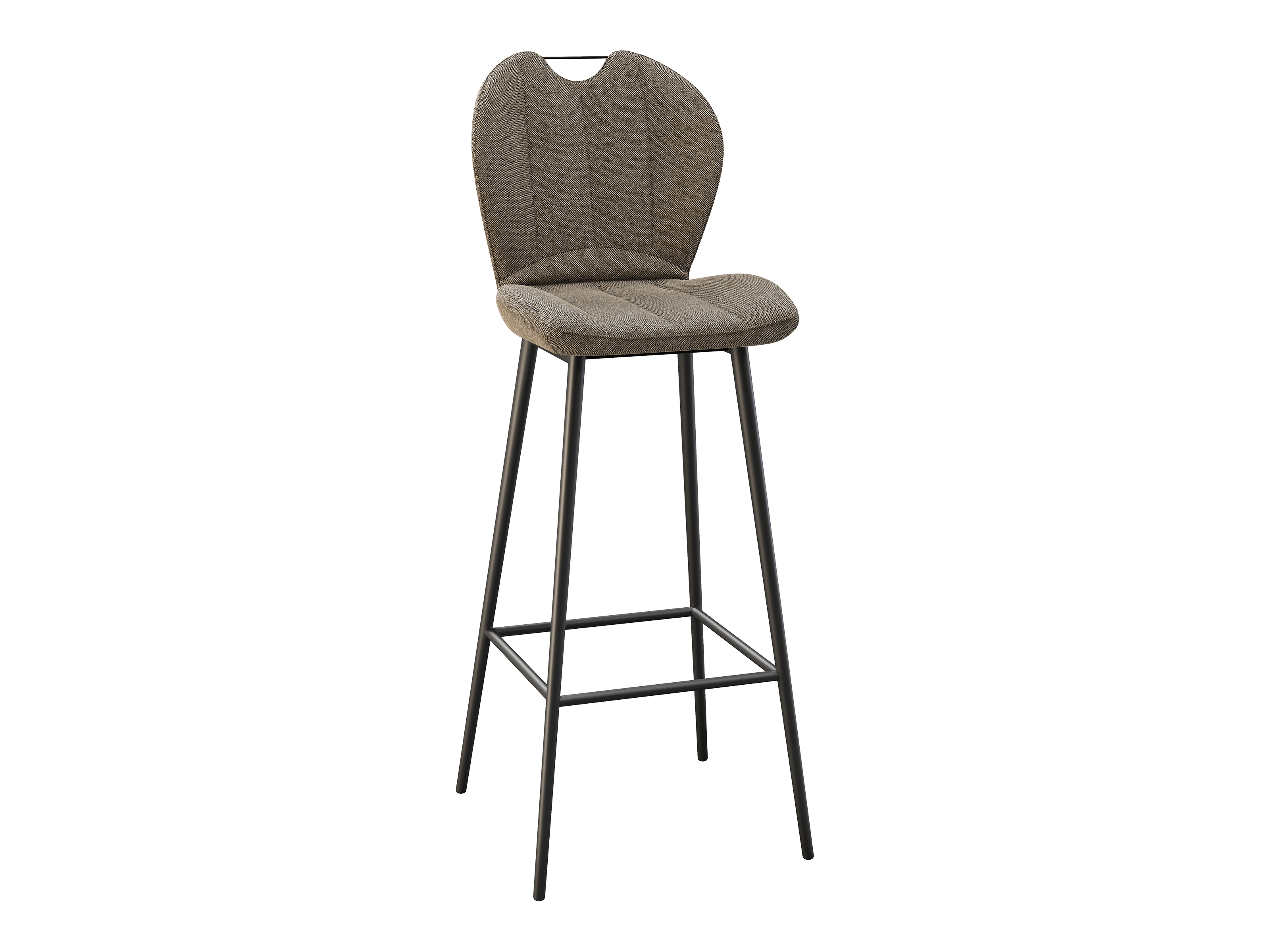 Dimensions and details Net weight : 8,4 Kg Seat : Pivots 180° Fabric composition : 100% Polyester Colour : Beige Foam density : 25kg/m3 Seating height : 75 cm Total height : 107 cm Width : 46 cm Martindale : 60 000 Seat material : Fabric Legs : Matt black lacquered steel Maximum supported weight : 120 kg Depth : 51,5 cm Sold by 2 pieces only Light resistant : 5/5 Pilling resistance : 5/5 Color fastness to rubbing : 5/5 Fabric : OEKO-TEX® Standard 100 INPI : 20244788