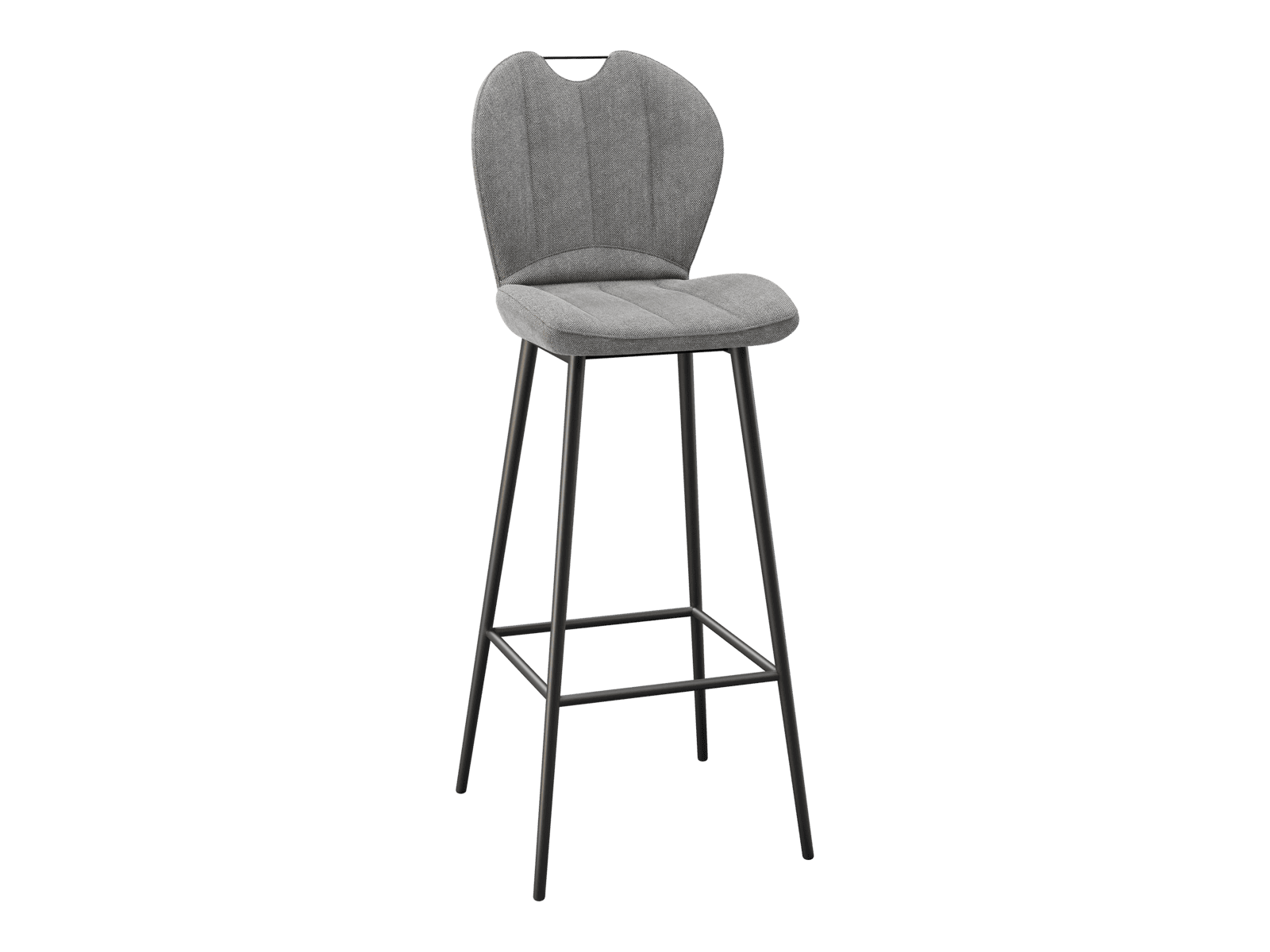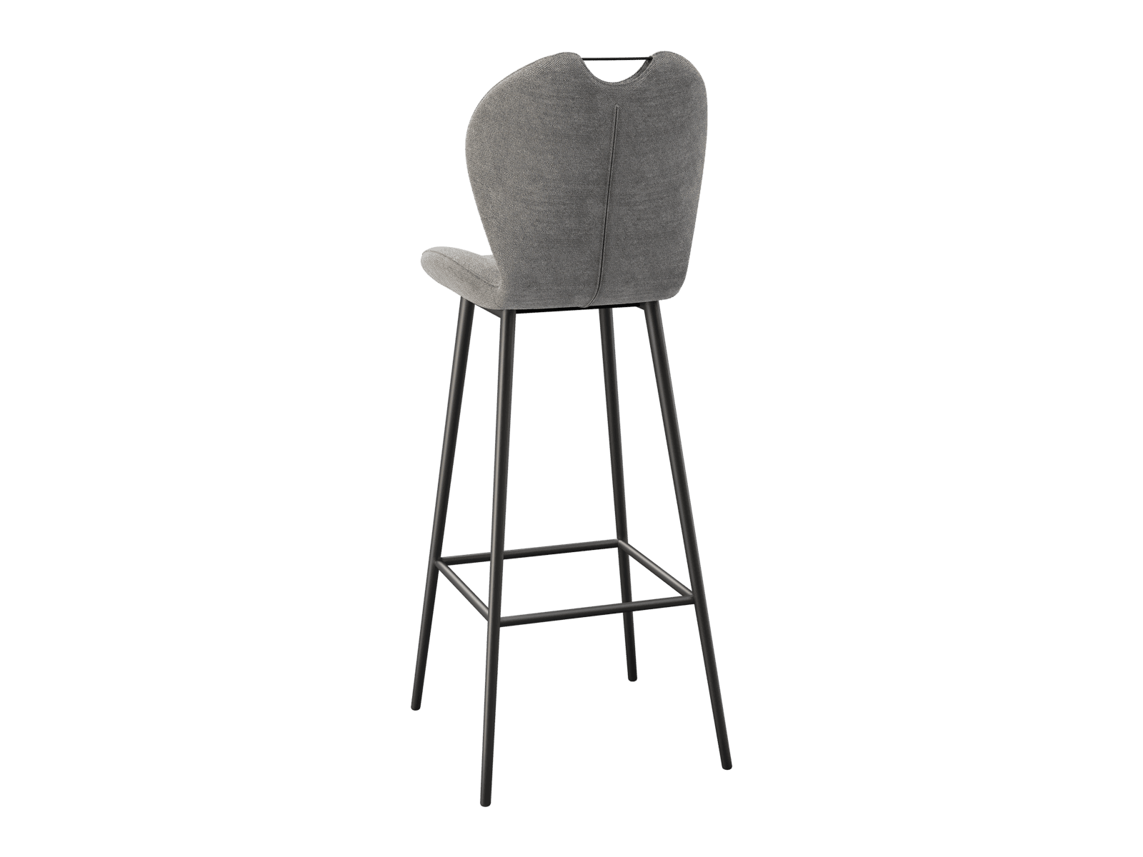 Dimensions and details Net weight : 8,4 Kg Seat : Pivots 180° Fabric composition : 100% Polyester Colour : Light grey Foam density : 25kg/m3 Seating height : 75 cm Total height : 107 cm Width : 46 cm Martindale : 60 000 Seat material : Fabric Legs : Matt black lacquered steel Maximum supported weight : 120 kg Depth : 51,5 cm Sold by 2 pieces only Light resistant : 5/5 Pilling resistance : 5/5 Color fastness to rubbing : 5/5 Fabric : OEKO-TEX® Standard 100 NOT AVAILABLE FOR THE UK AND IRISH MARKET. INPI : 20244788