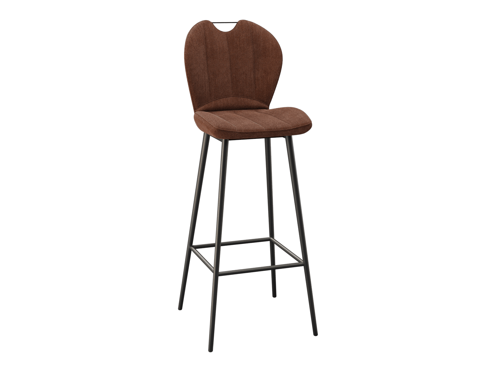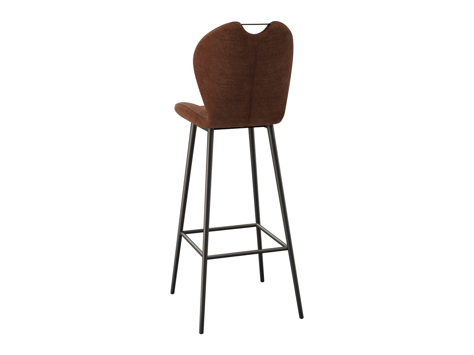 Dimensions and details Net weight : 8,4 Kg Seat : Pivots 180° Fabric composition : 100% Polyester Colour : Terracotta Foam density : 25kg/m3 Seating height : 75 cm Total height : 107 cm Width : 46 cm Martindale : 60 000 Seat material : Fabric Legs : Matt black lacquered steel Maximum supported weight : 120 kg Depth : 51,5 cm Sold by 2 pieces only Light resistant : 5/5 Pilling resistance : 5/5 Color fastness to rubbing : 5/5 Fabric : OEKO-TEX® Standard 100 NOT AVAILABLE FOR THE UK AND IRISH MARKET. INPI : 20244788