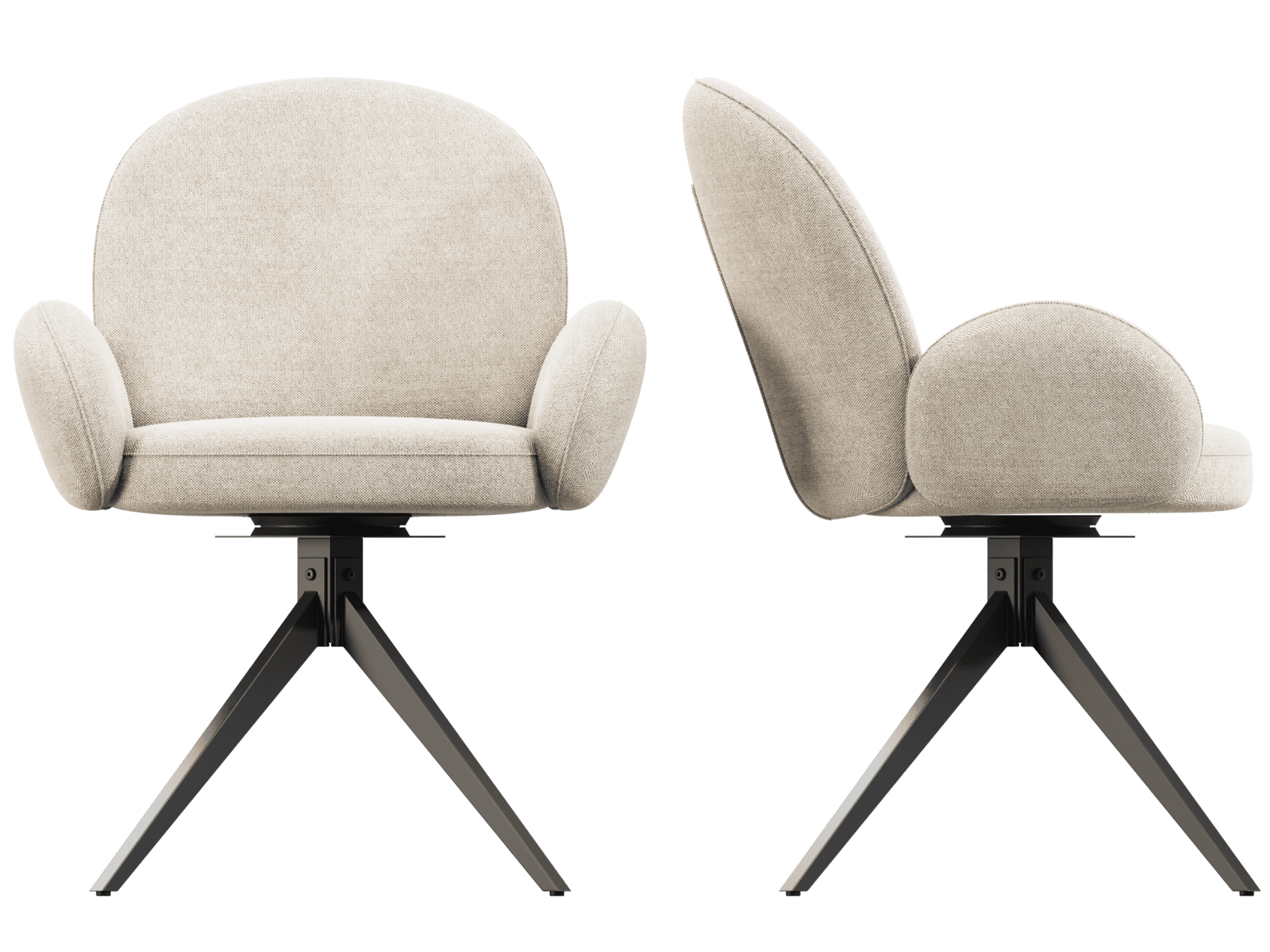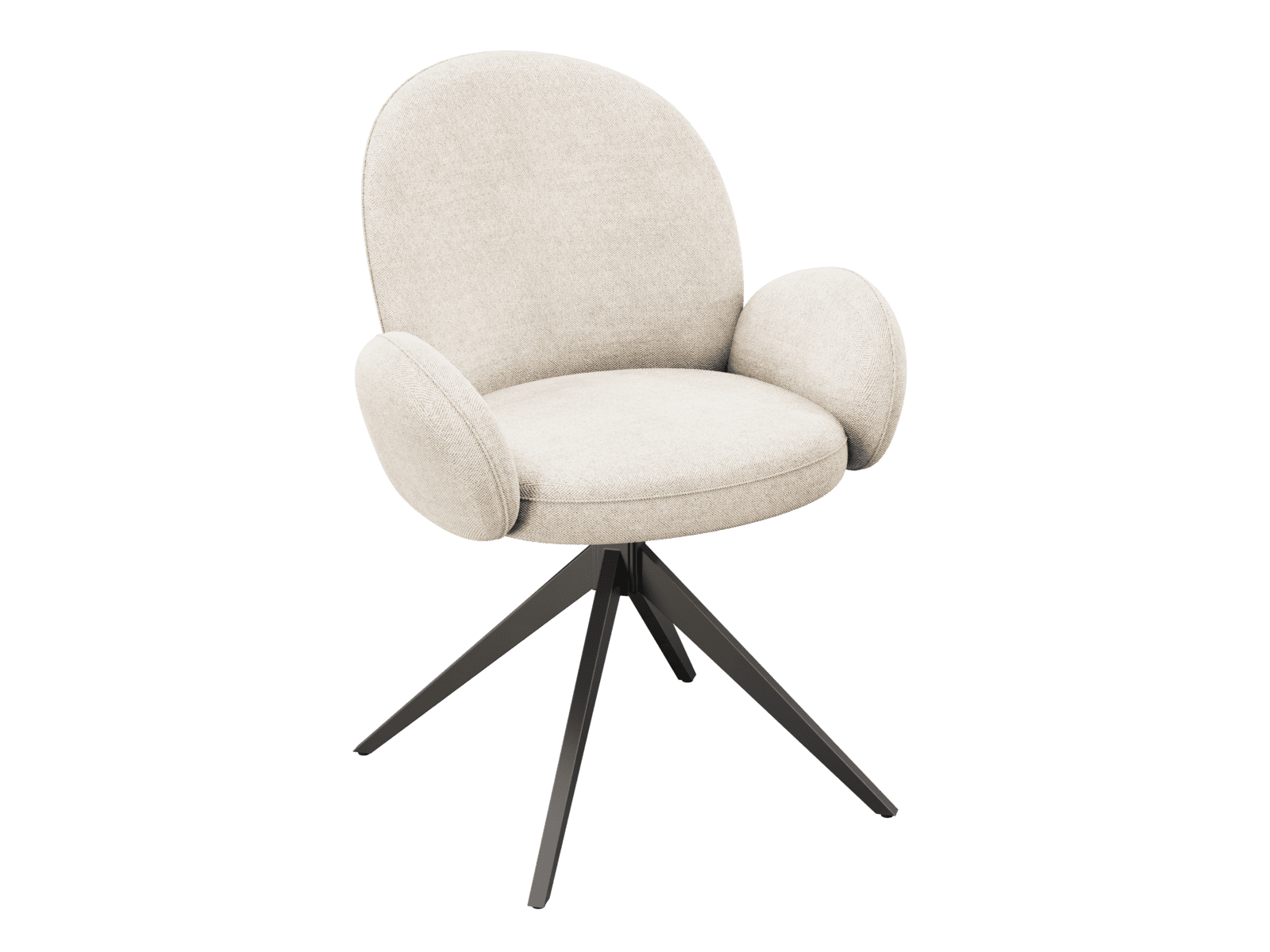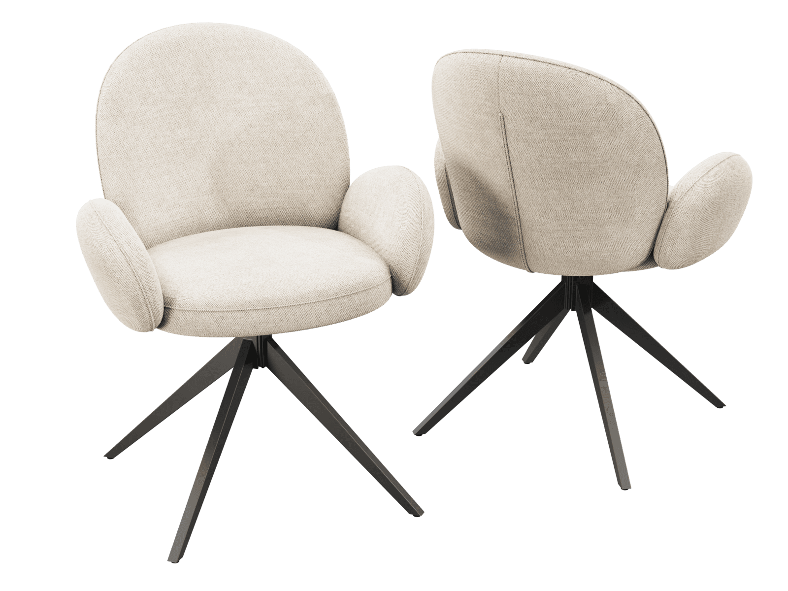 Dimensions and details Net weight : 12,6 Kg Seat : Pivots 180° Fabric composition : 100% Polyester Colour : Off-white Foam density : 28kg/m3 Thickness : 12 cm Seating height : 52 cm Total height : 90 cm Width : 66 cm Martindale : 60 000 Legs : Matt black lacquered steel Maximum supported weight : 120 kg Depth : 62 cm Seating comfort type : firm Backrest comfort type : balanced Sold by 2 pieces only Light resistant : 5/5 Pilling resistance : 5/5 Color fastness to rubbing : 5/5 Seat structure : plywood shell Backrest structure : metal Foam type : polyurethane NOT AVAILABLE FOR THE UK AND IRISH MARKET.