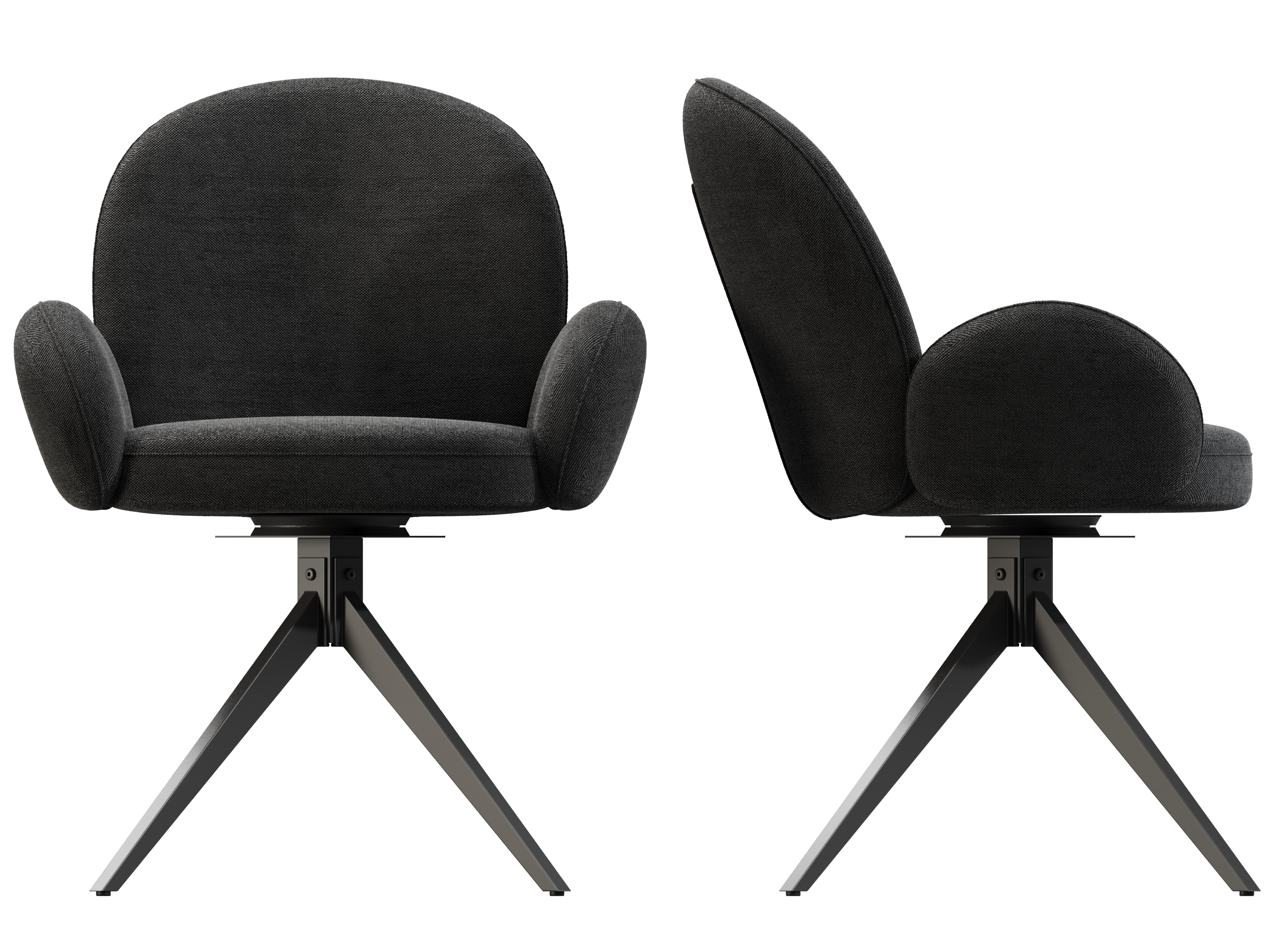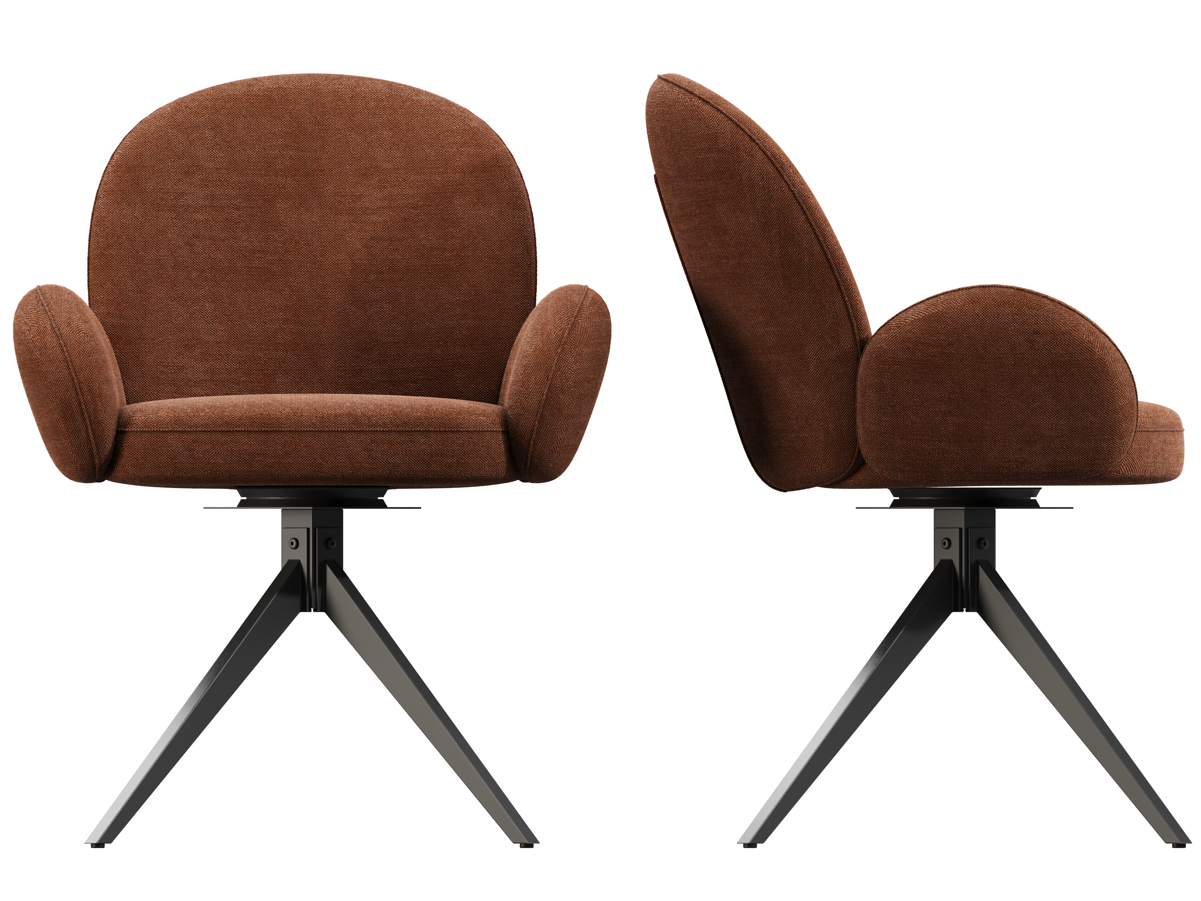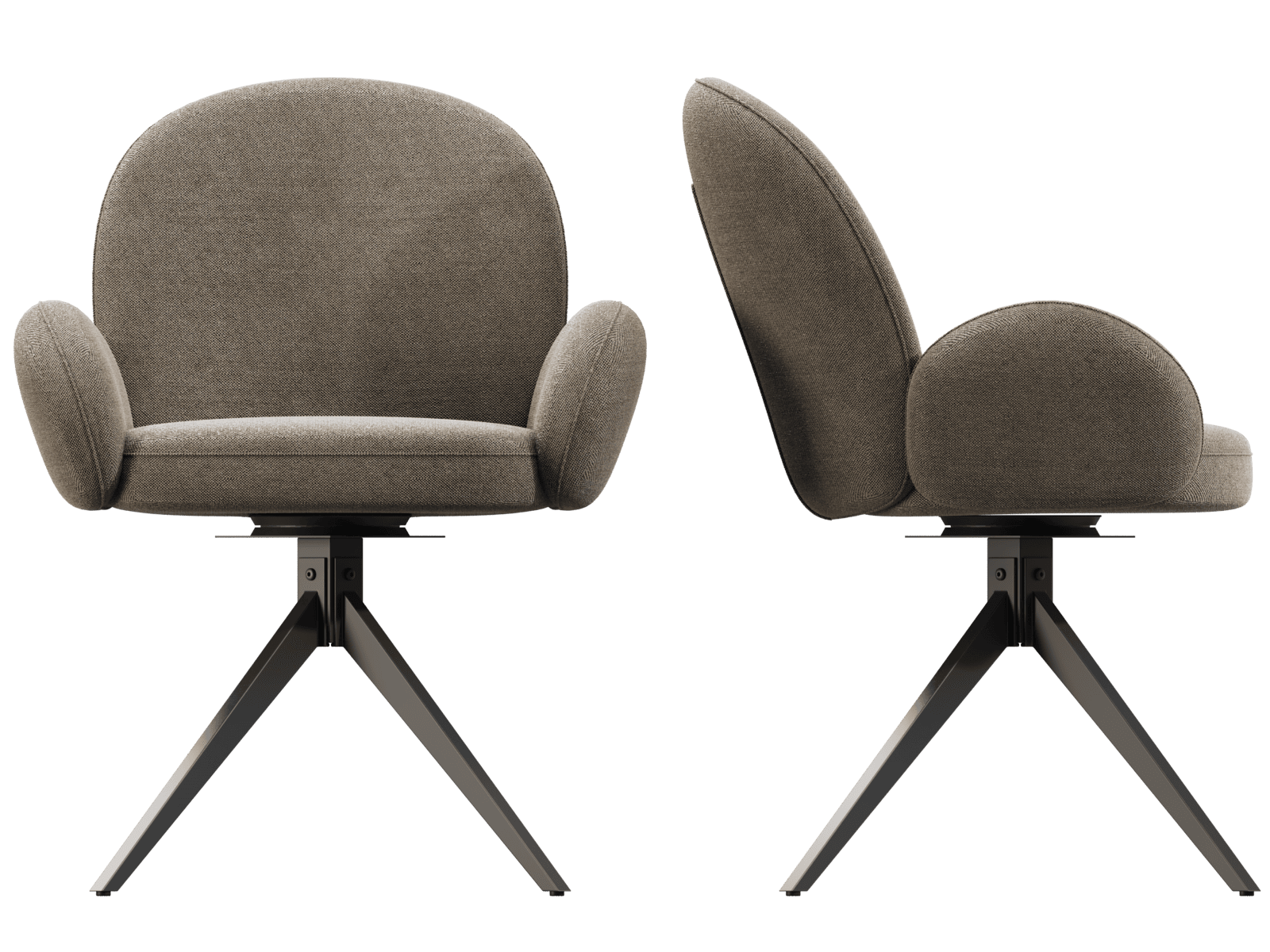 Dimensions and details Net weight : 12,6 Kg Seat : Pivots 180° Fabric composition : 100% Polyester Colour : Beige Foam density : 28kg/m3 Thickness : 12 cm Seating height : 52 cm Total height : 90 cm Width : 66 cm Martindale : 60 000 Legs : Matt black lacquered steel Maximum supported weight : 120 kg Depth : 62 cm Seating comfort type : firm Backrest comfort type : balanced Sold by 2 pieces only Light resistant : 5/5 Pilling resistance : 5/5 Color fastness to rubbing : 5/5 Seat structure : plywood shell Backrest structure : metal Foam type : polyurethane NOT AVAILABLE FOR THE UK AND IRISH MARKET.
