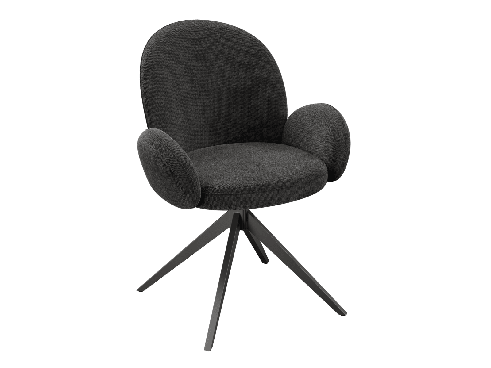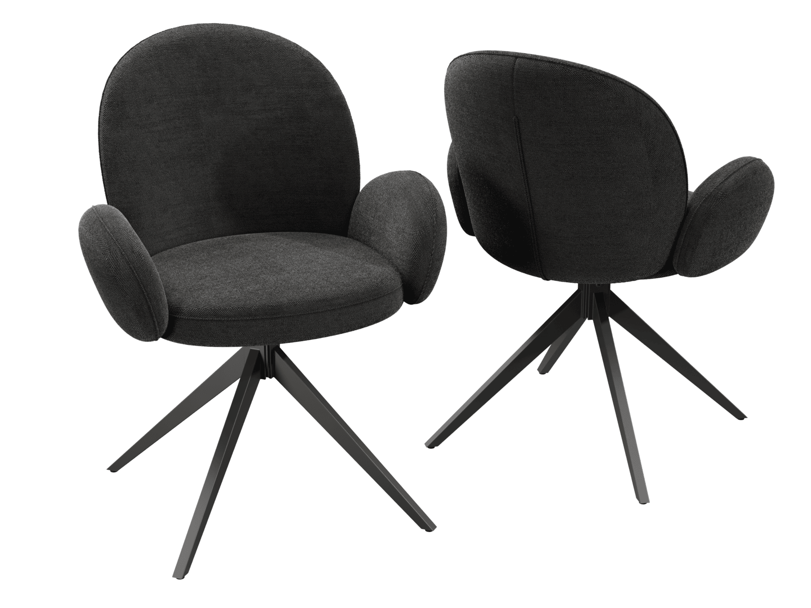 Dimensions and details Net weight : 12,6 Kg Seat : Pivots 180° Fabric composition : 100% Polyester Colour : Charcoal Foam density : 28kg/m3 Thickness : 12 cm Seating height : 52 cm Total height : 90 cm Width : 66 cm Martindale : 60 000 Legs : Matt black lacquered steel Maximum supported weight : 120 kg Depth : 62 cm Seating comfort type : firm Backrest comfort type : balanced Sold by 2 pieces only Light resistant : 5/5 Pilling resistance : 5/5 Color fastness to rubbing : 5/5 Seat structure : plywood shell Backrest structure : metal Foam type : polyurethane NOT AVAILABLE FOR THE UK AND IRISH MARKET.