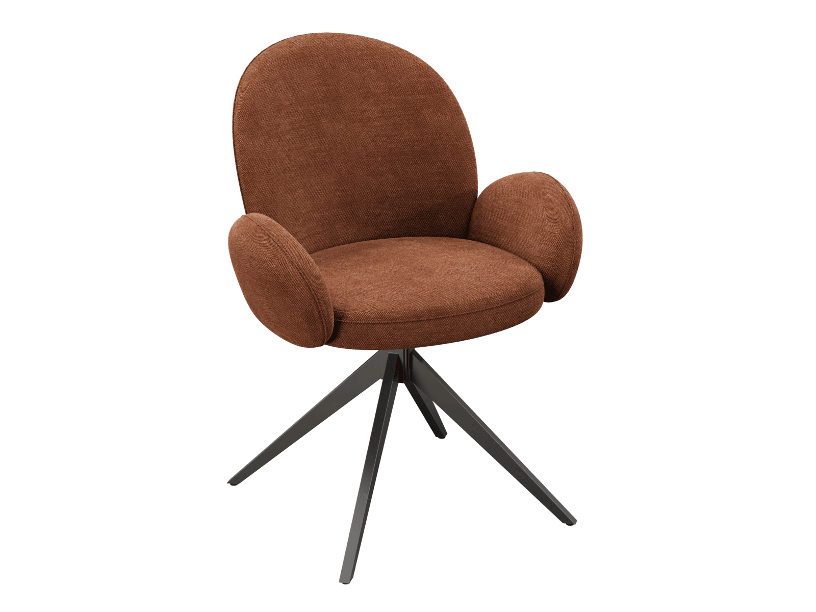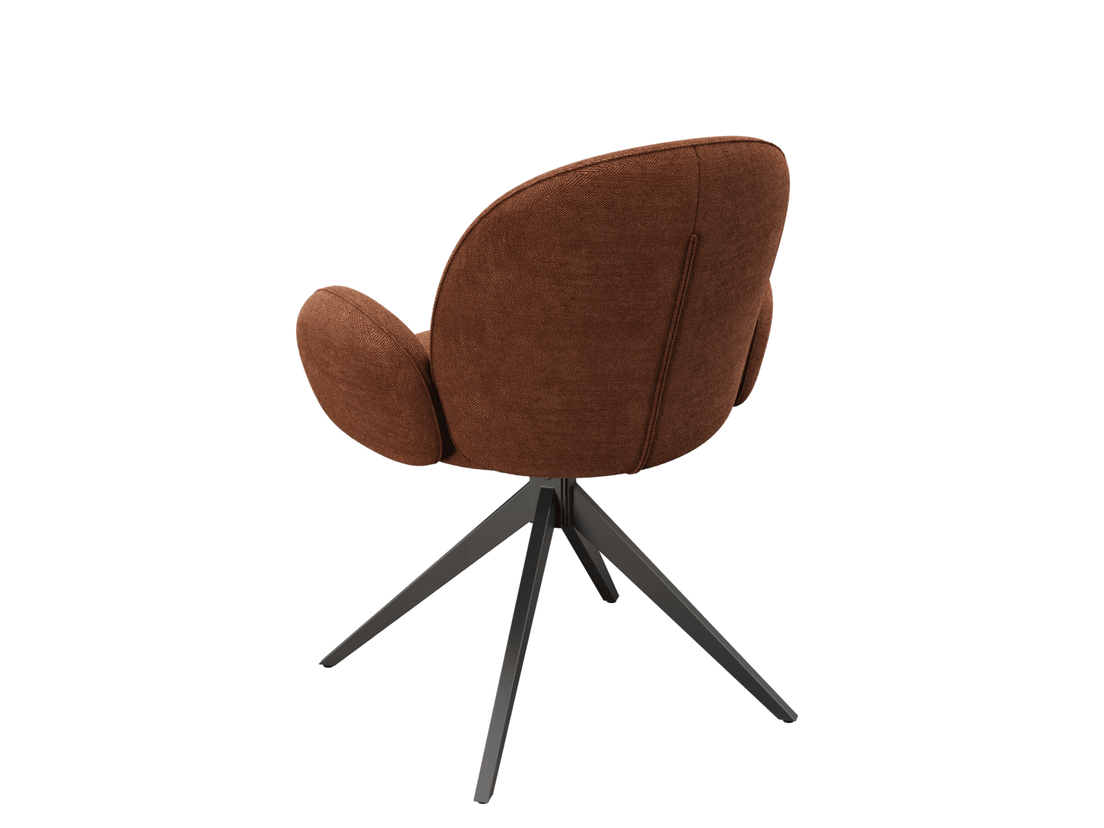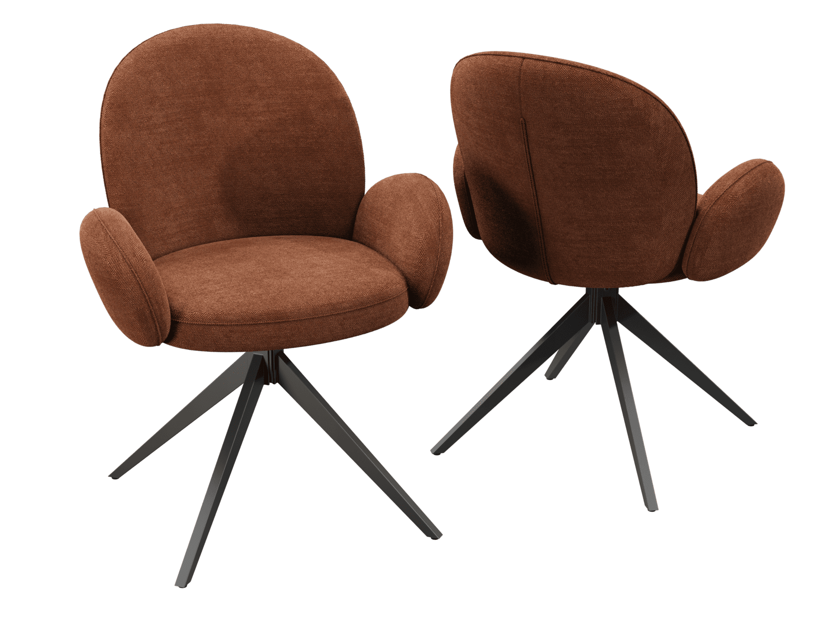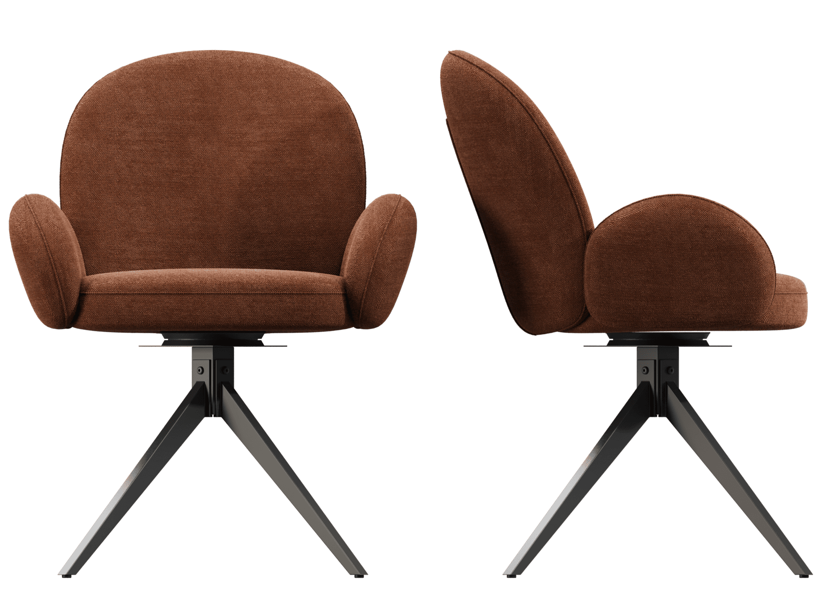 Dimensions and details Net weight : 12,6 Kg Seat : Pivots 180° Fabric composition : 100% Polyester Colour : Terracotta Foam density : 28kg/m3 Thickness : 12 cm Seating height : 52 cm Total height : 90 cm Width : 66 cm Martindale : 60 000 Legs : Matt black lacquered steel Maximum supported weight : 120 kg Depth : 62 cm Seating comfort type : firm Backrest comfort type : balanced Sold by 2 pieces only Light resistant : 5/5 Pilling resistance : 5/5 Color fastness to rubbing : 5/5 Seat structure : plywood shell Backrest structure : metal Foam type : polyurethane NOT AVAILABLE FOR THE UK AND IRISH MARKET.