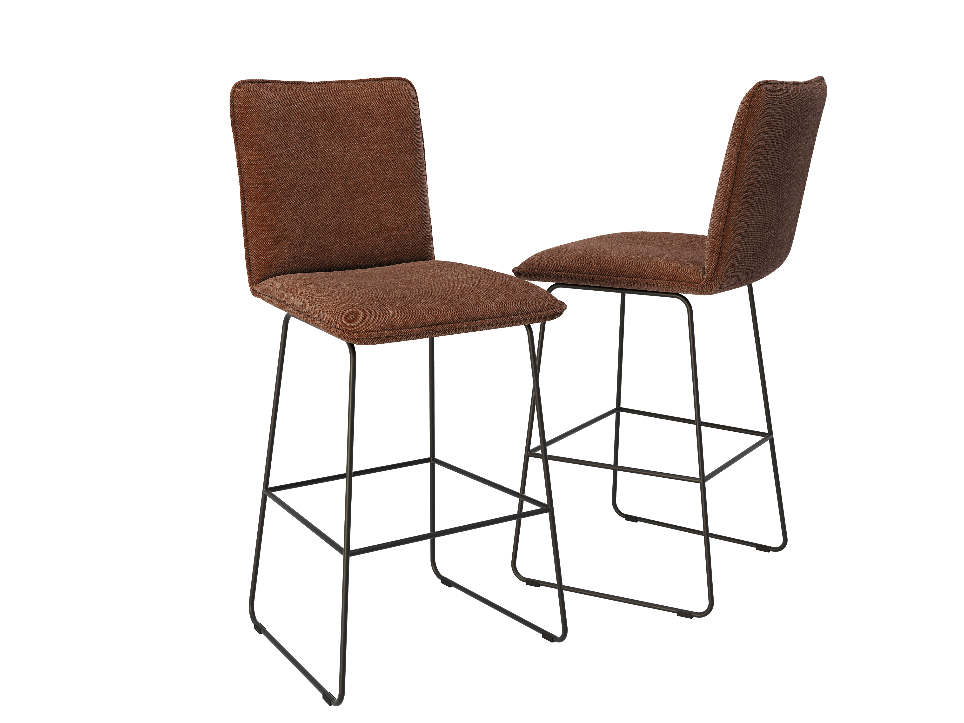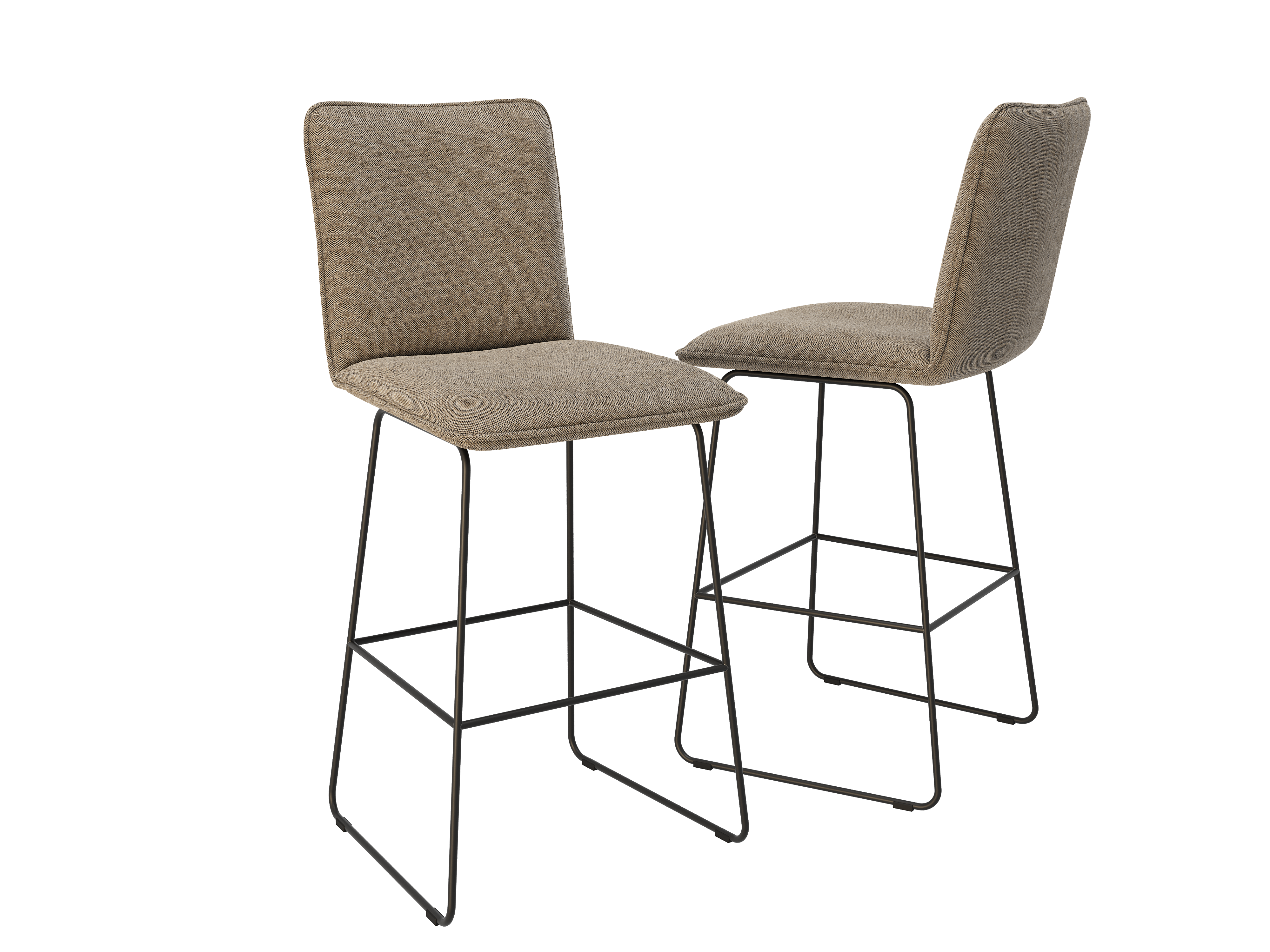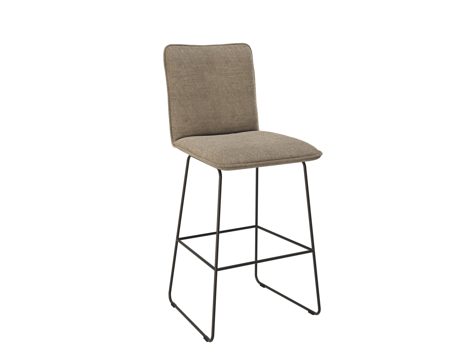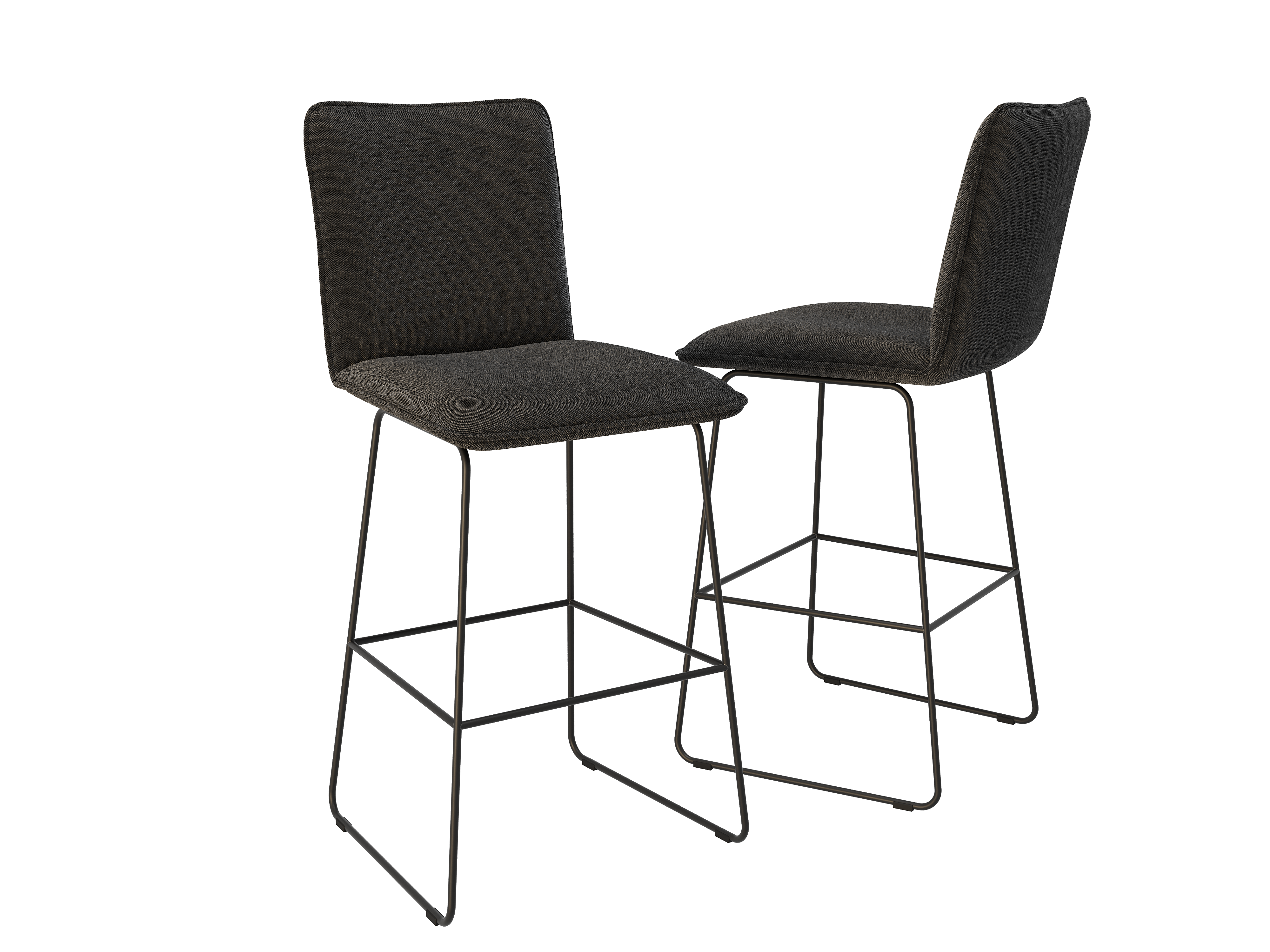 Dimensions and details Net weight : 8,5 Kg Seat : Fixed Fabric composition : 100% Polyester Colour : Beige Foam density : 25kg/m3 Height : 98 cm Seating height : 65 cm Width : 38 cm Martindale : 60 000 Legs : Matt black lacquered steel Maximum supported weight : 120 kg Depth : 43 cm Sold by 2 pieces only Light resistant : 5/5 Pilling resistance : 5/5 Color fastness to rubbing : 5/5 Fabric : OEKO-TEX® Standard 100 NOT AVAILABLE FOR THE UK AND IRISH MARKET. INPI : 20244788