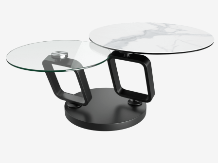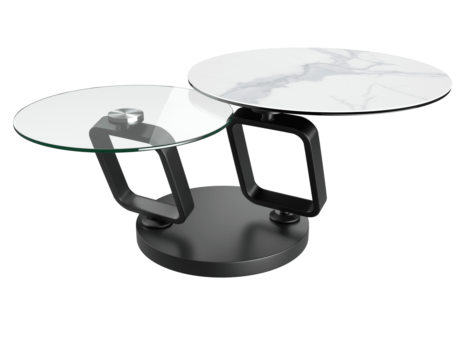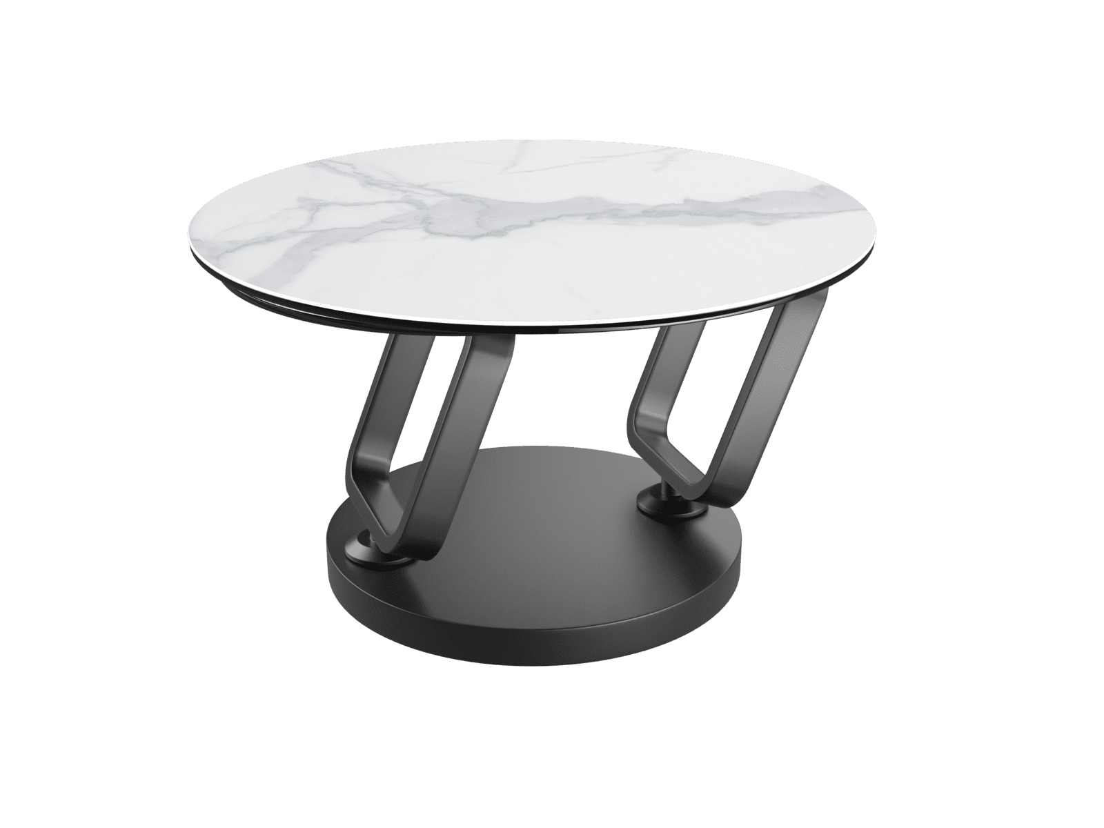 Dimensions and details Net weight : 43 Kg Colour : Matt marble Diameter : 75 cm Dimensions : Ø 75 x 41,5 cm Dimensions opened : 130 x 75 x 41,5 cm Height : 41,5 cm Legs : Matt black lacquered steel Bottom plate : Ø 55 cm Lower plate : 10 mm clear glass Top plate : 3 mm thick ceramic glued upon a 6 mm glass pane INPI : 20231433