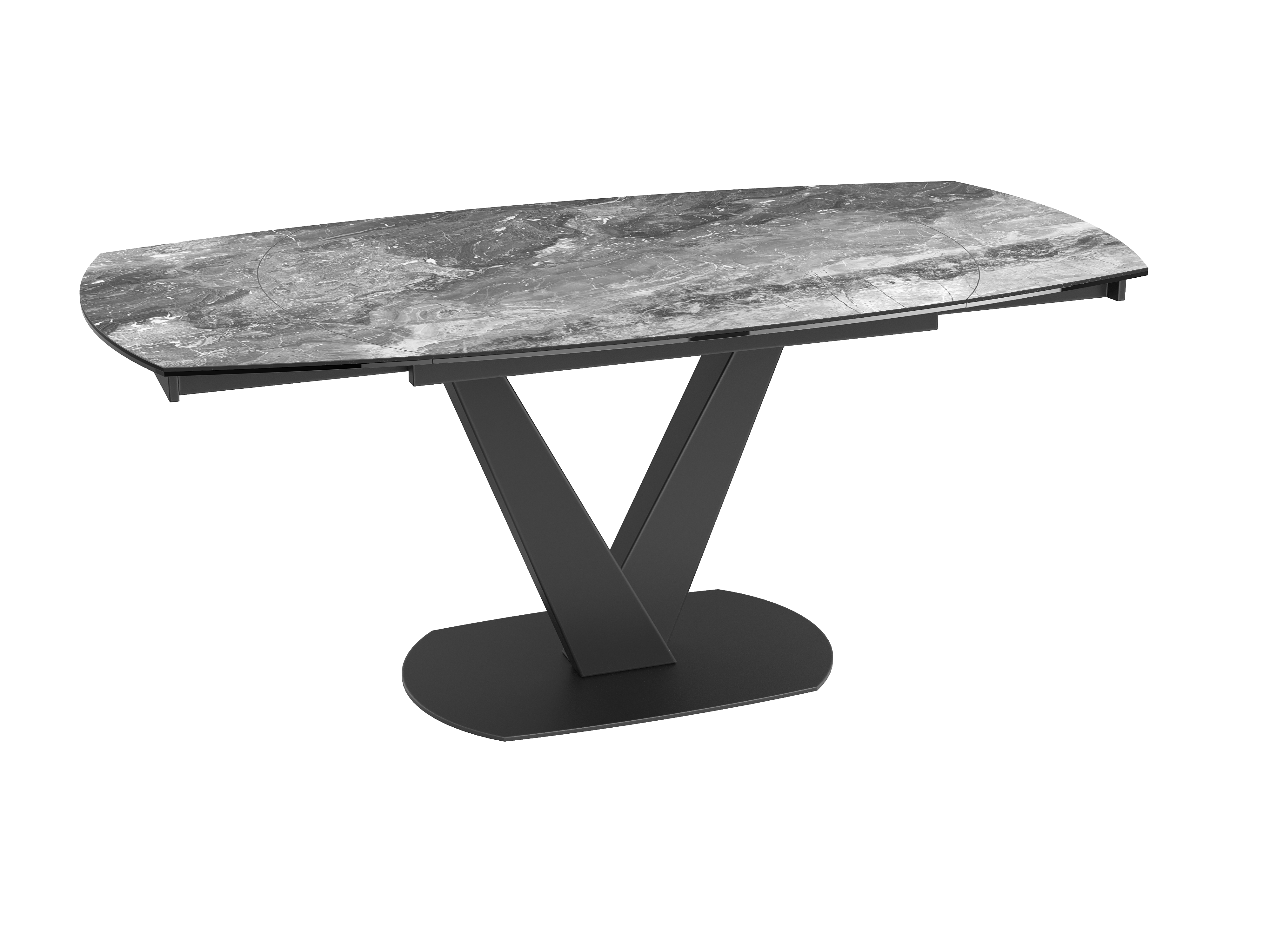 Dimensions and details Net weight : 100 Kg Colour : Travertine Dimensions : 120 x 90 x 76 cm Dimensions opened : 180 x 90 x 76 cm Height : 76 cm Width : 90 cm Length : 120 cm Synchronised mechanism Number of seats : 6 to 8 people Legs : Matt black lacquered steel Plate : 3 mm thick ceramic glued upon a 8 mm glass pane INPI : 20215513