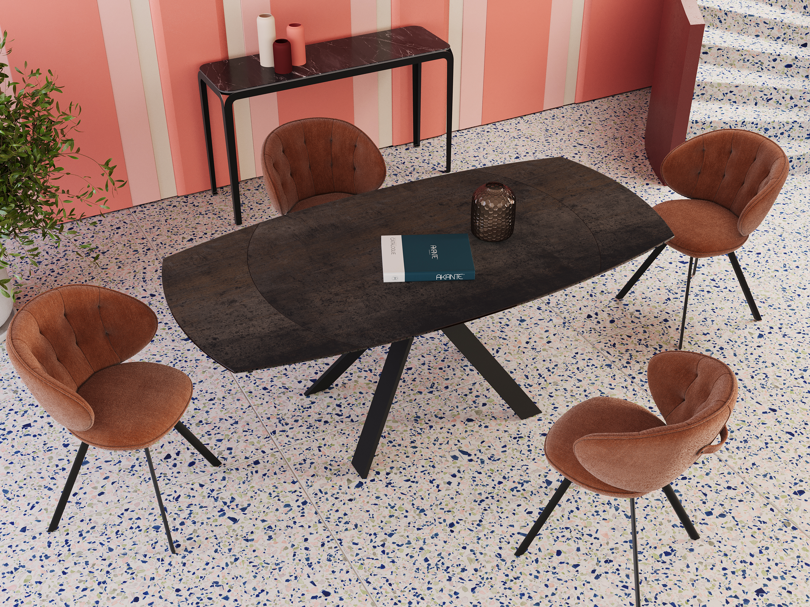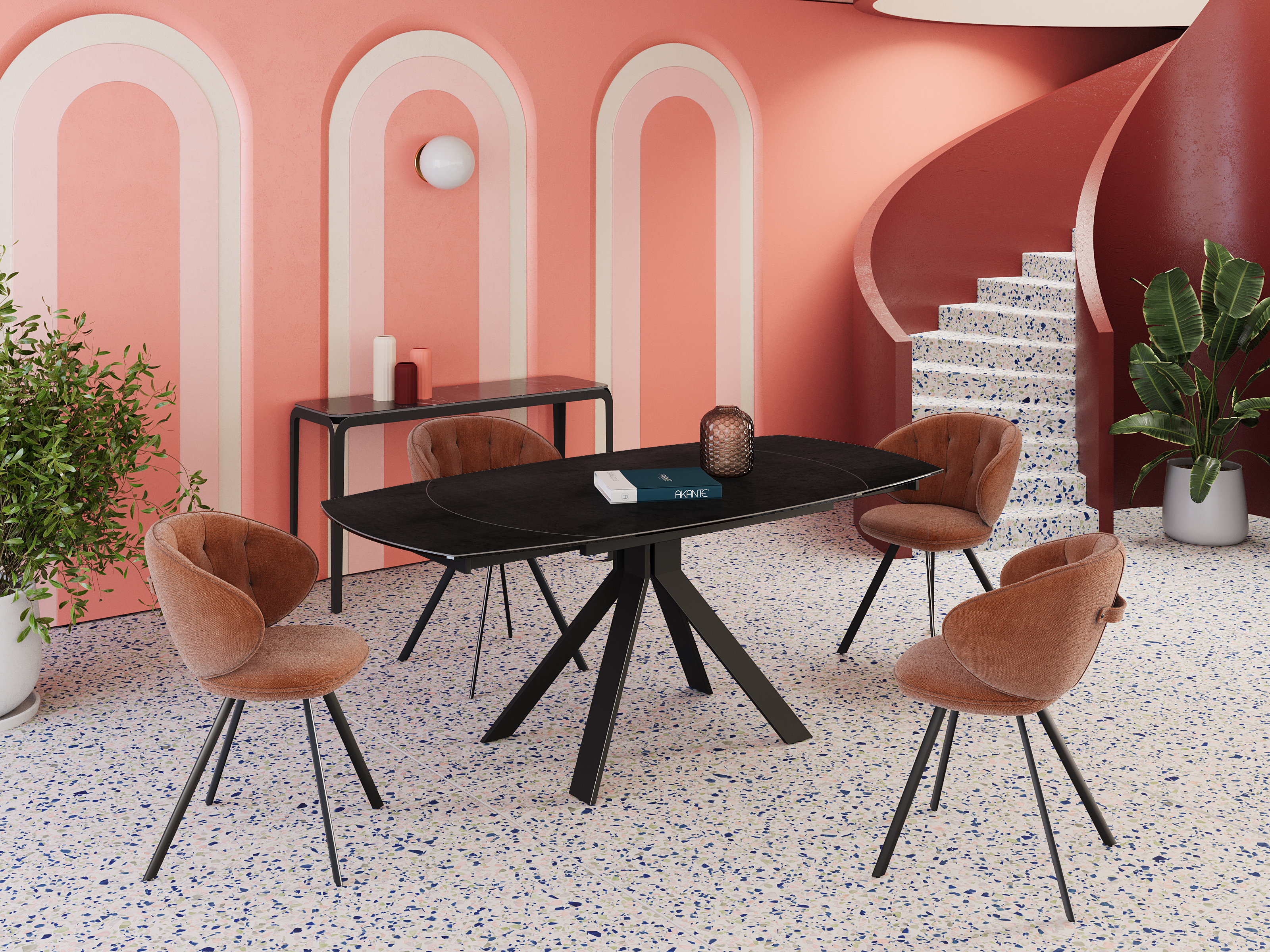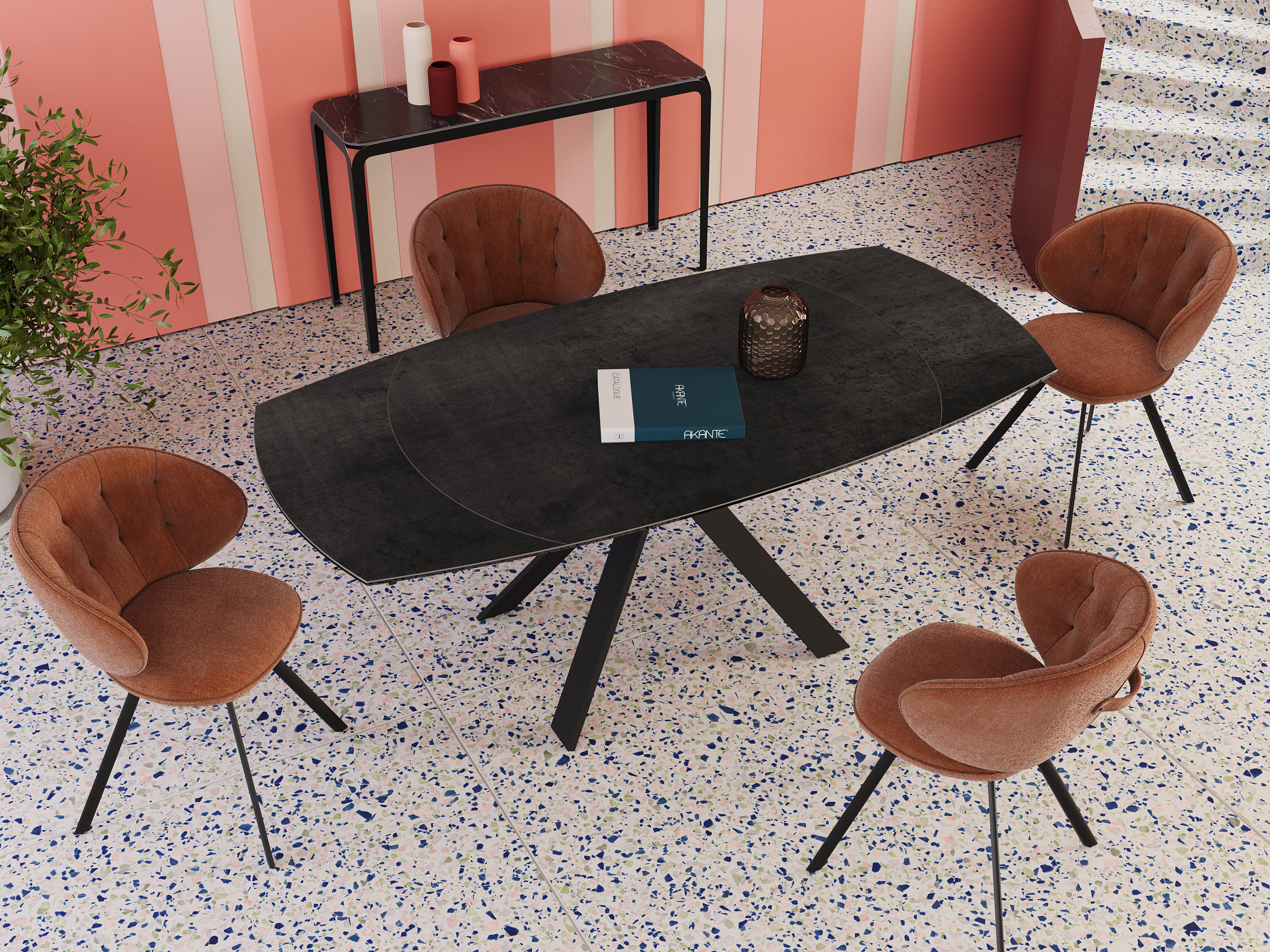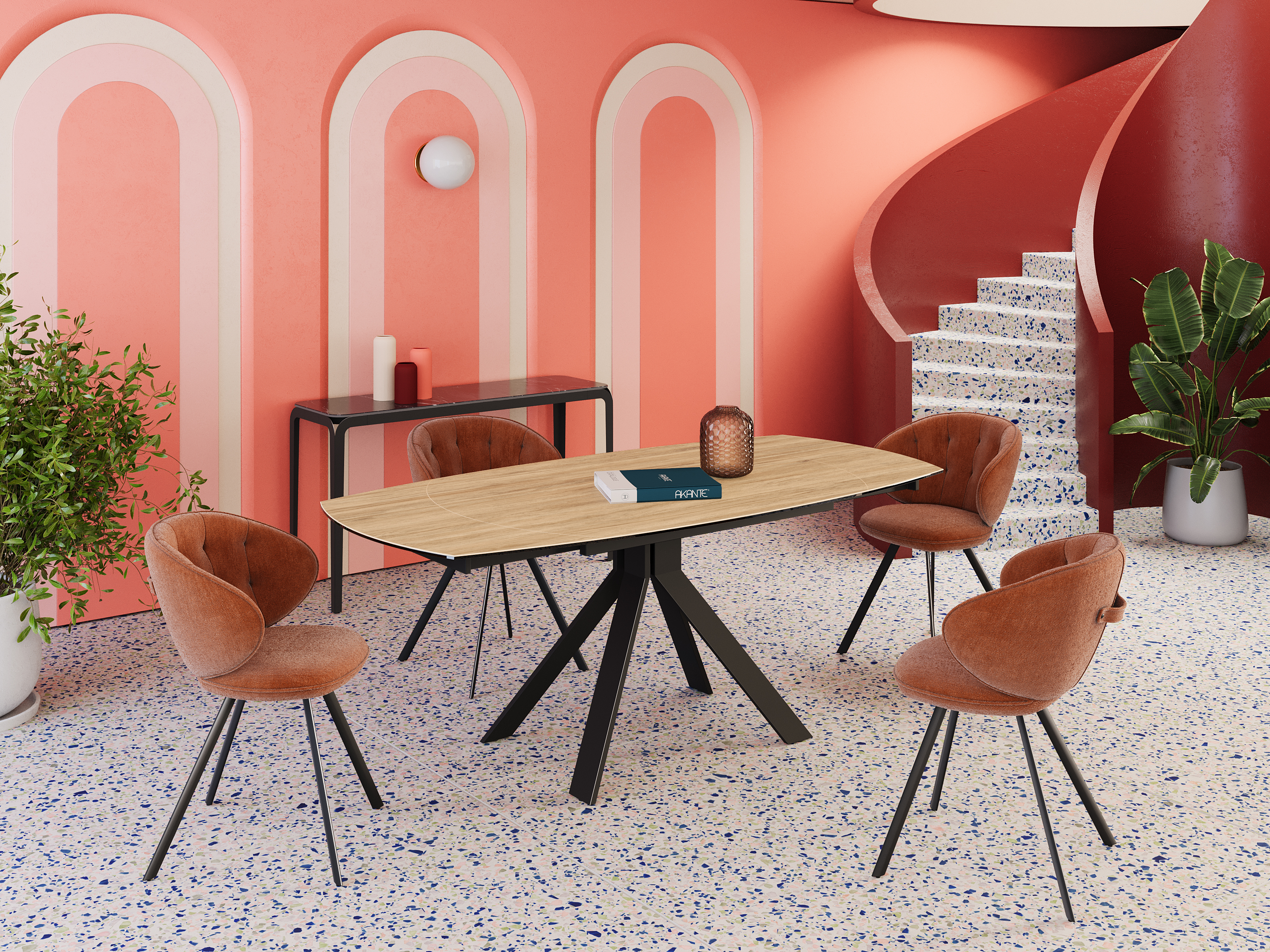 Now’s the time to go for oak clear colours and the Milazzo dining table. Along with the trendy yet timeless tones of this plate, you will find located beneath it two lateral extensions that an ingenious mechanism allows you to make the table go from a length of 130 cm to a length of 190 cm. It has a matt black lacquered steel base who elegant lines make it a unique piece of furniture.