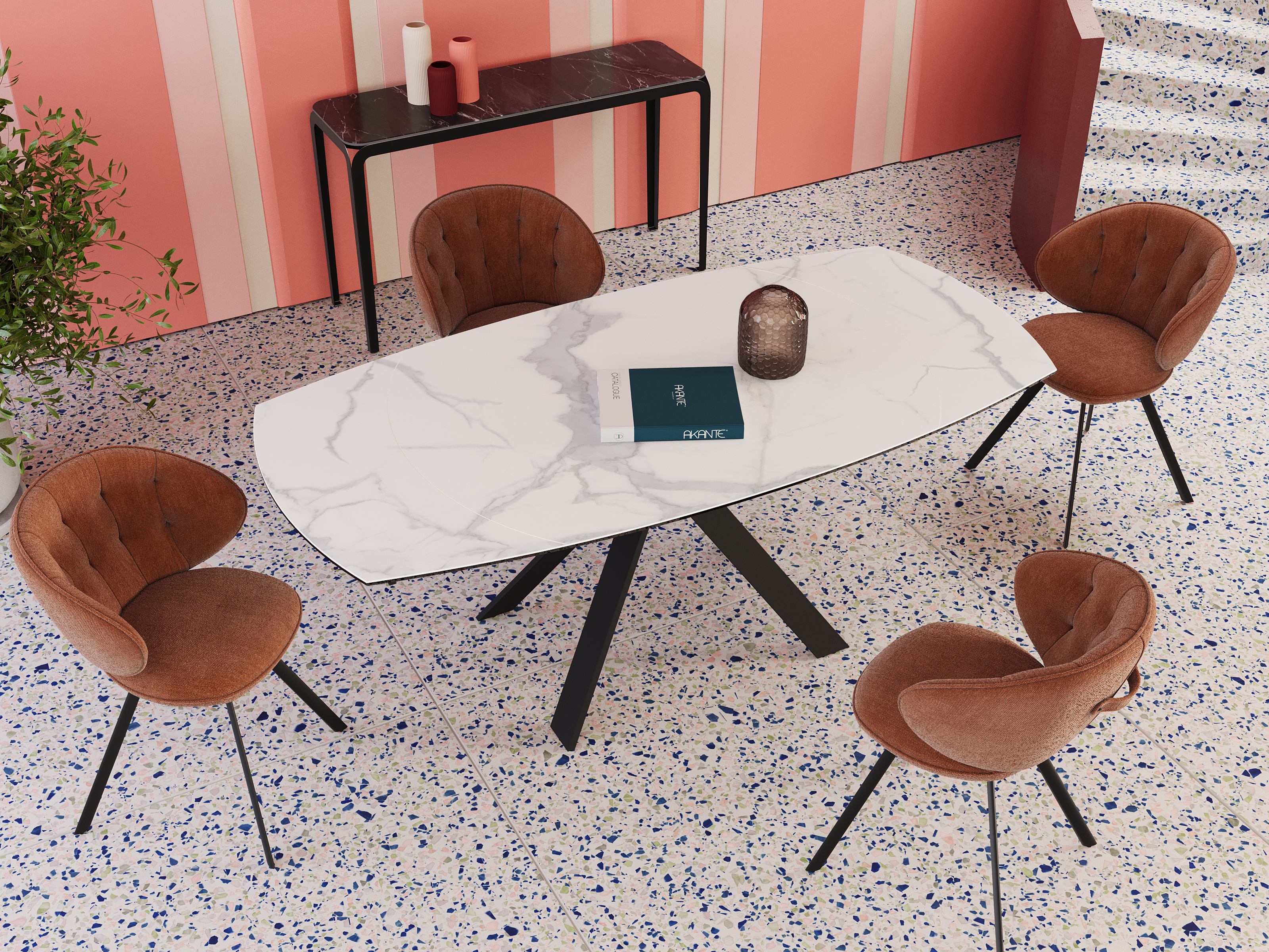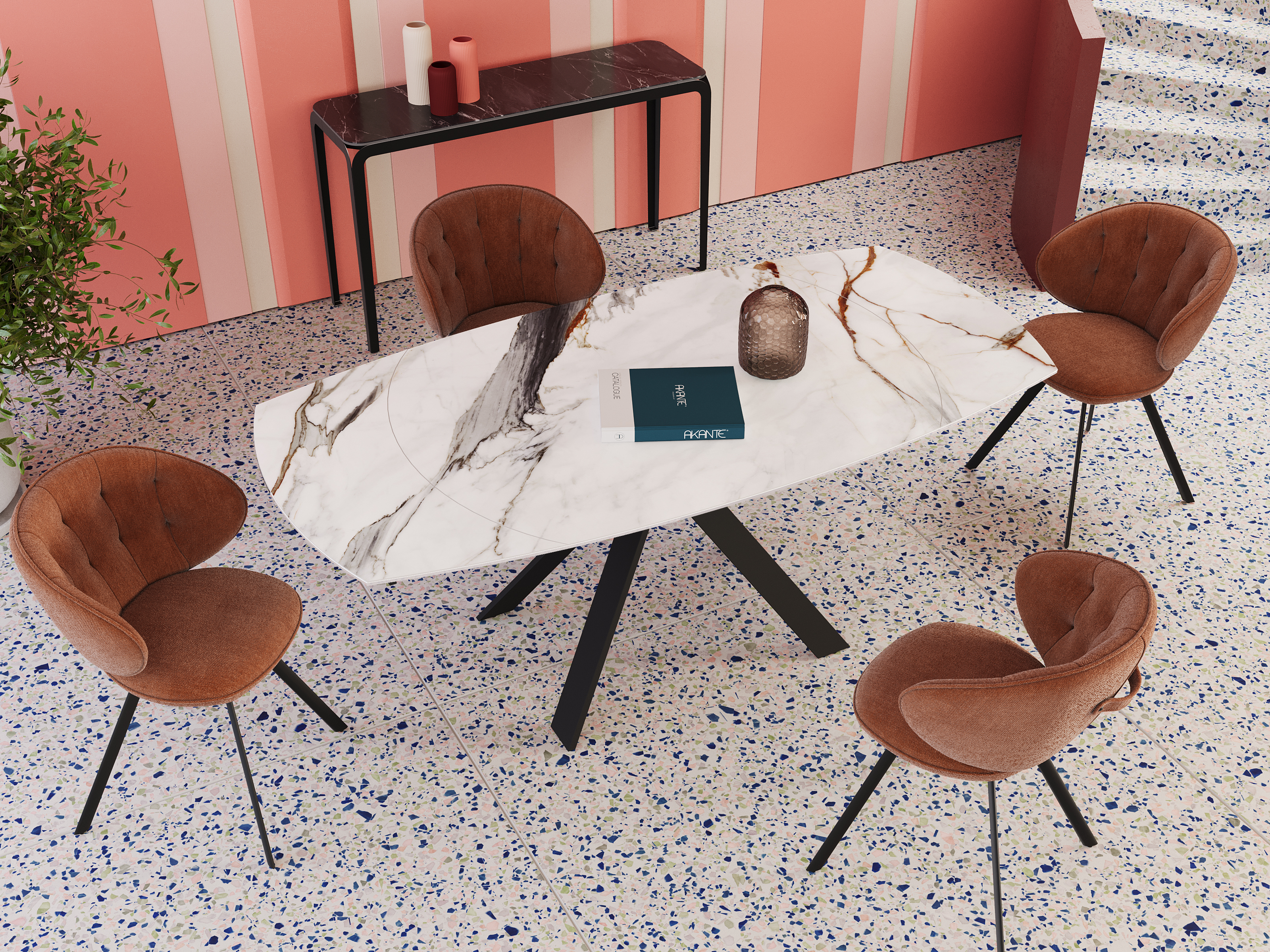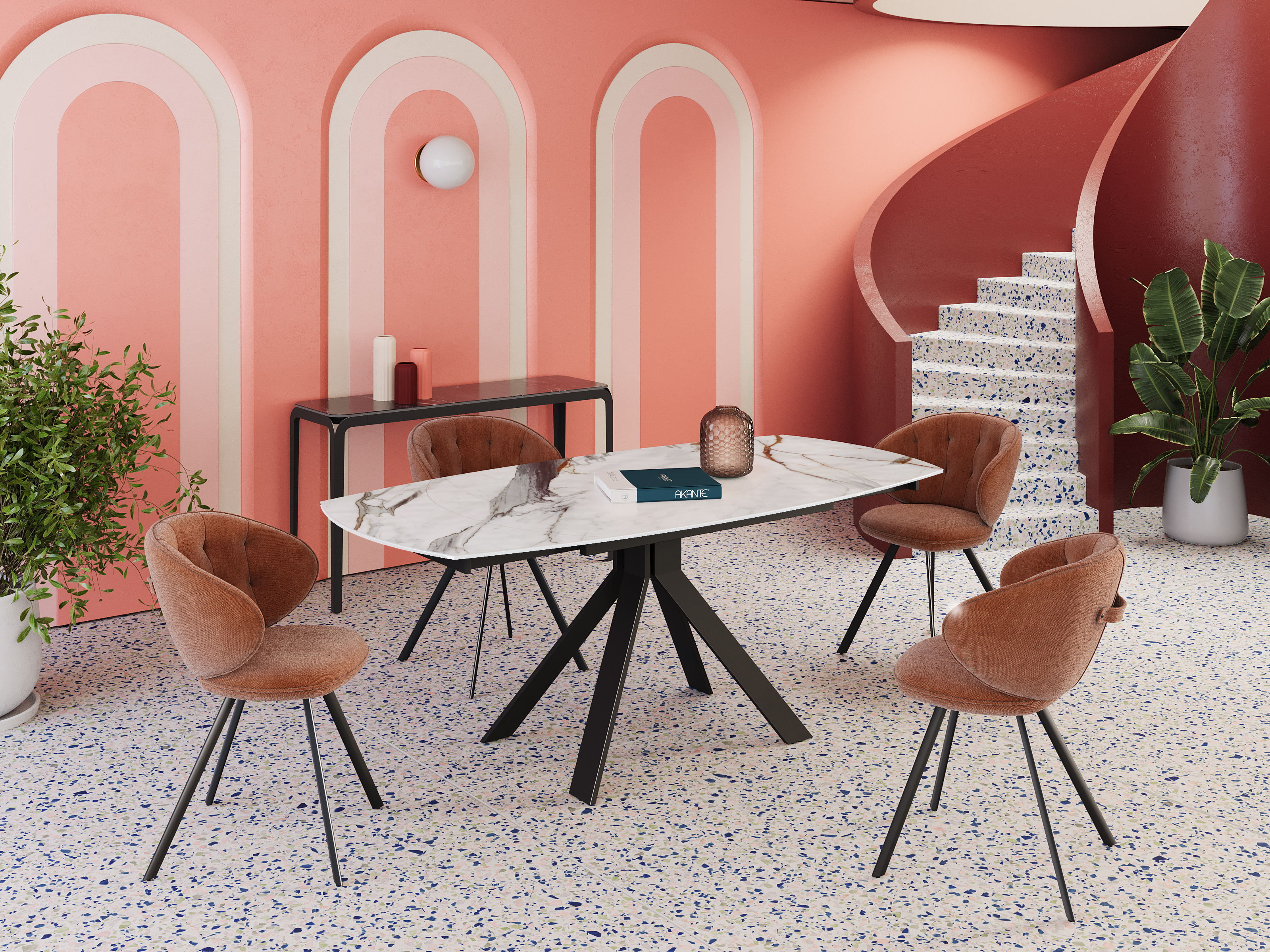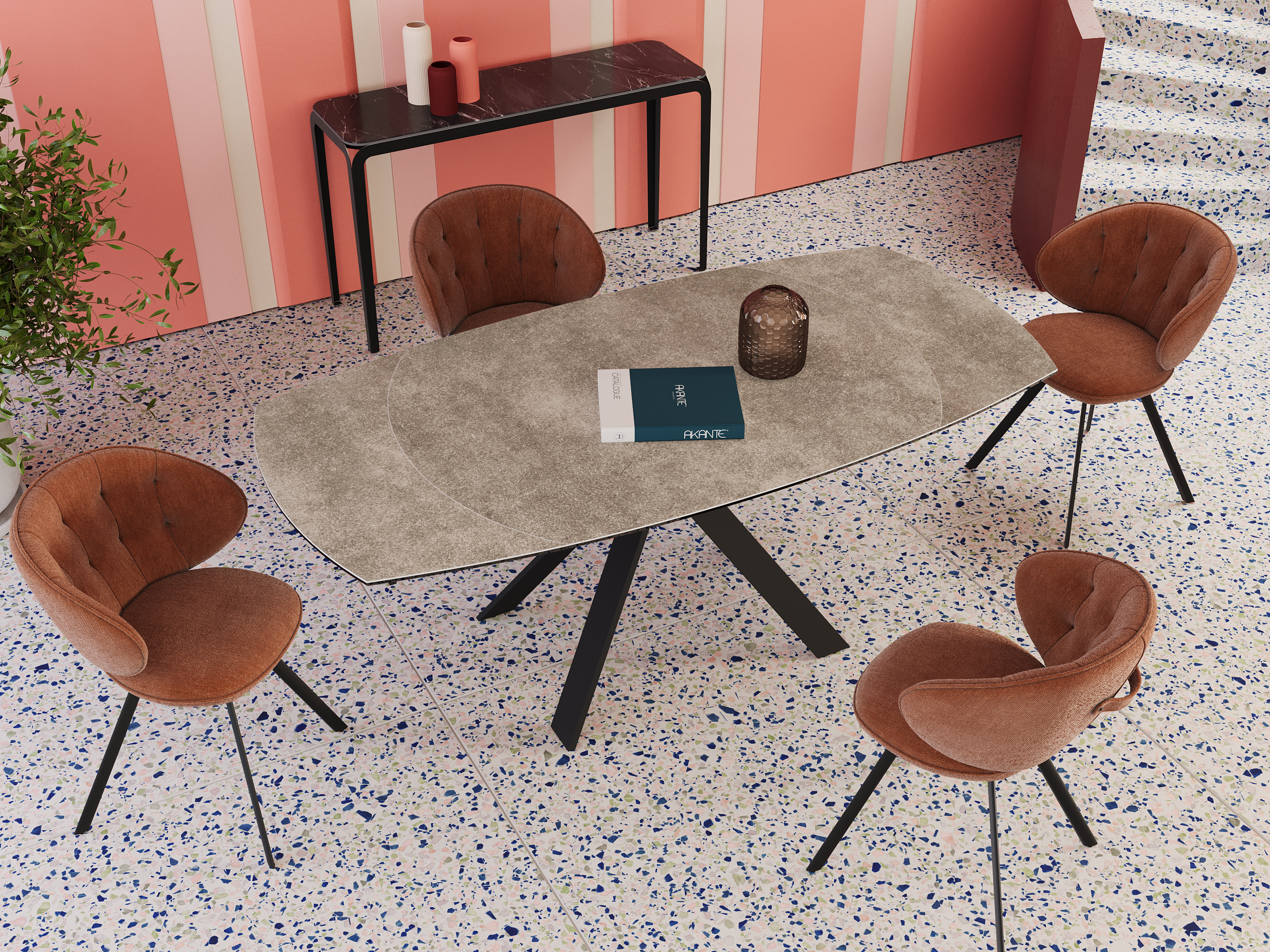 Now’s the time to go for oak clear colours and the Milazzo dining table. Along with the trendy yet timeless tones of this plate, you will find located beneath it two lateral extensions that an ingenious mechanism allows you to make the table go from a length of 130 cm to a length of 190 cm. It has a matt black lacquered steel base who elegant lines make it a unique piece of furniture.