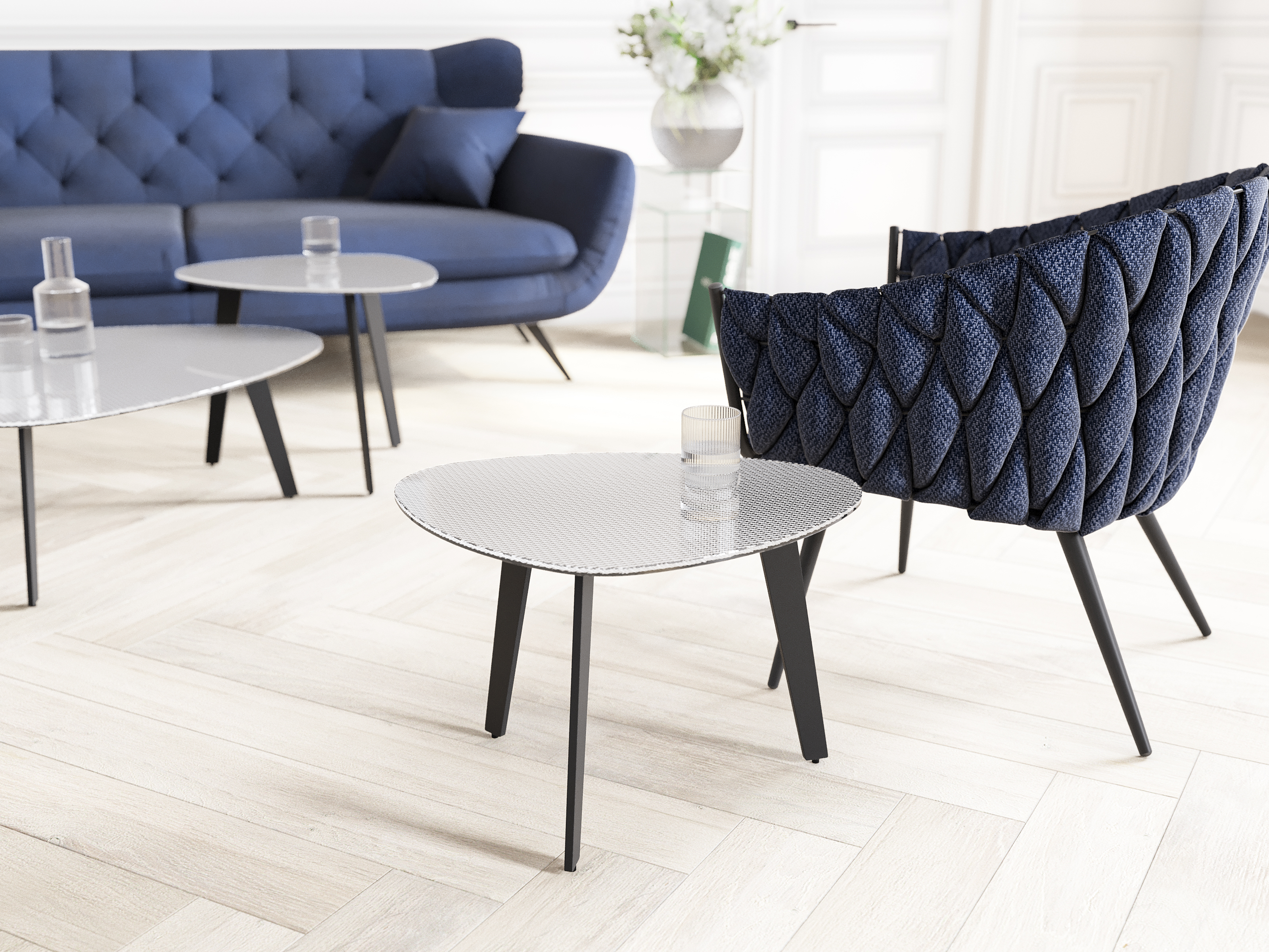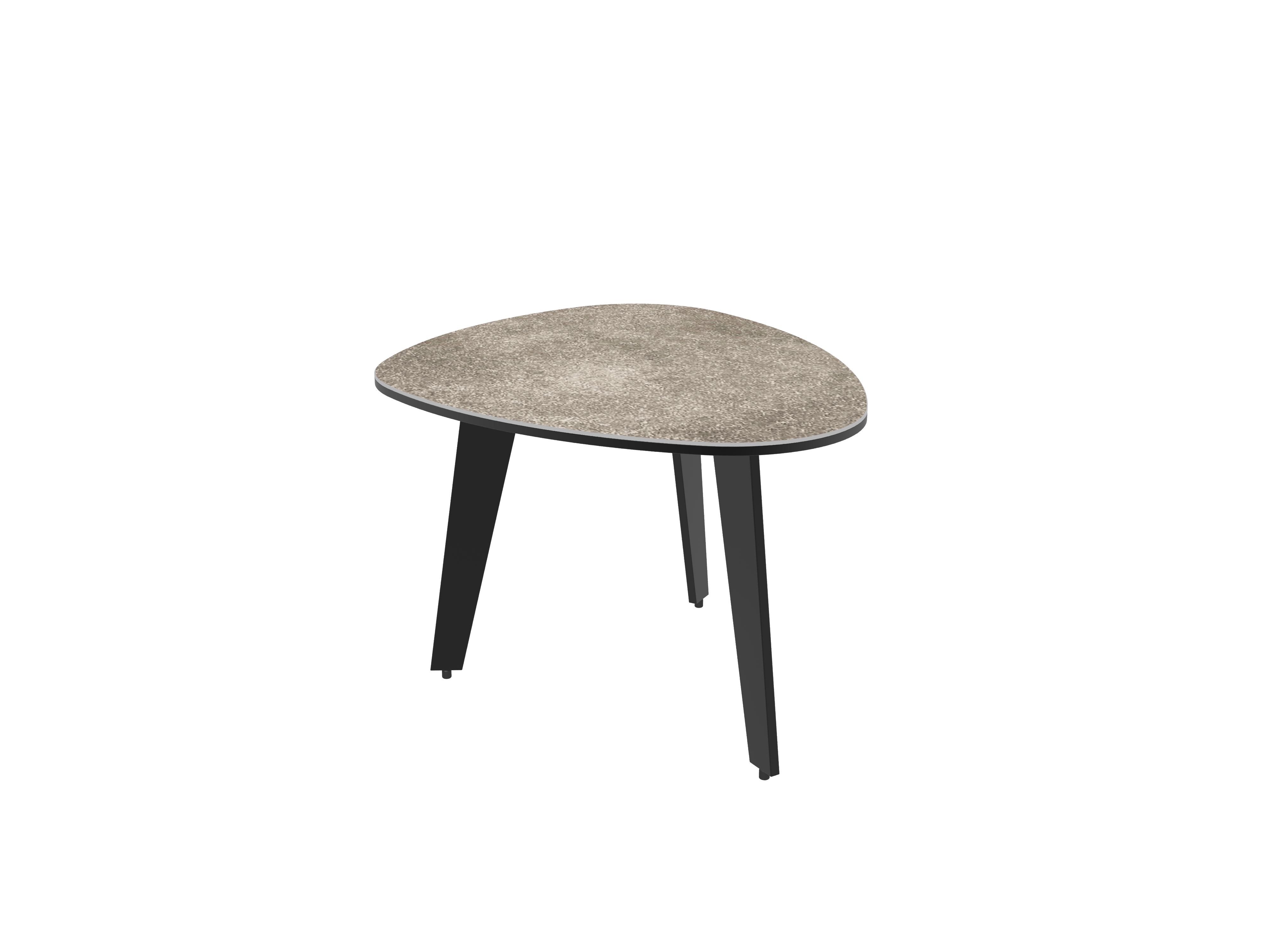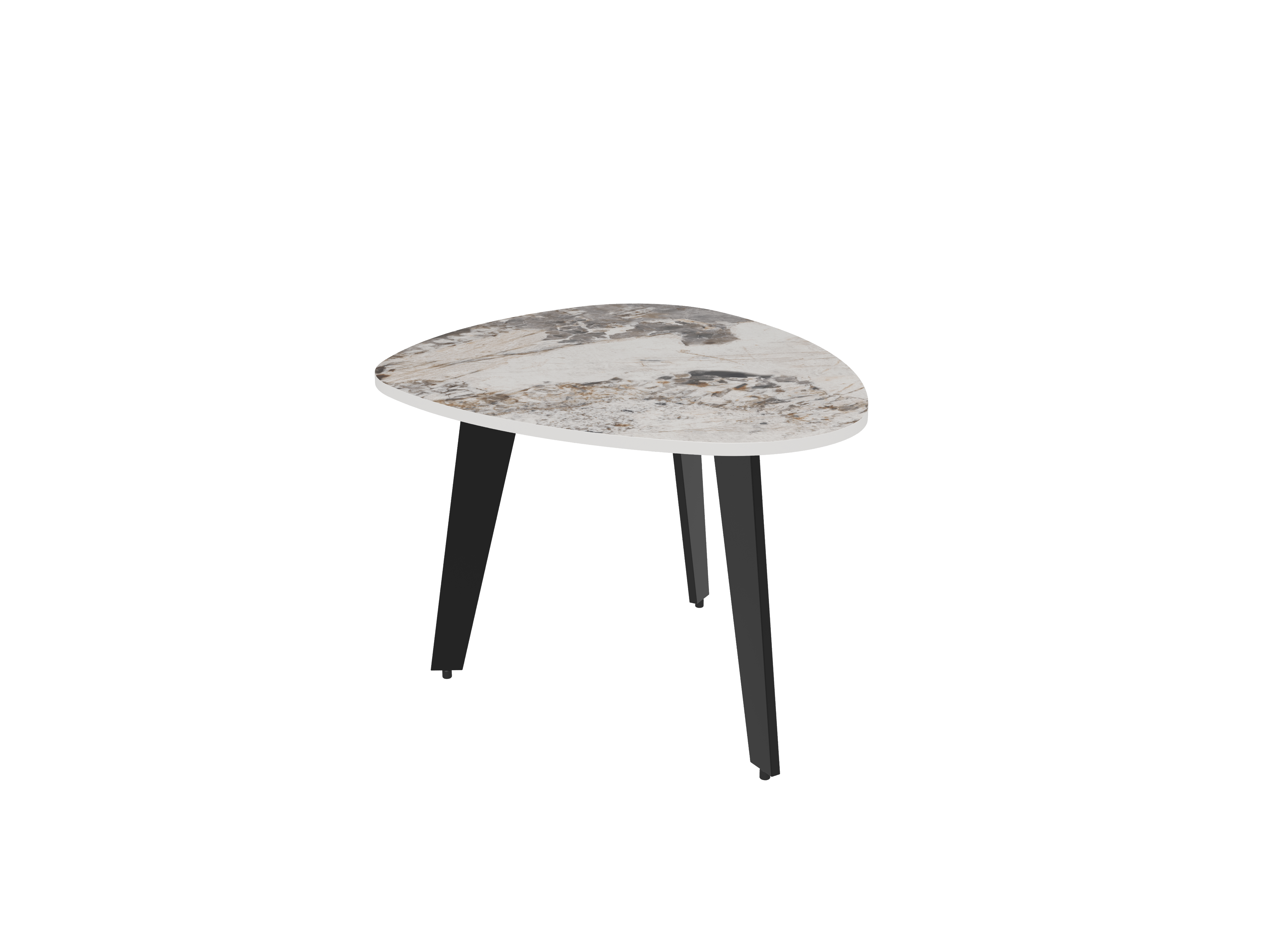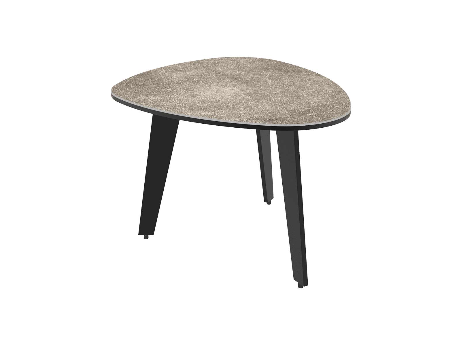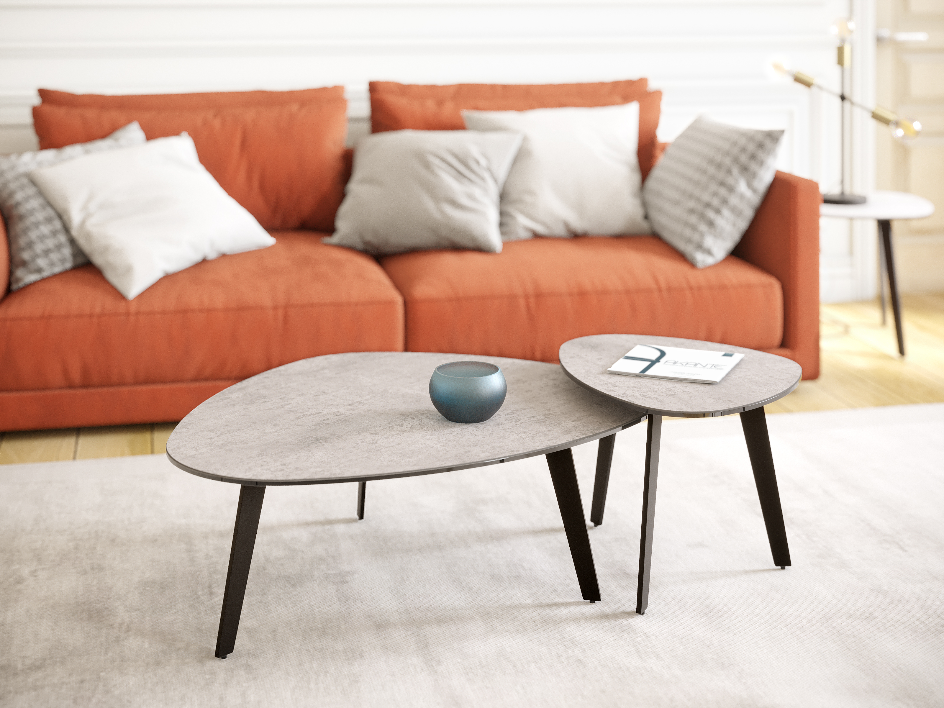 The Galet end-table is an excellent accompaniment to the Galet coffee table series. The dimensions are 55cm x 45cm and its height is 33cm. It is composed of 4 legs in black lacquered steel and has a 3mm ceramic plate glued upon a 6mm glass plate. In the photo, the model is argile tinted ceramic. The ceramic is highly resistant to shock, changes in temperature and scratches.