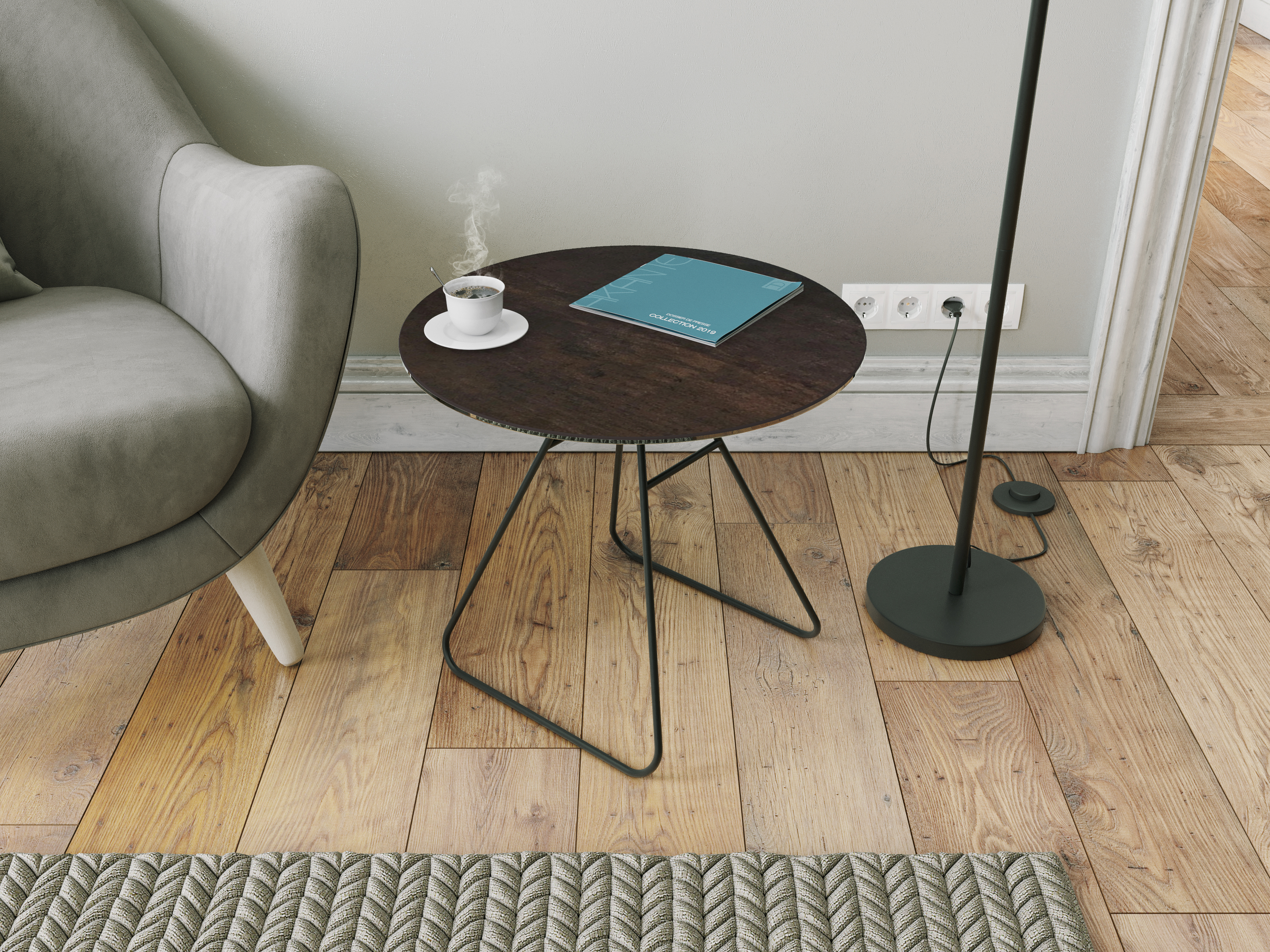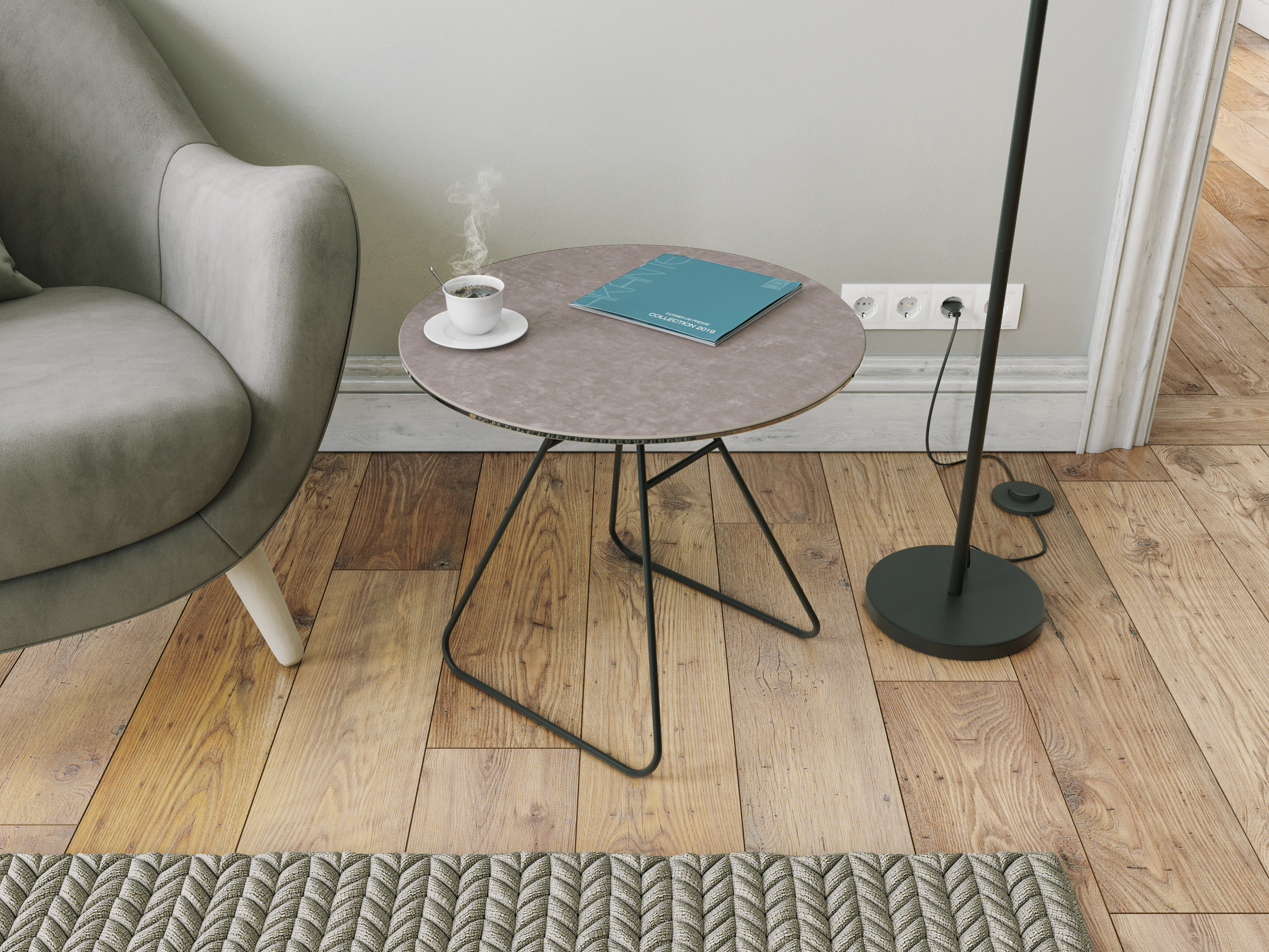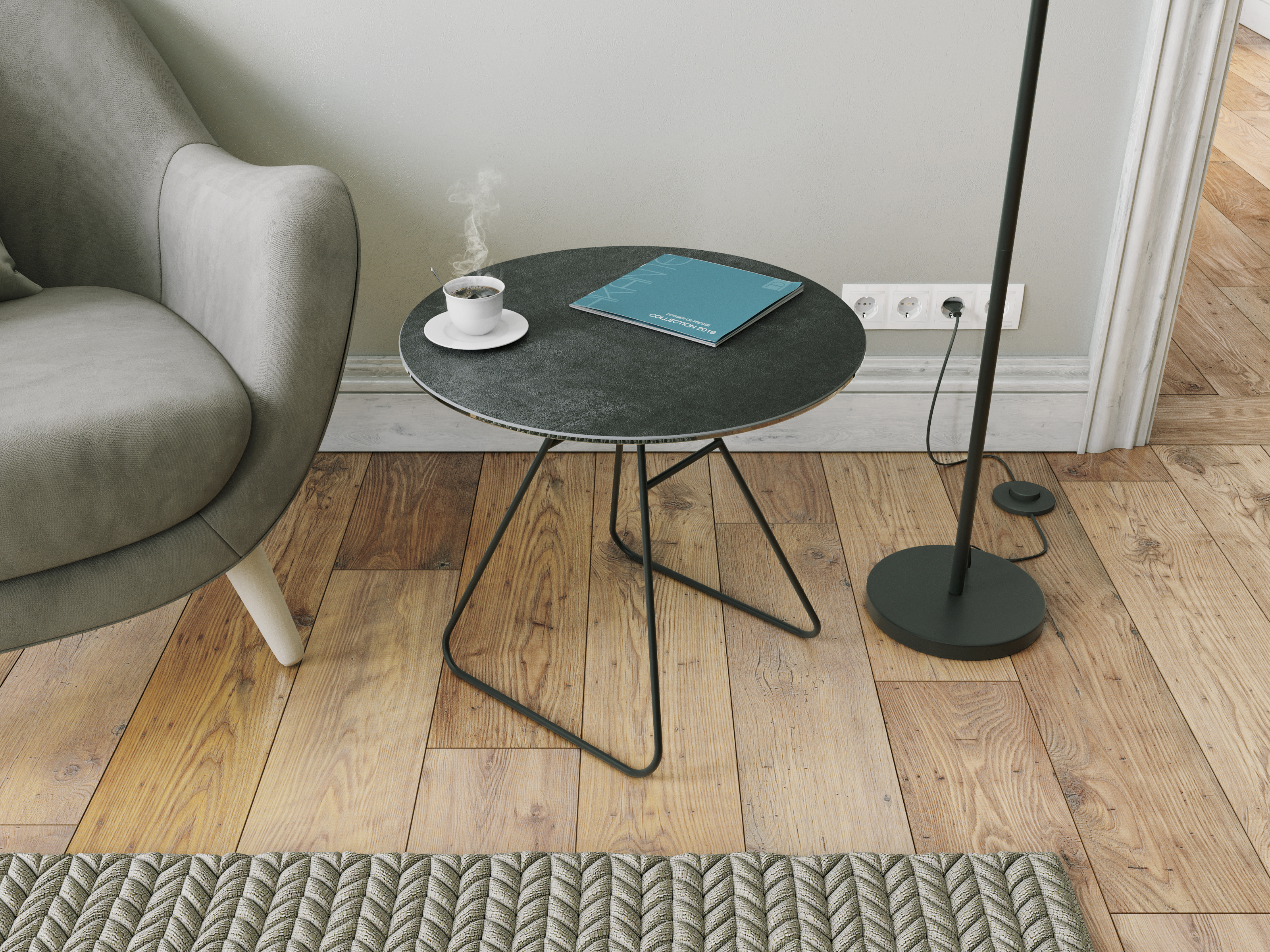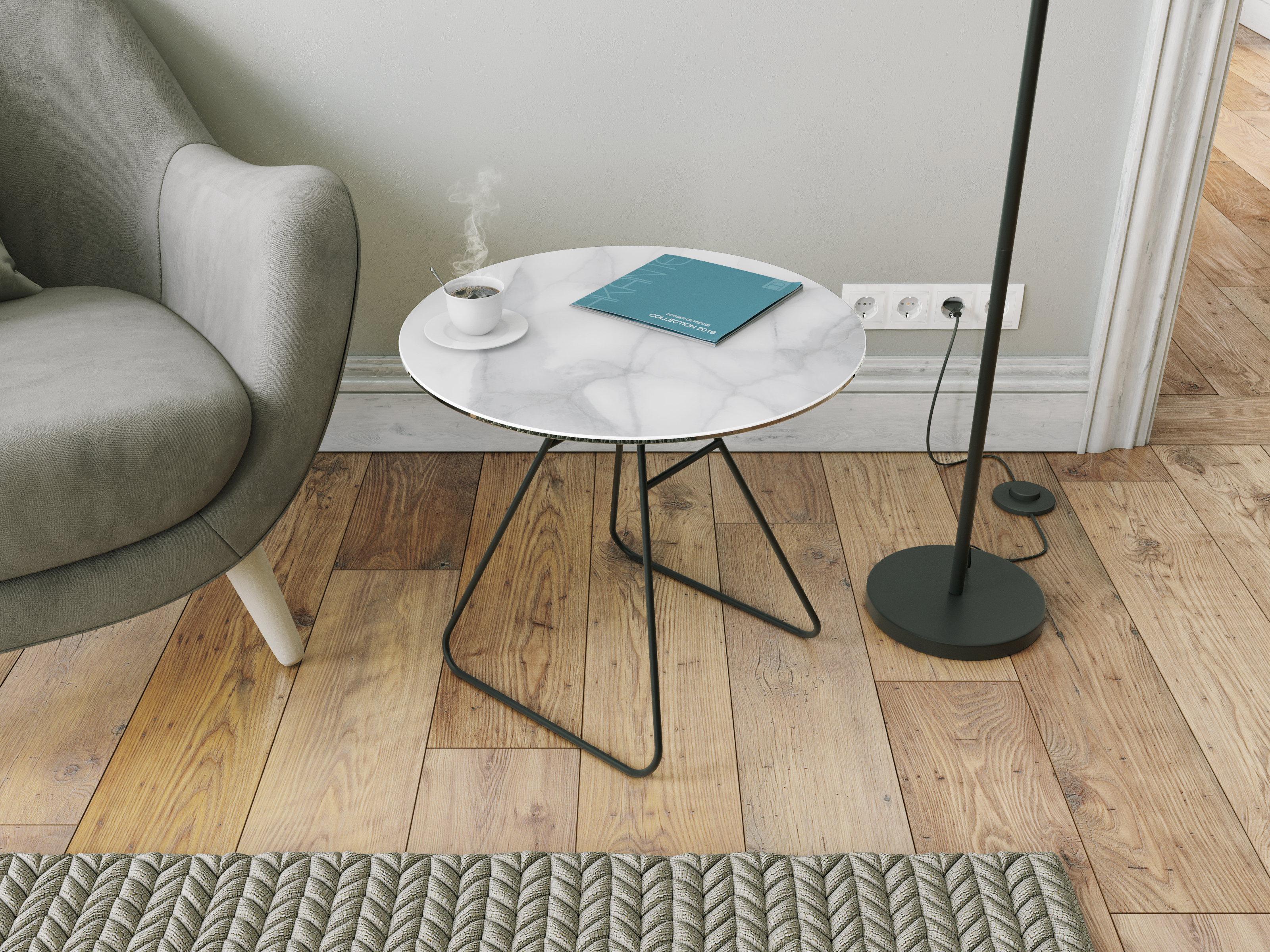 The Iris is a minimalist end table, elegant yet functional. Its black lacquered base give it a refined allure. Available in 4 different high-quality, Spanish-made ceramic finishings. The ceramic is 3mm thick and glued upon 6mm of tempered glass, meaning it is both sturdy and scratch resistant. The accompanying photo shows marbled ceramic finish.